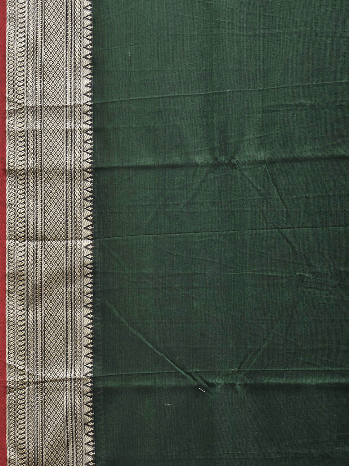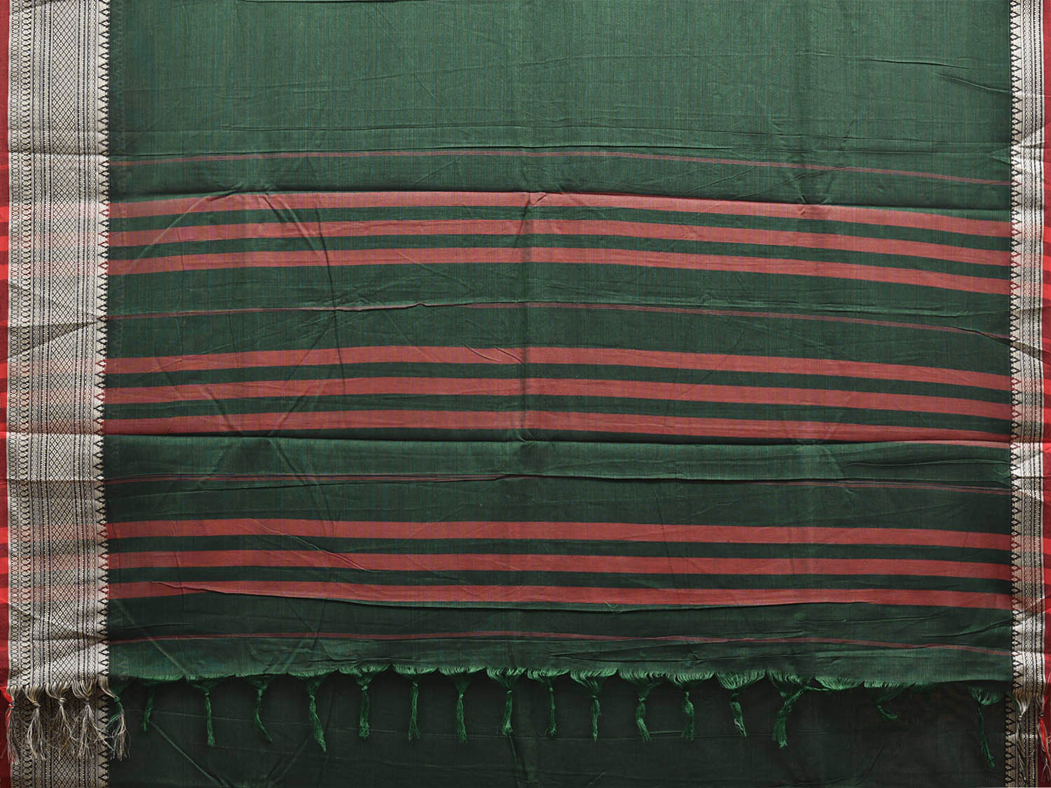 Green and Red Kanchipuram Cotton Plain Saree with Strips Pallu and Border Design No Blouse k1108