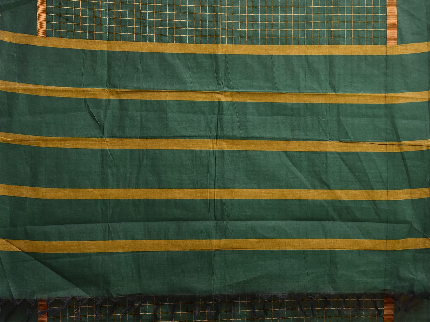 Green and Yellow Kanchipuram Cotton Saree with Big Checks and Strips Pallu Design k0986