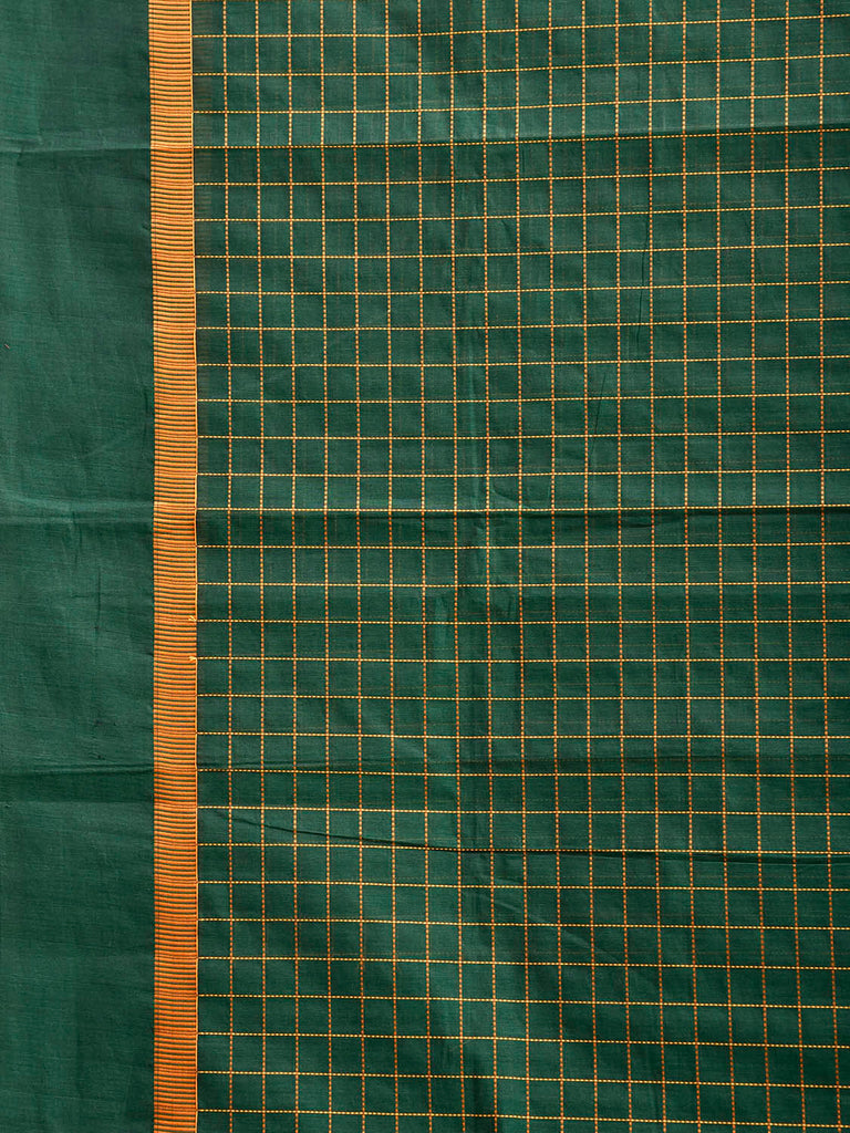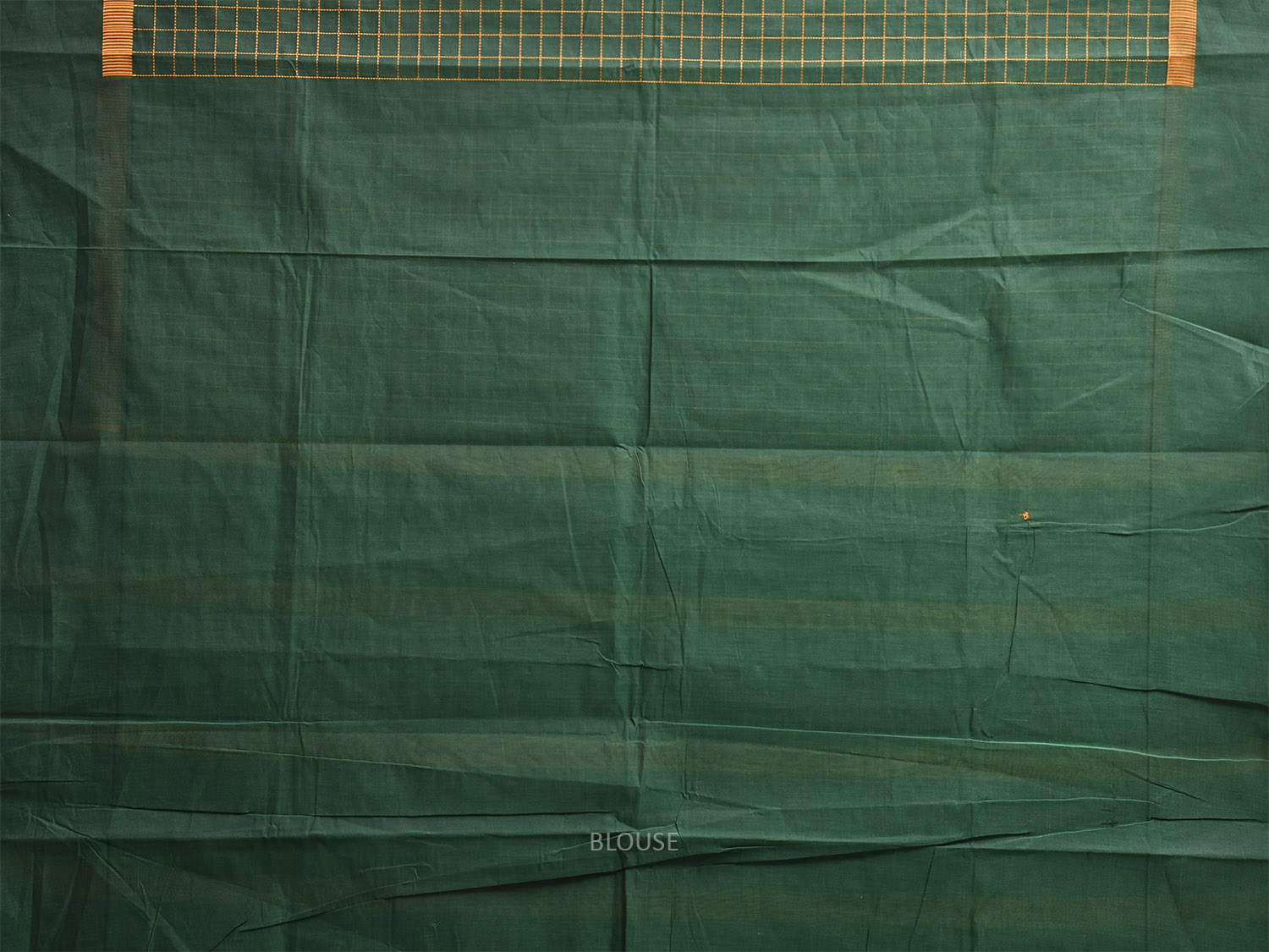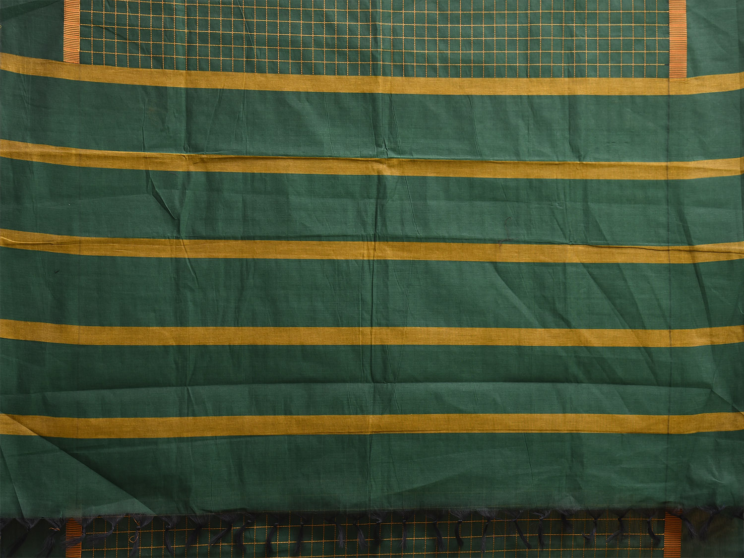 Green and Yellow Kanchipuram Cotton Saree with Big Checks and Strips Pallu Design. Traditional Simple South Indian Attire Saree for any Casual Occasions. As it’s a cotton saree we advice gentle handwash separately for fabric care.