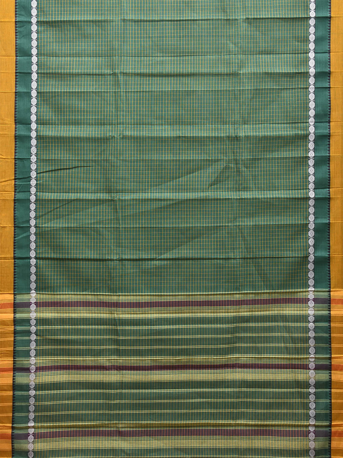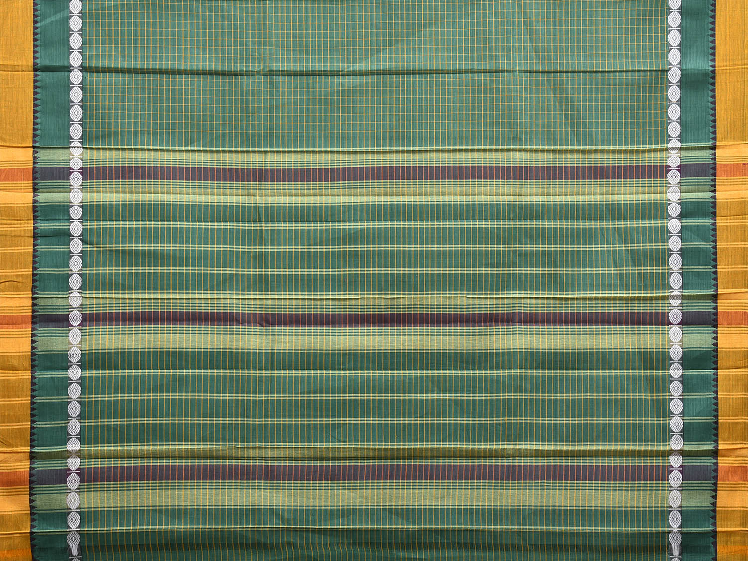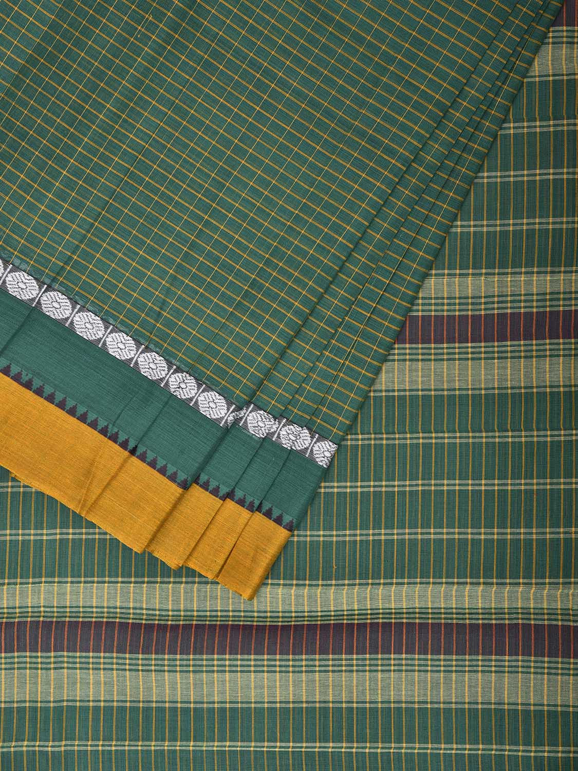 Green and Yellow Narayanpet Cotton Saree with Checks Design No Blouse. This Saree has no Blouse.