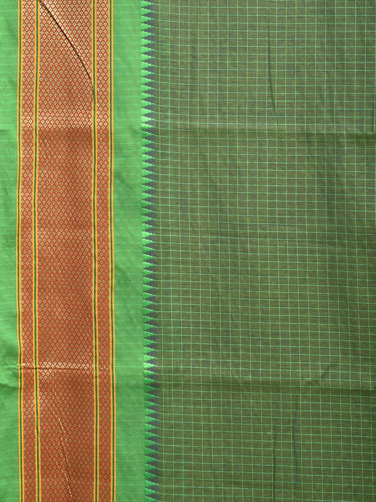 Green Bamboo Cotton Saree with Checks Design and Narali Border No Blouse. This is a blend of bamboo and cotton fibers, they have characteristics of both bamboo and cotton combined into one fabric. We Advise Gentle Handwash for Fabric Care. This Saree has no Blouse.