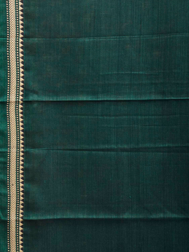 Green Narayanpet Cotton Handloom Plain Saree with Contrast Pallu Design No Blouse. This saree has no blouse.
