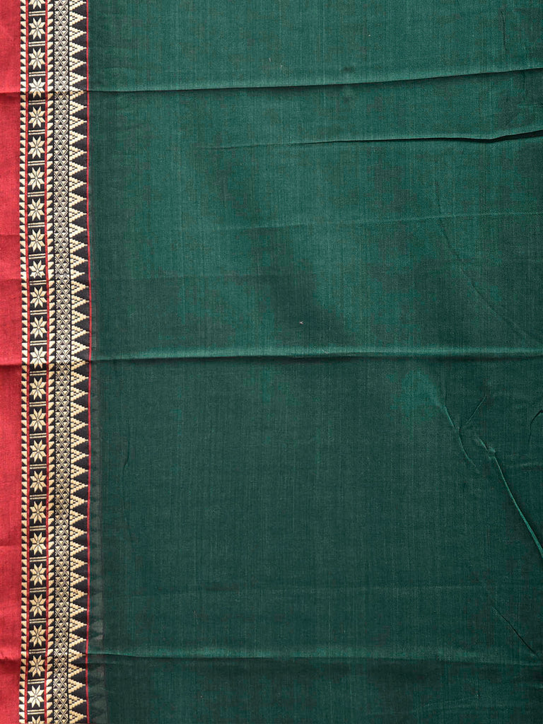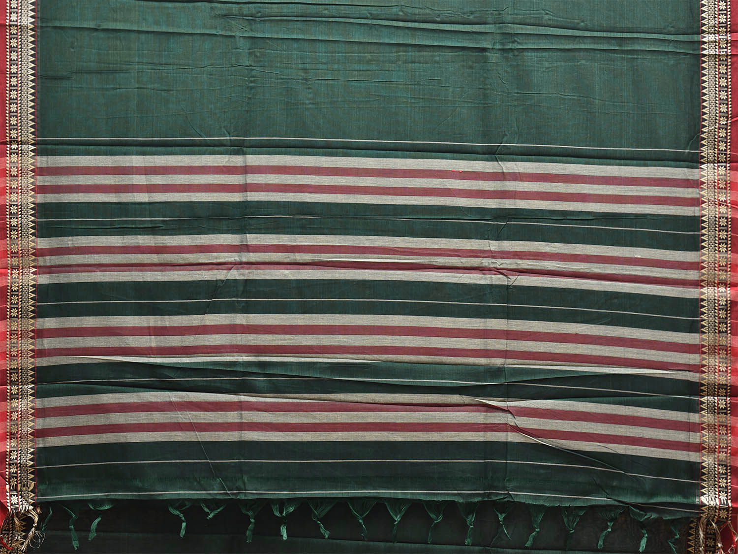 Green Narayanpet Cotton Plain Saree with Strips Pallu and Border Design No Blouse. This saree has no blouse.