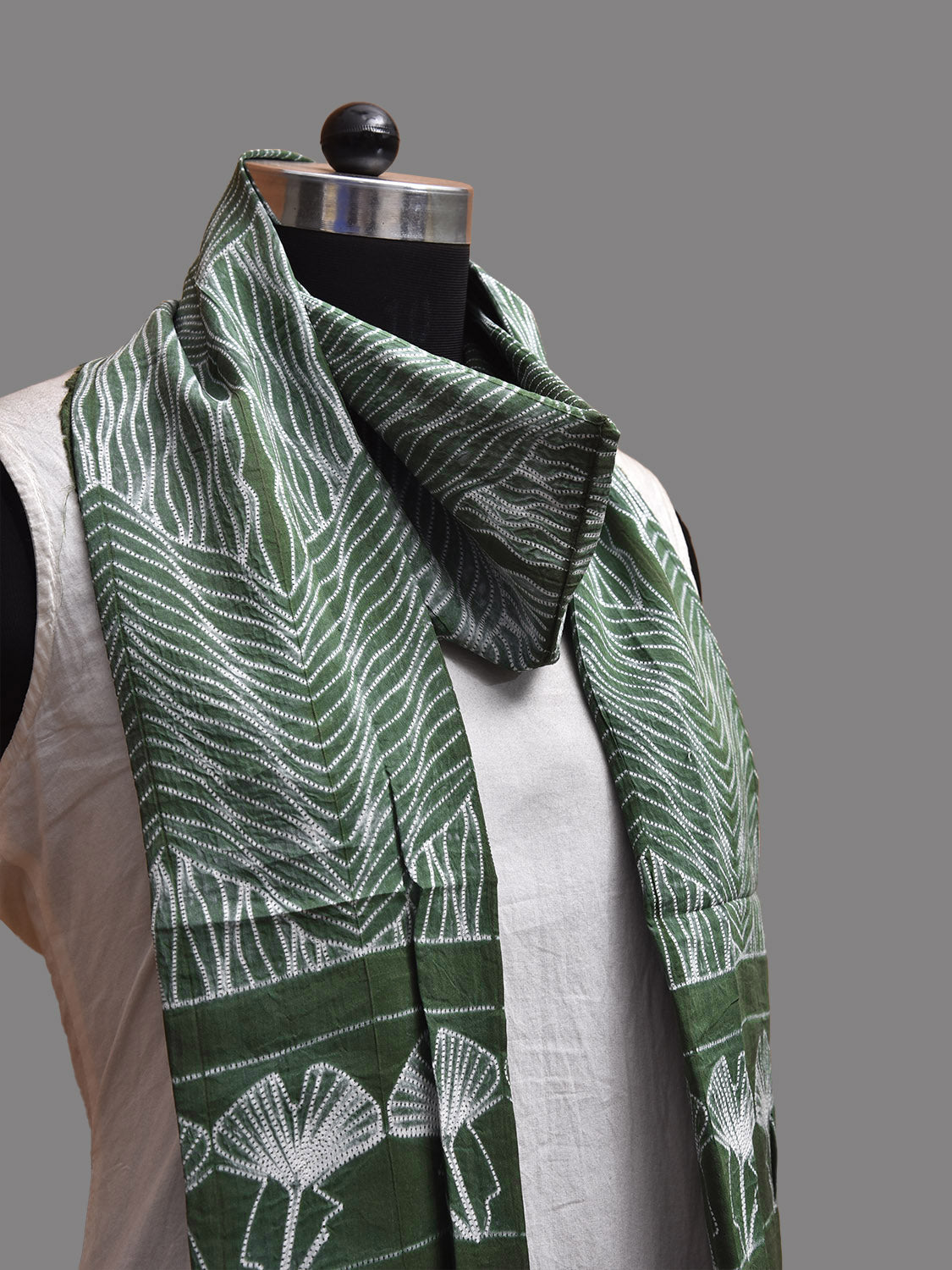 Green Shibori Cotton Stole with Zig-Zag Design. Shibori is Japanese a Technique of tie and dye, and resist some parts by clamping or stitching the fabric. The result produced are unique geometric patterns & any other eloborate design. For fabric care we advise gentle handwash separately.