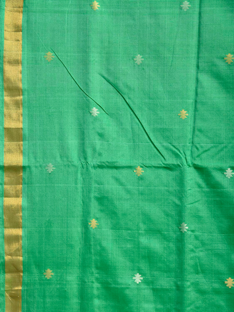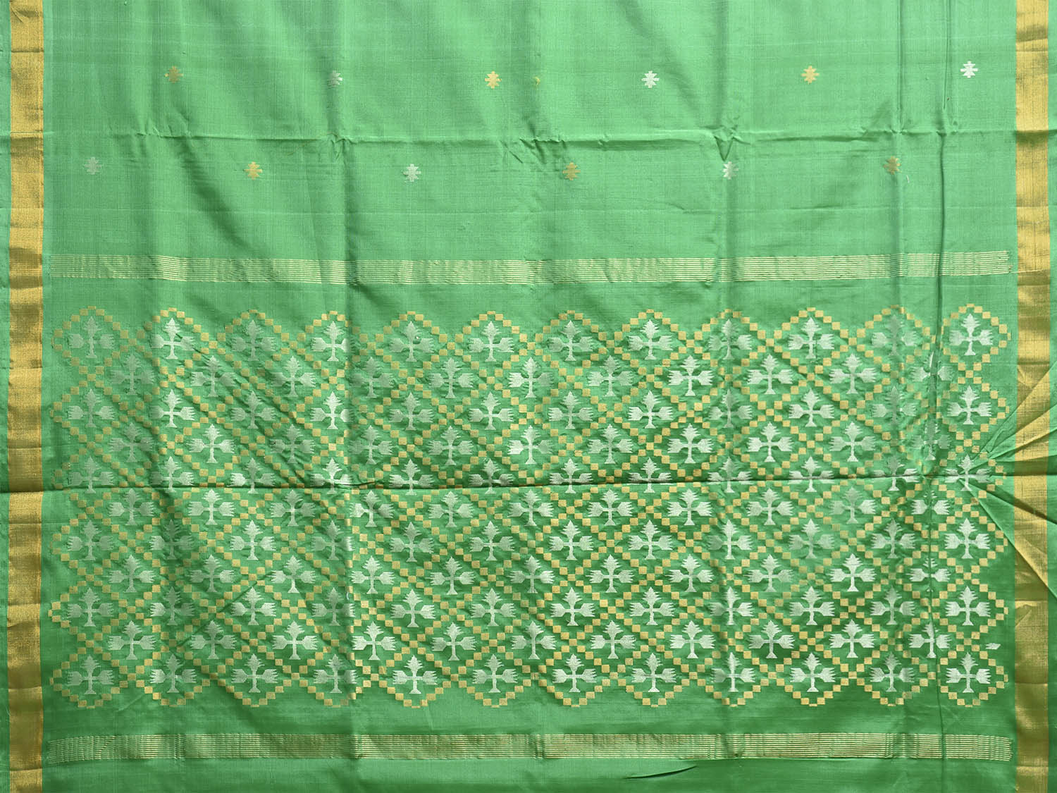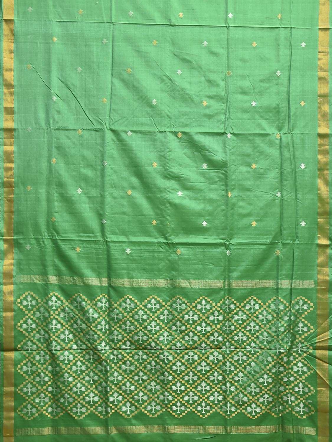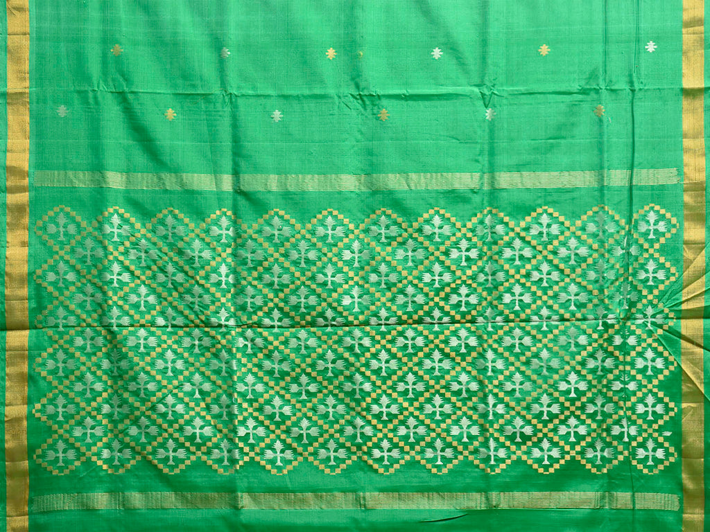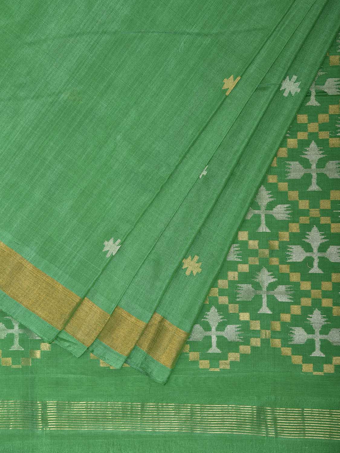 Green Uppada Cotton Silk Handloom Saree with Jamdani Pallu Design.