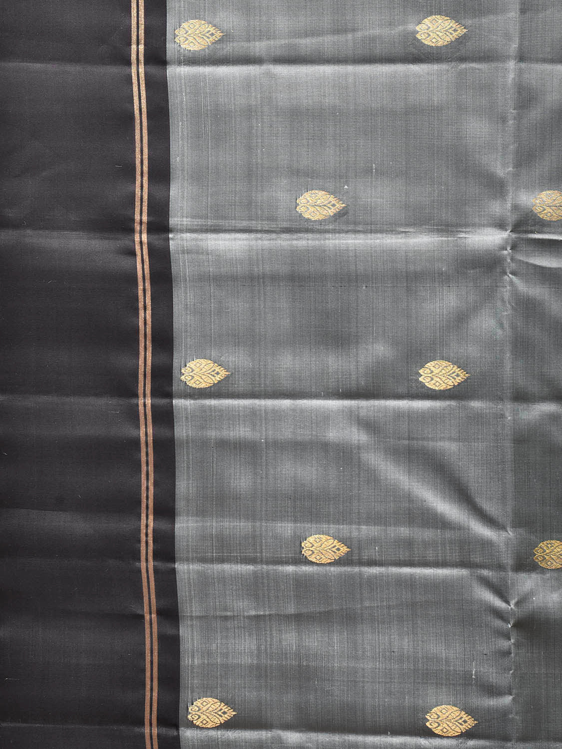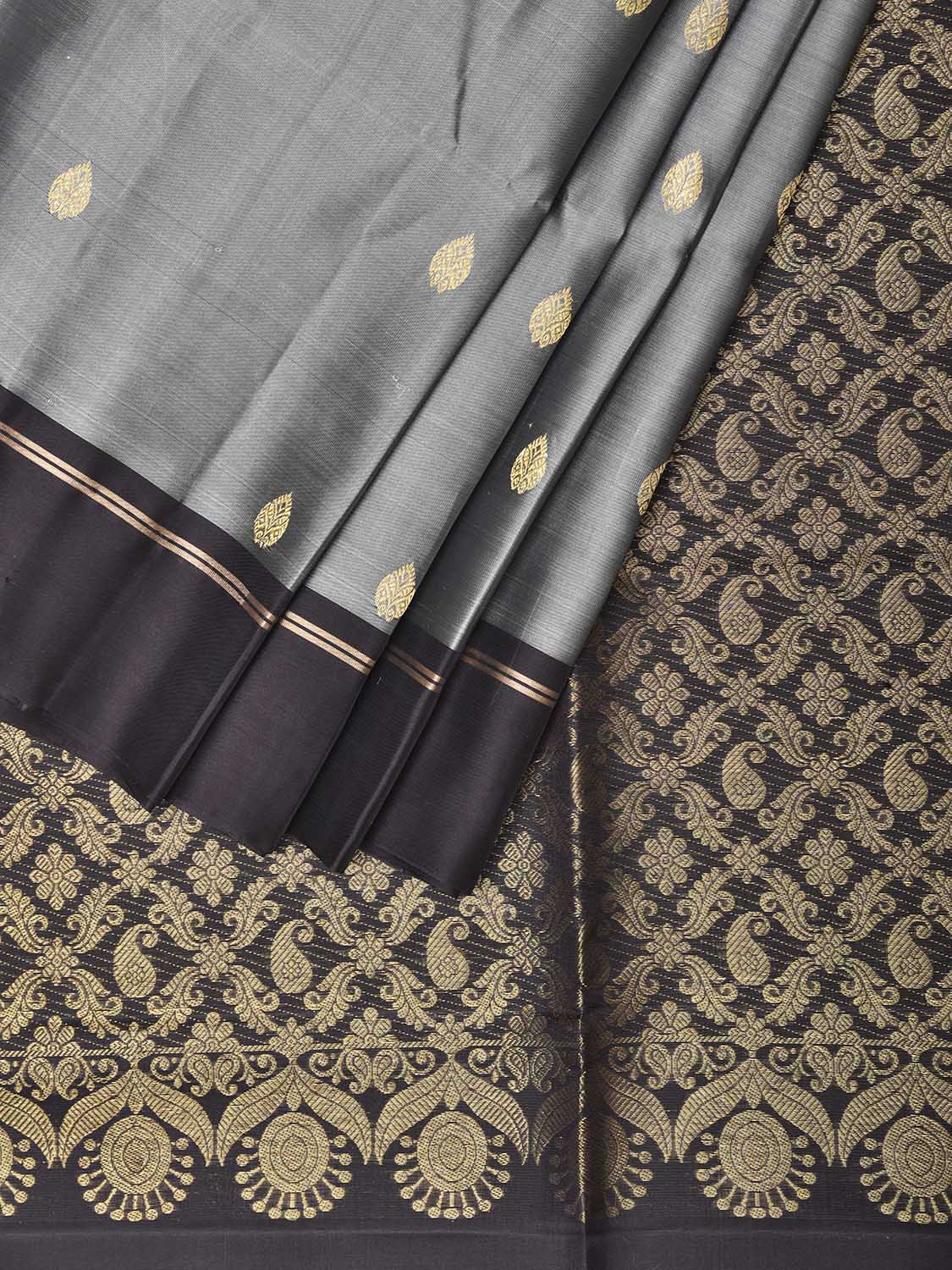 Grey and Black Kanchipuram Silk Saree with Buta and Pallu Design. Traditional South Indian Attire Saree for any Special Occasions. For fabric care we advice dry clean.