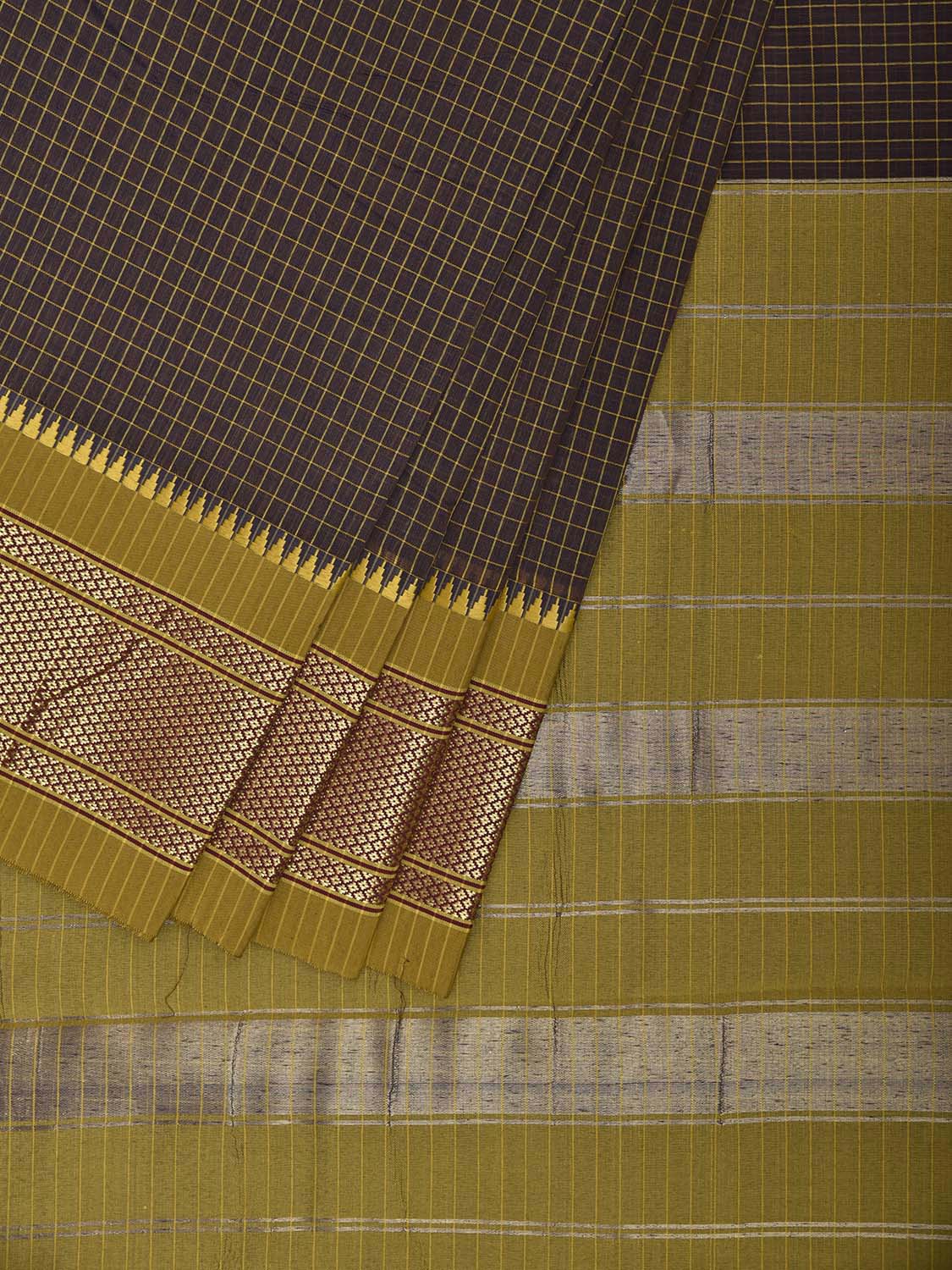 Grey and Olive Bamboo Cotton Saree with Checks Design No Blouse. This is a blend of bamboo and cotton fibers, they have characteristics of both bamboo and cotton combined into one fabric. We Advise Gentle Handwash for Fabric Care. This Saree has no Blouse.