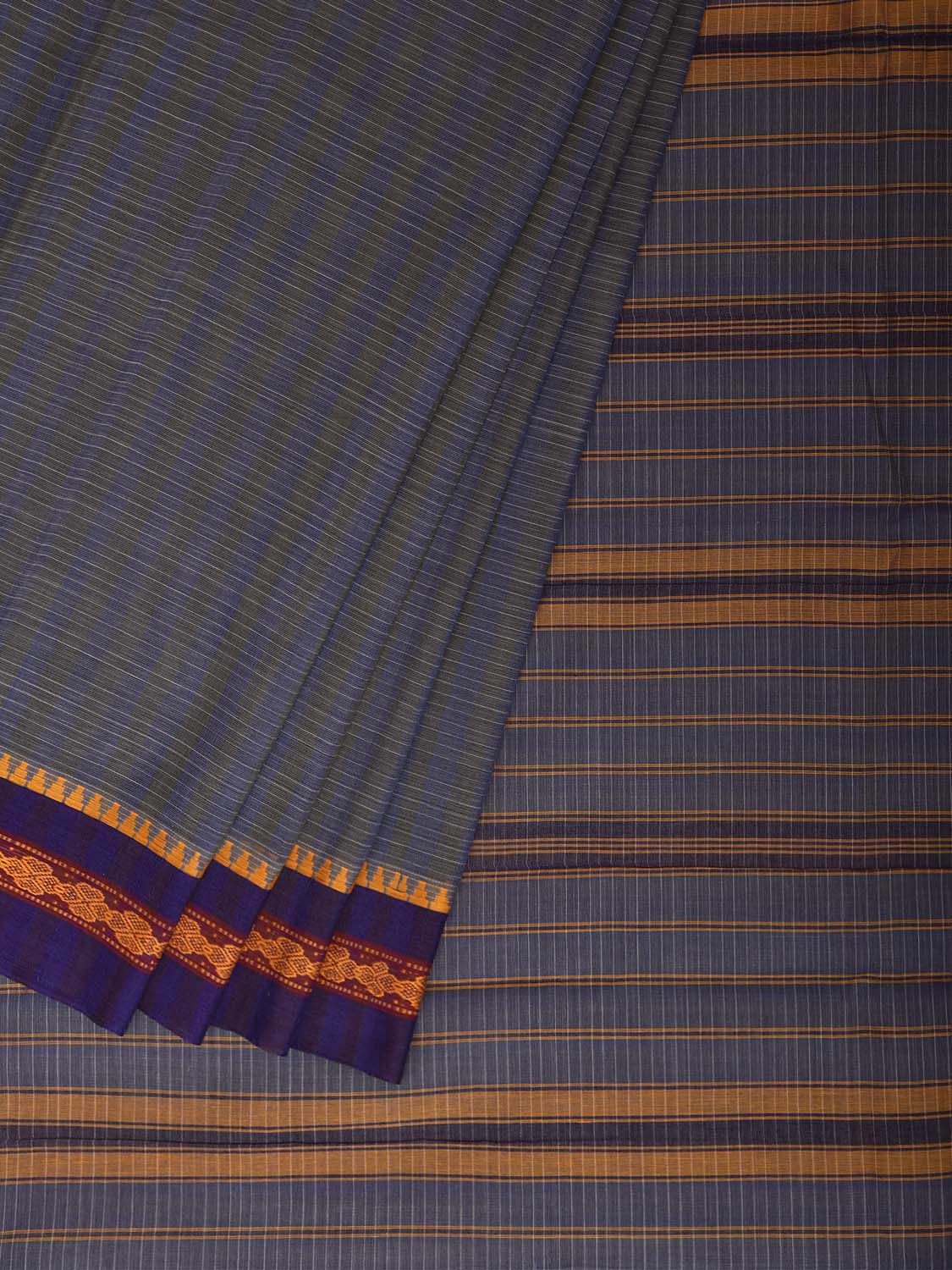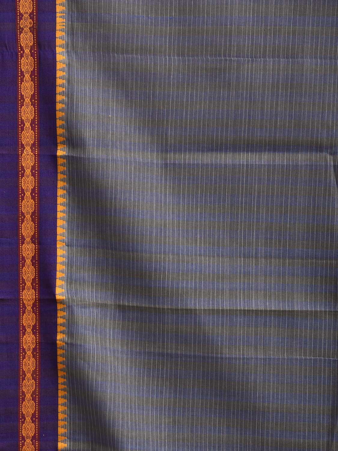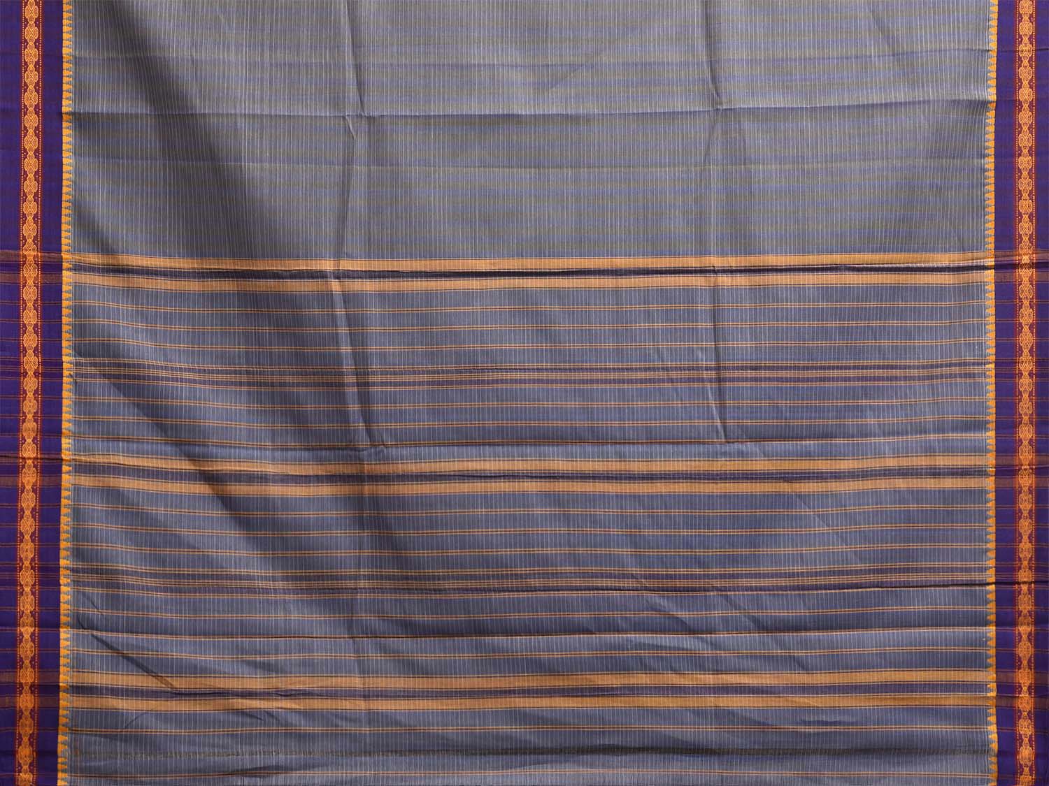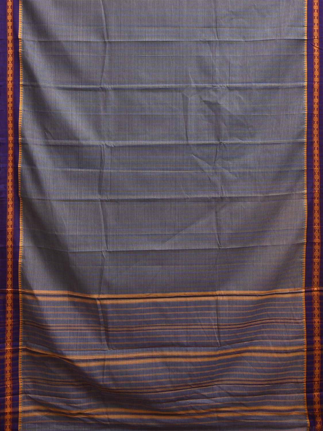 Grey and Purple Narayanpet Cotton Handloom Saree with Strips Design No Blouse. This saree has no blouse.