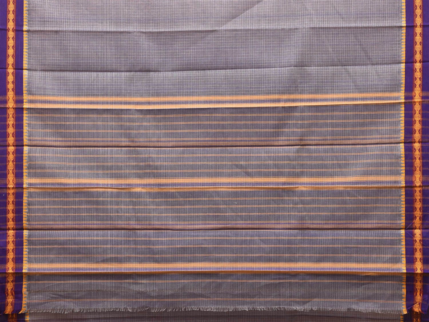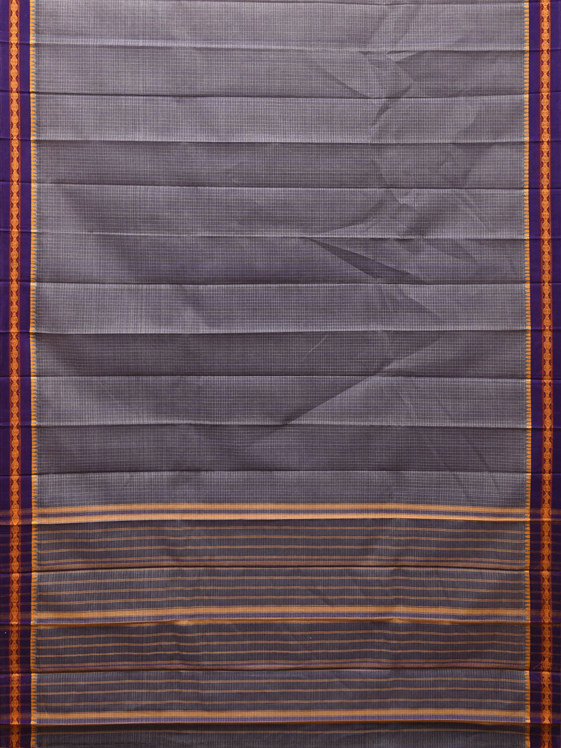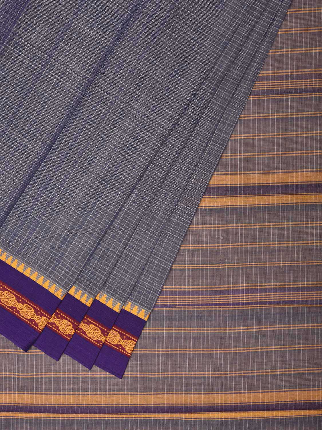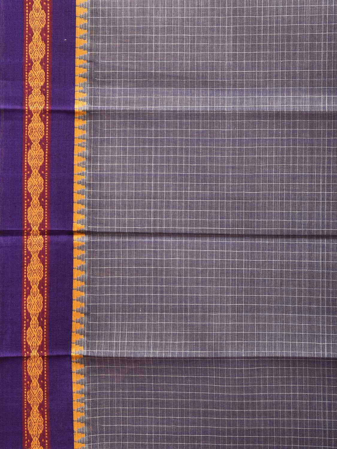 Grey and Purple Narayanpet Cotton Saree with Checks Design No Blouse np1691