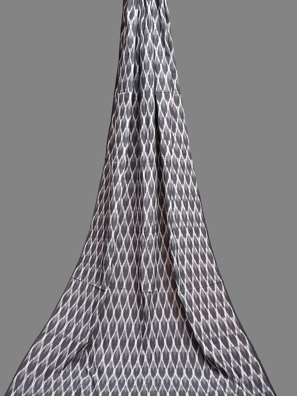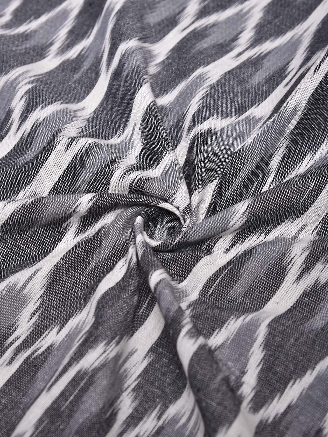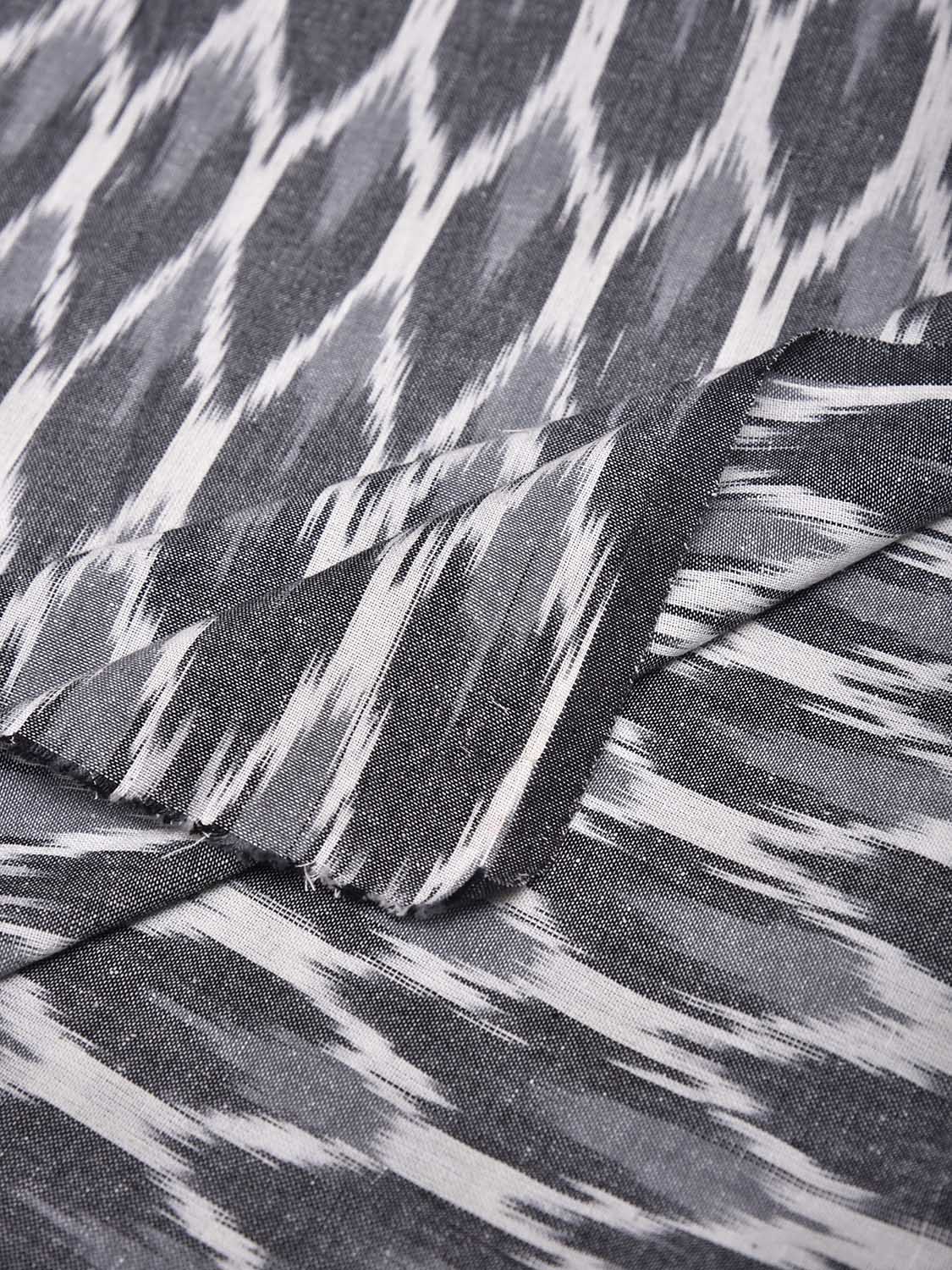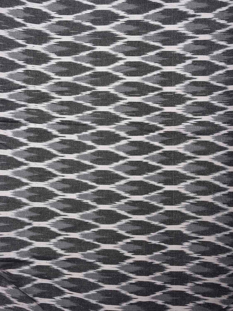 Grey and White Pochampally Ikat Cotton 3mts Fabric with Grill Design. This Handloom Cotton Fabric from Andhra Pradesh has been woven using the resist-dyeing, which produces the unique patterns adorning the fabric. Fabric is 44 inches in width. The price mentioned is for Quantity 1 = 3 meters. For fabric care we advise gentle handwash separately.