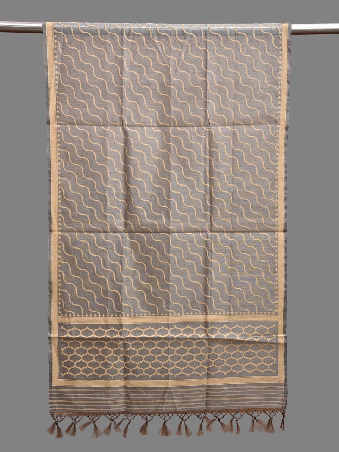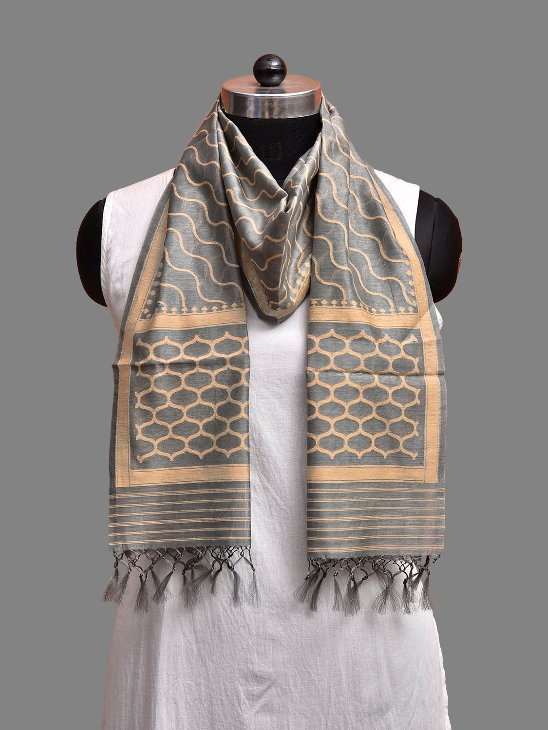 Grey Banaras Cotton Silk Stole with Diagonal Design. We Advise Dry Clean for Fabric Care.