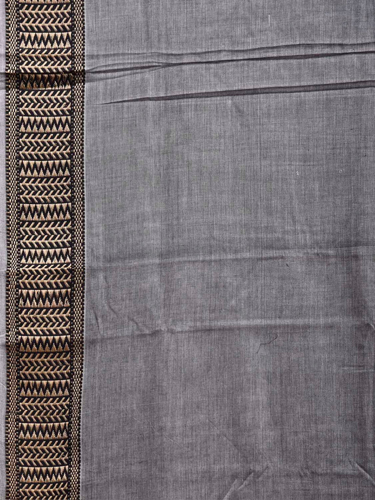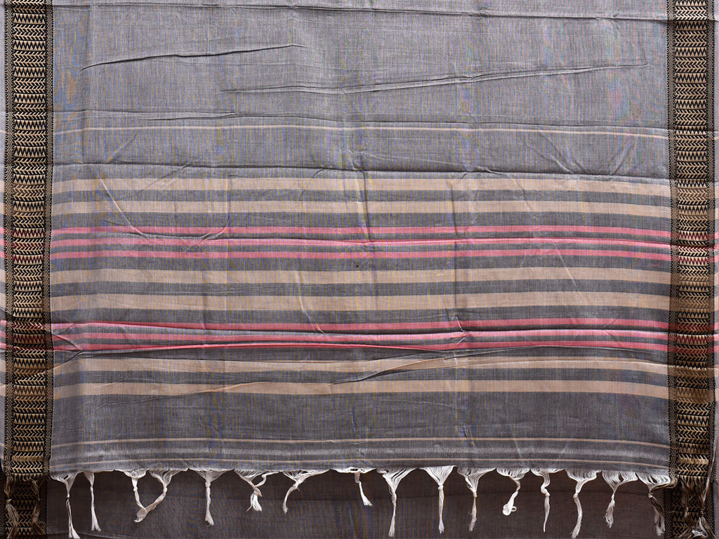 Grey Narayanpet Cotton Plain Saree with Strips Pallu and Border Design No Blouse. This saree has no blouse.
