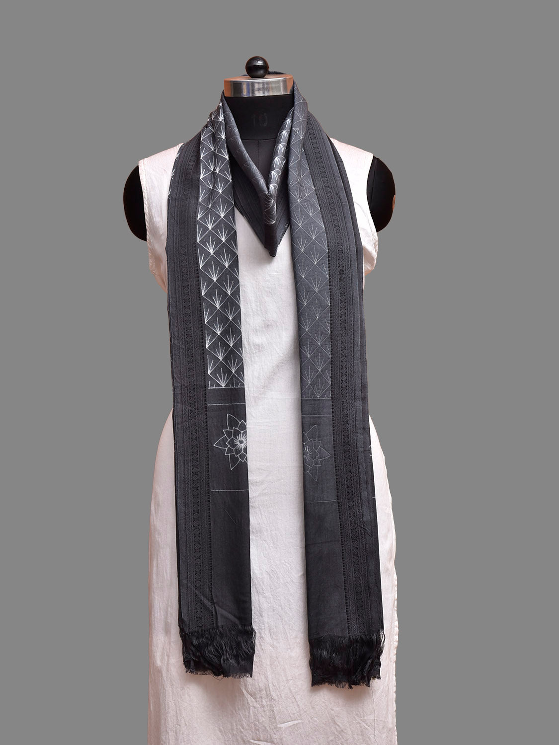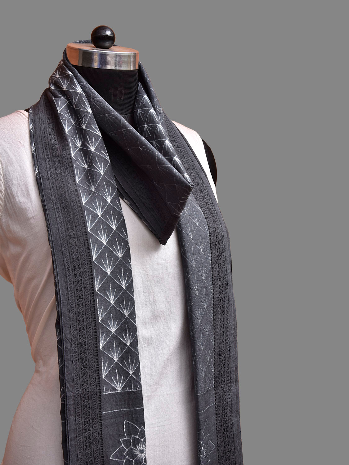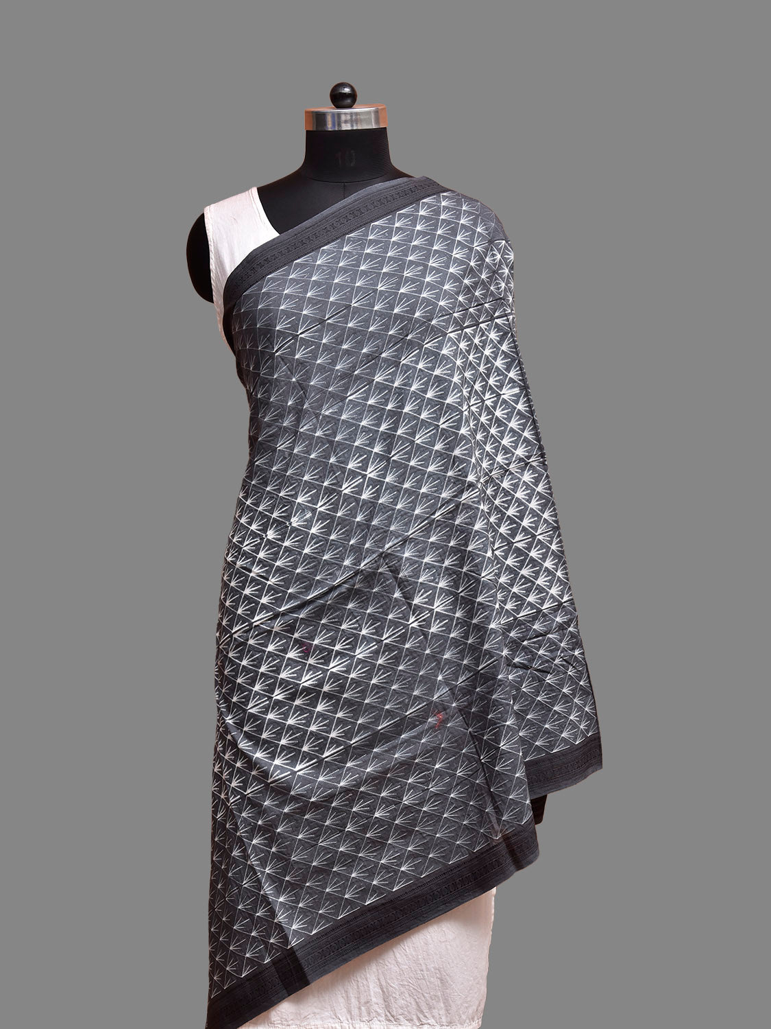 Grey Shibori Cotton Handloom Dupatta with All Over Grill and Floral Design. Shibori is Japanese a Technique of tie and dye, and resist some parts by clamping or stitching the fabric. The result produced are unique geometric patterns & any other eloborate design. For fabric care we advise gentle handwash separately.