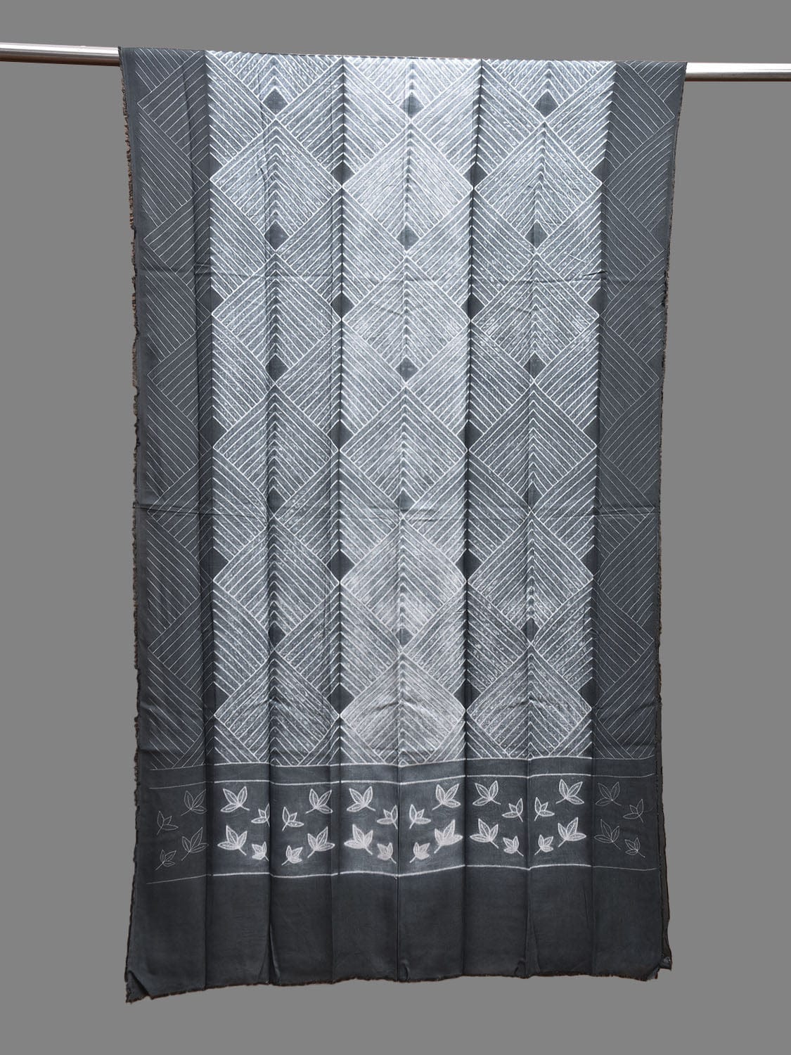 Grey Shibori Cotton Satin Weave Dupatta with Geometric and Leaves Design ds3811