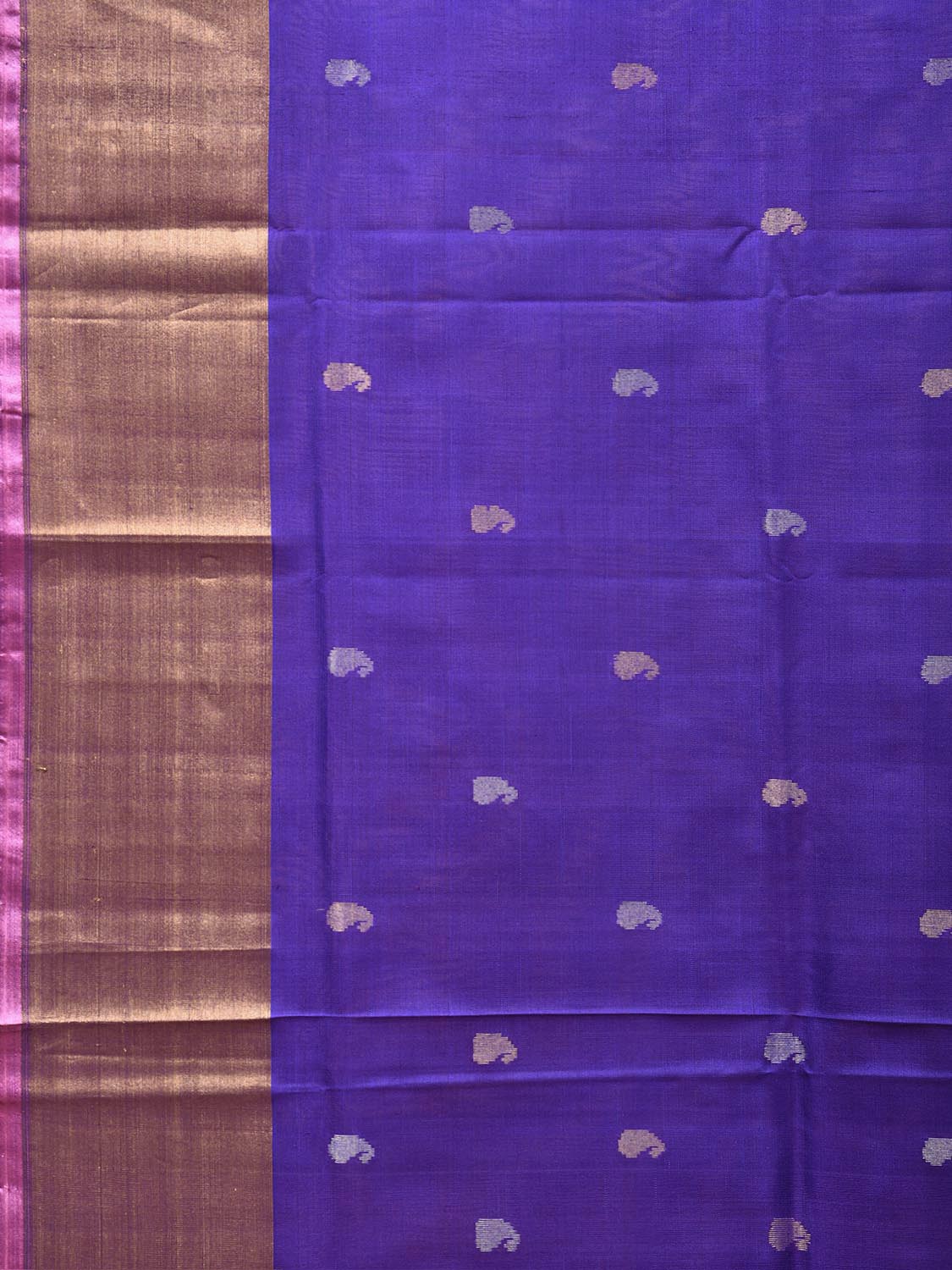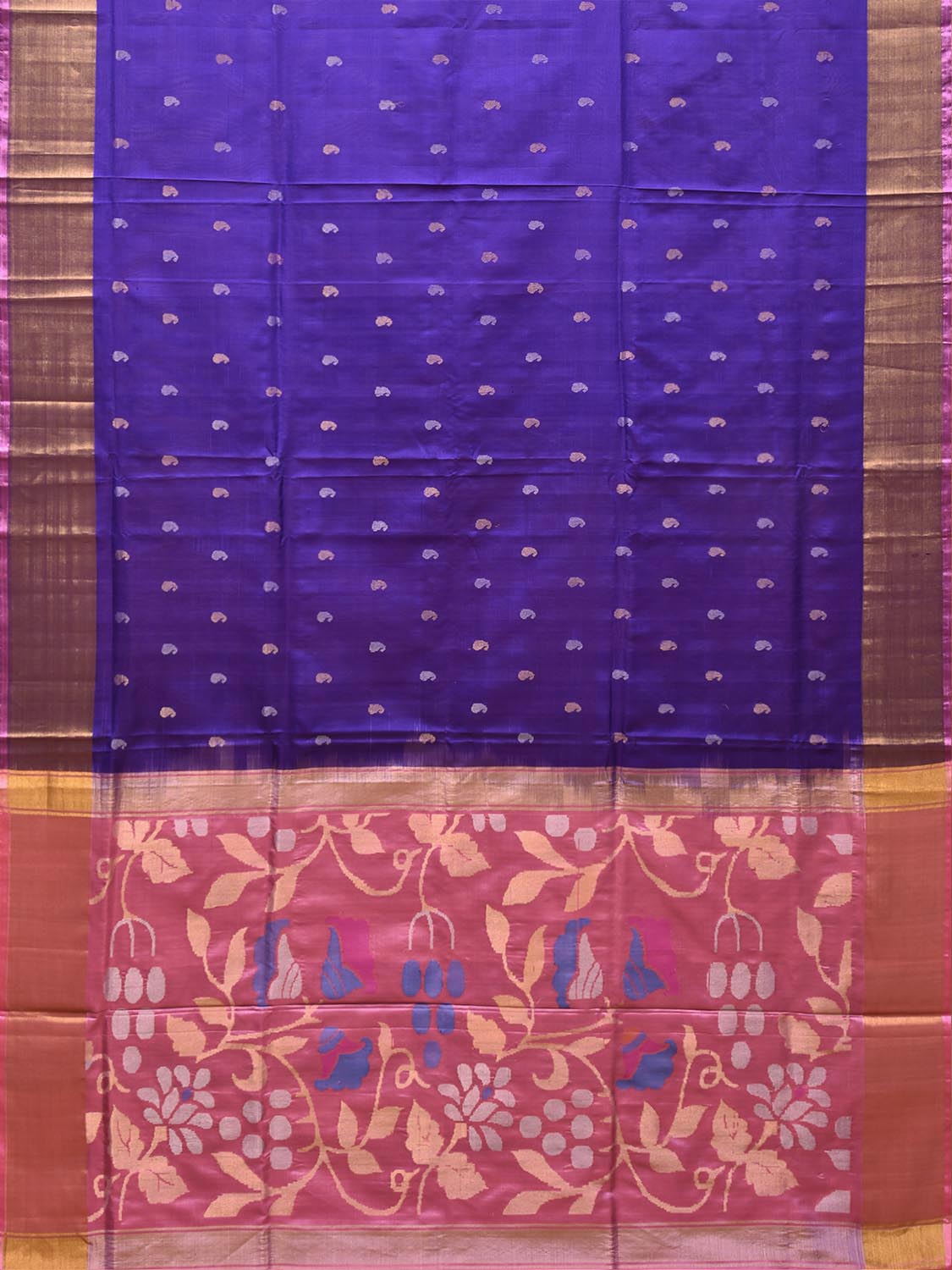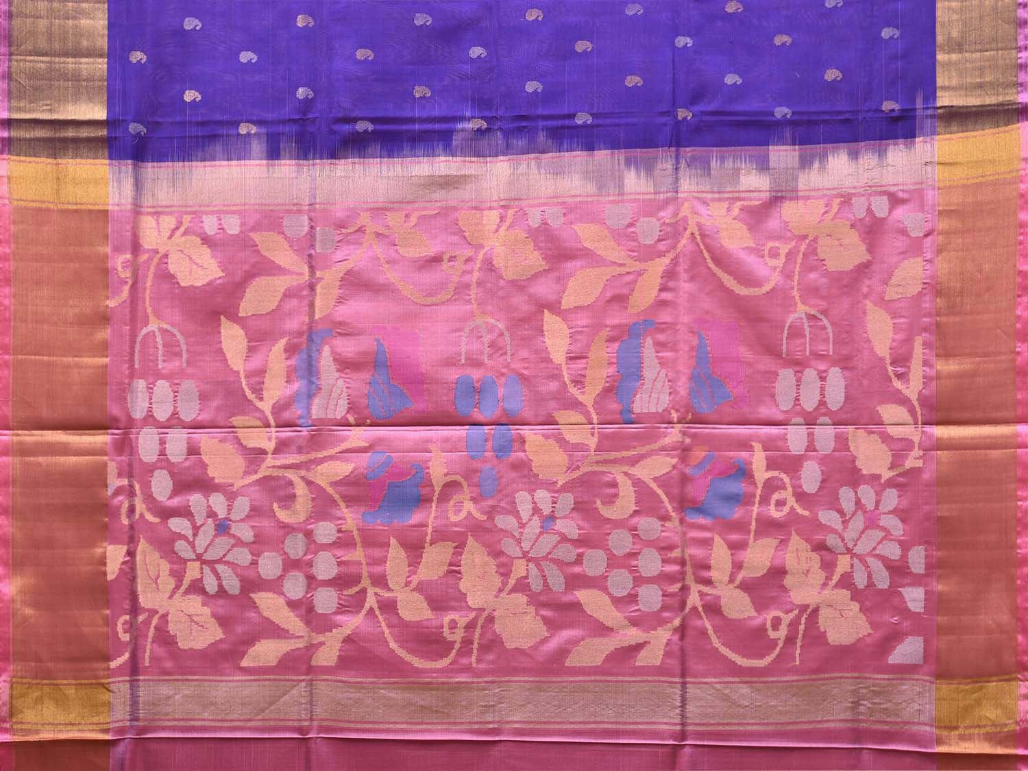 Indigo and Baby Pink Uppada Pure Silk Handloom Saree with Floral Pallu Design