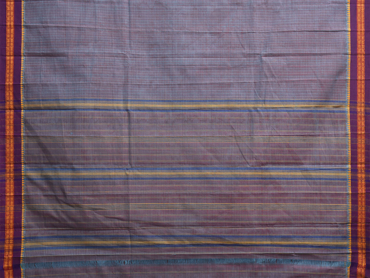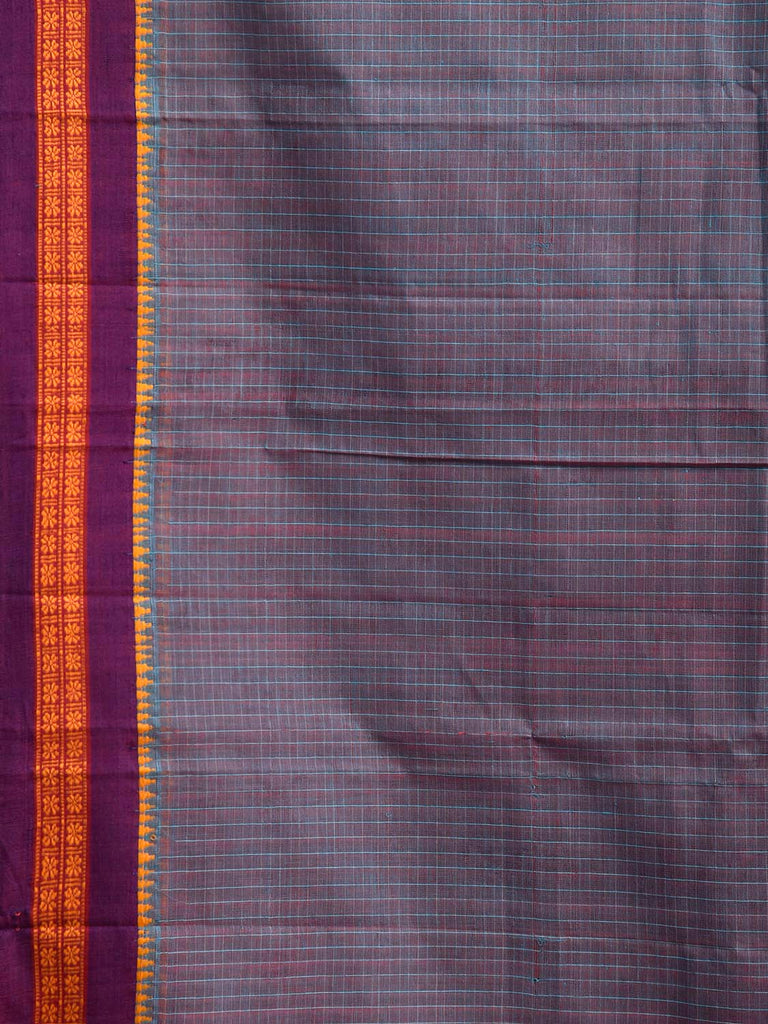 Indigo and Purple Narayanpet Cotton Handloom Saree with Checks Design No Blouse. This saree has no blouse.