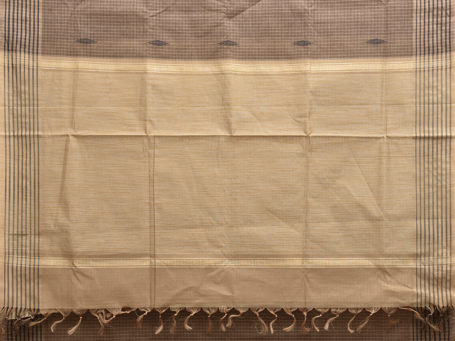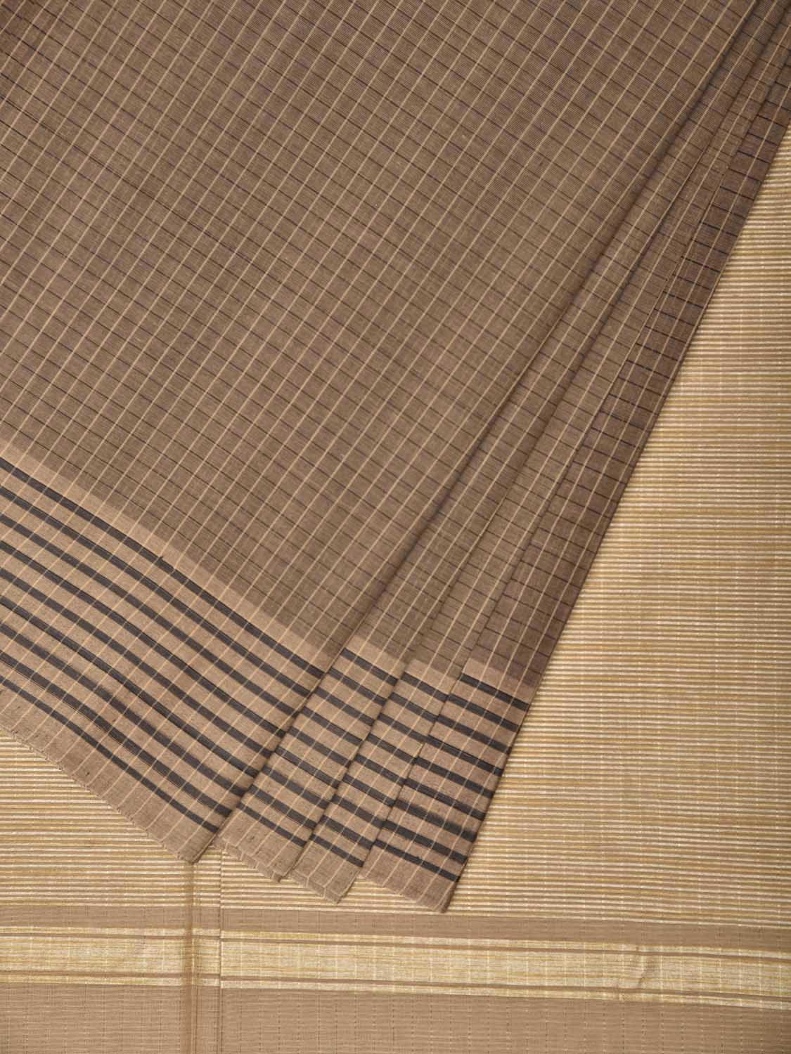 Khaki and Cream Venkatagiri Cotton Saree with Checks Design. Venkatagiri sarees are known for very fine cotton hand woven cotton saree. They are light weight and are traditional saree made in Andhra Pradesh. For fabric care we advice gentle handwash separately.