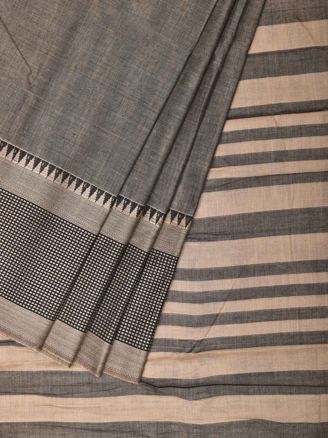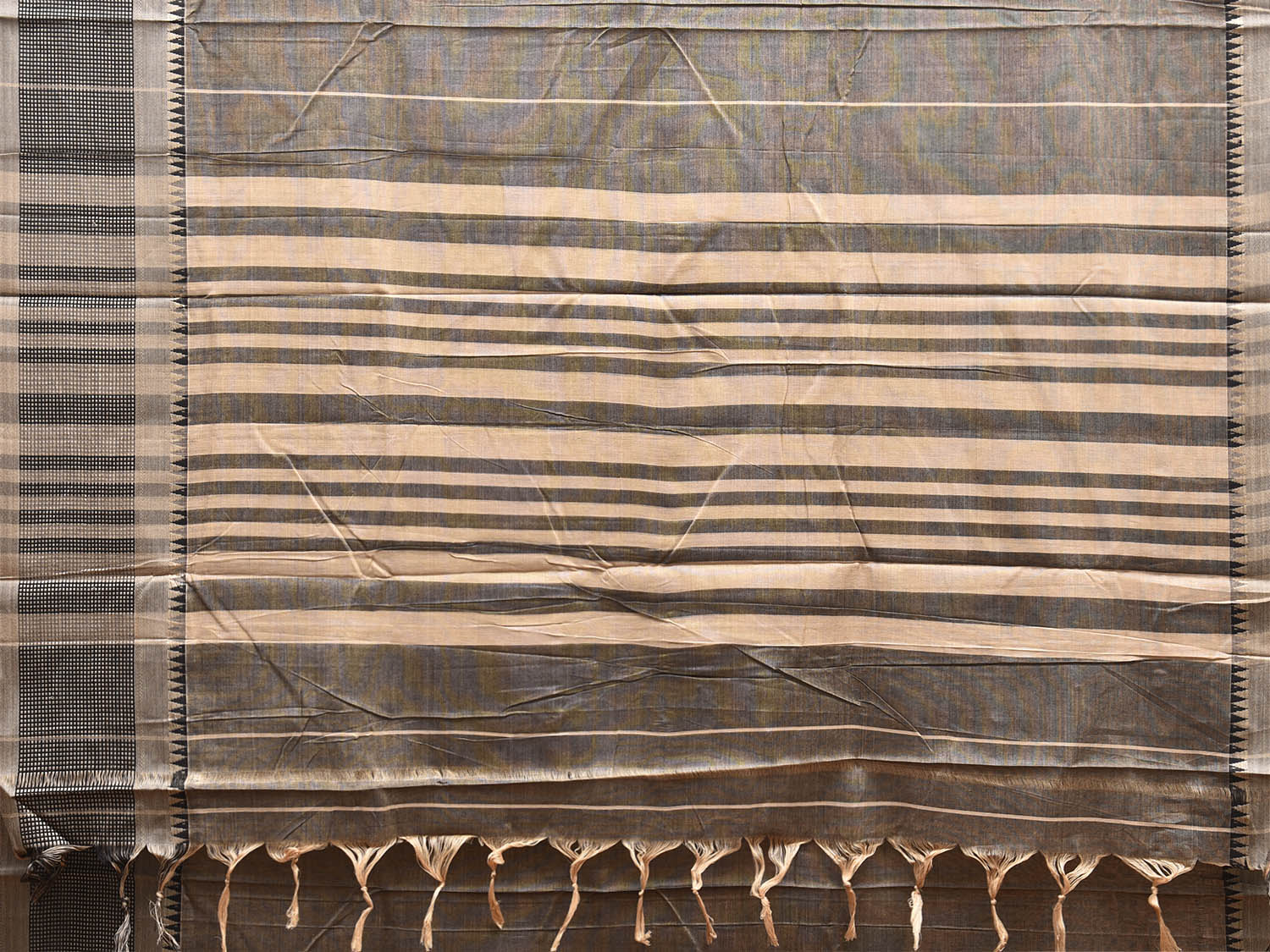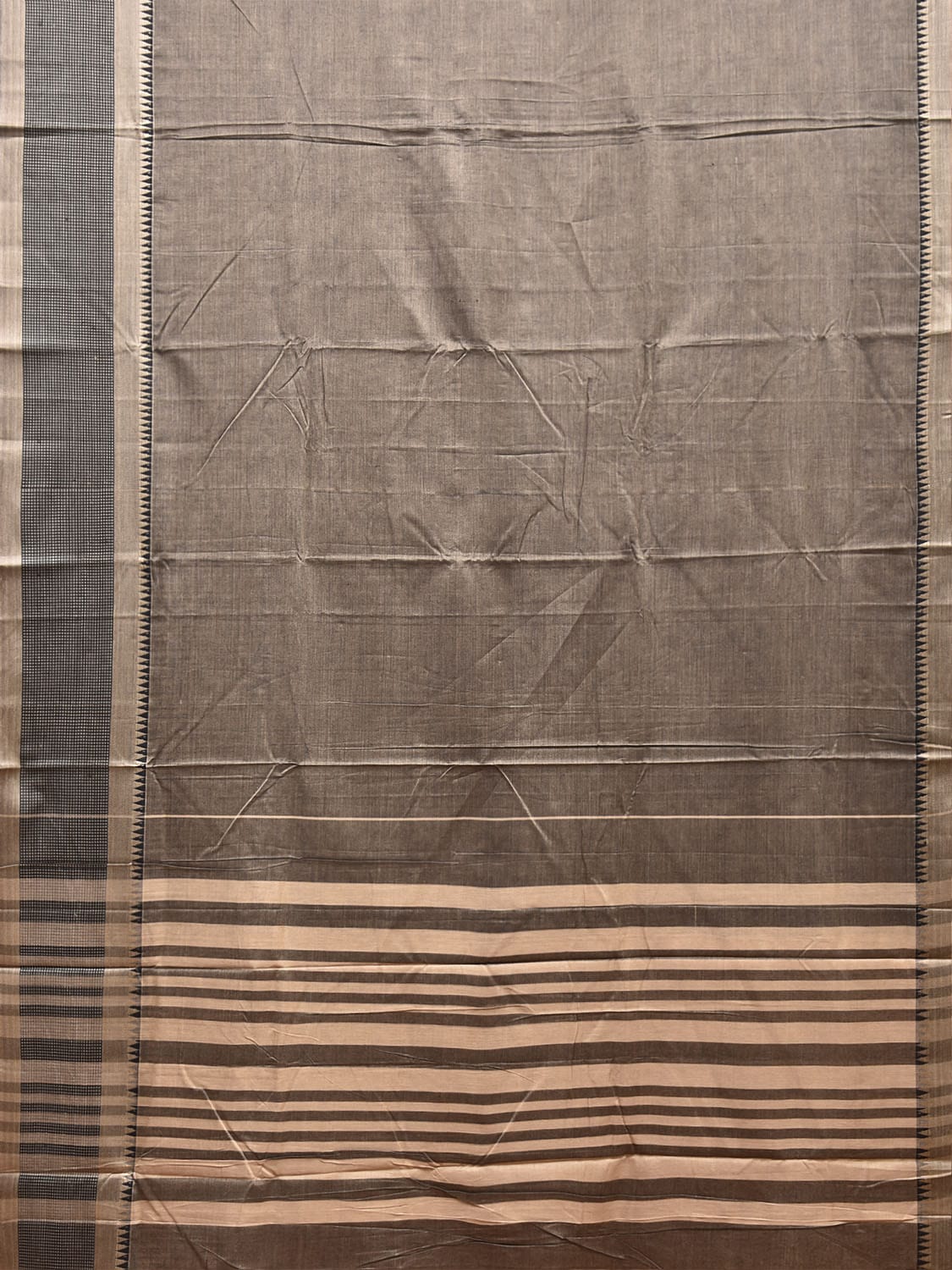 Khaki Kanchipuram Cotton Plain Saree with Checks Border and Strips Pallu Design No Blouse. Traditional South Indian Attire Saree for any Special Occasions. For fabric care we advice dry clean. This saree has no blouse.
