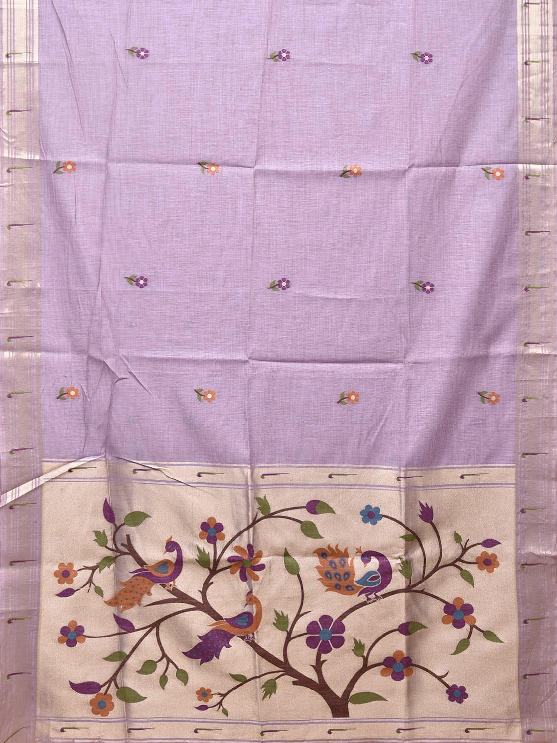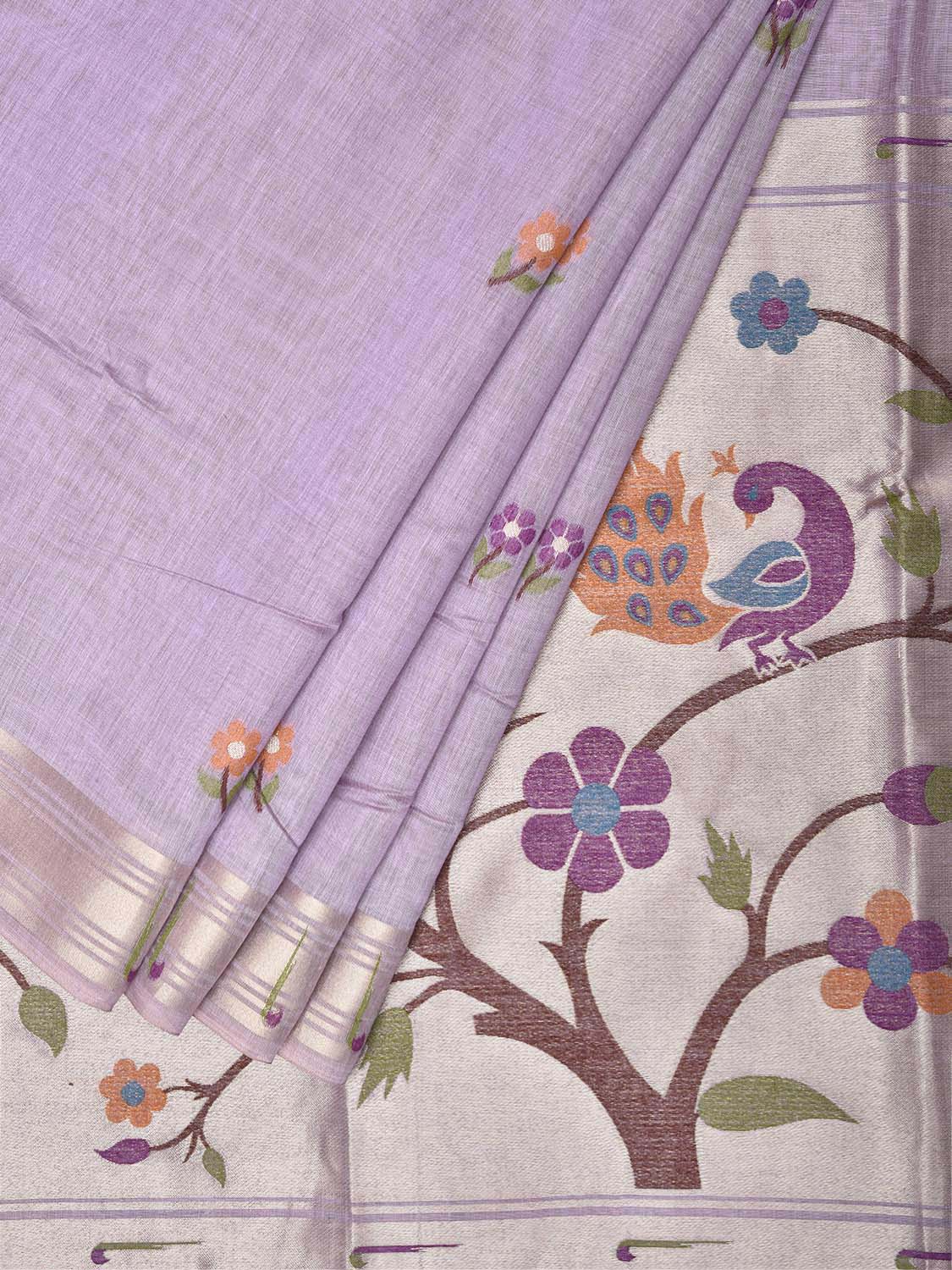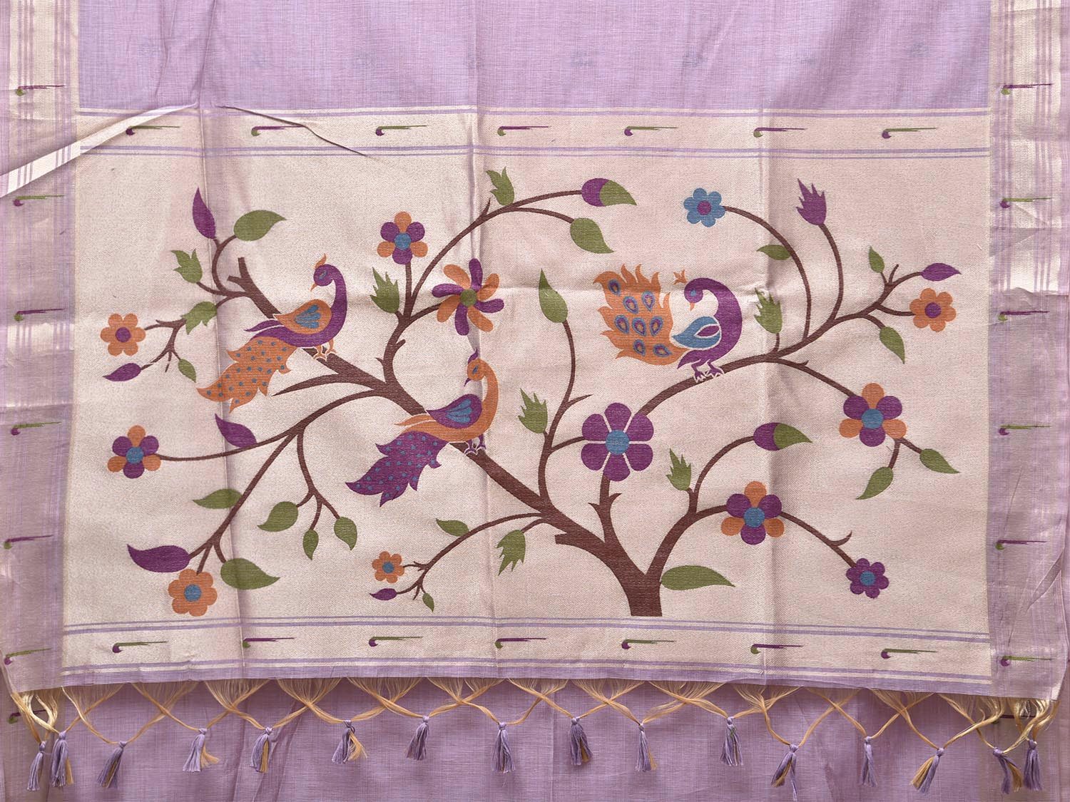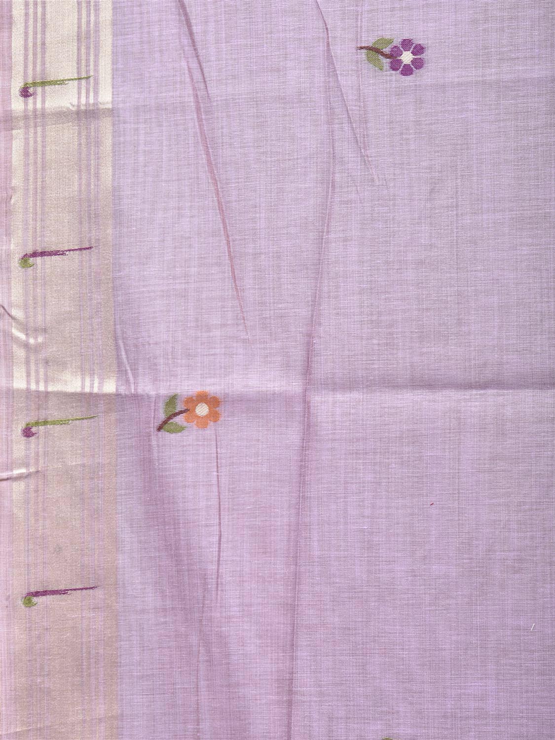 Lavender Dhakai Jamdani Cotton Viscose Saree with Paithani Pallu and Muniya Border Design. These are some of the traditional Dhakai Jamdani designs, these sarees have geometric designs and sometimes floral or combination of both. We advice gentle handwash separately for fabric care.