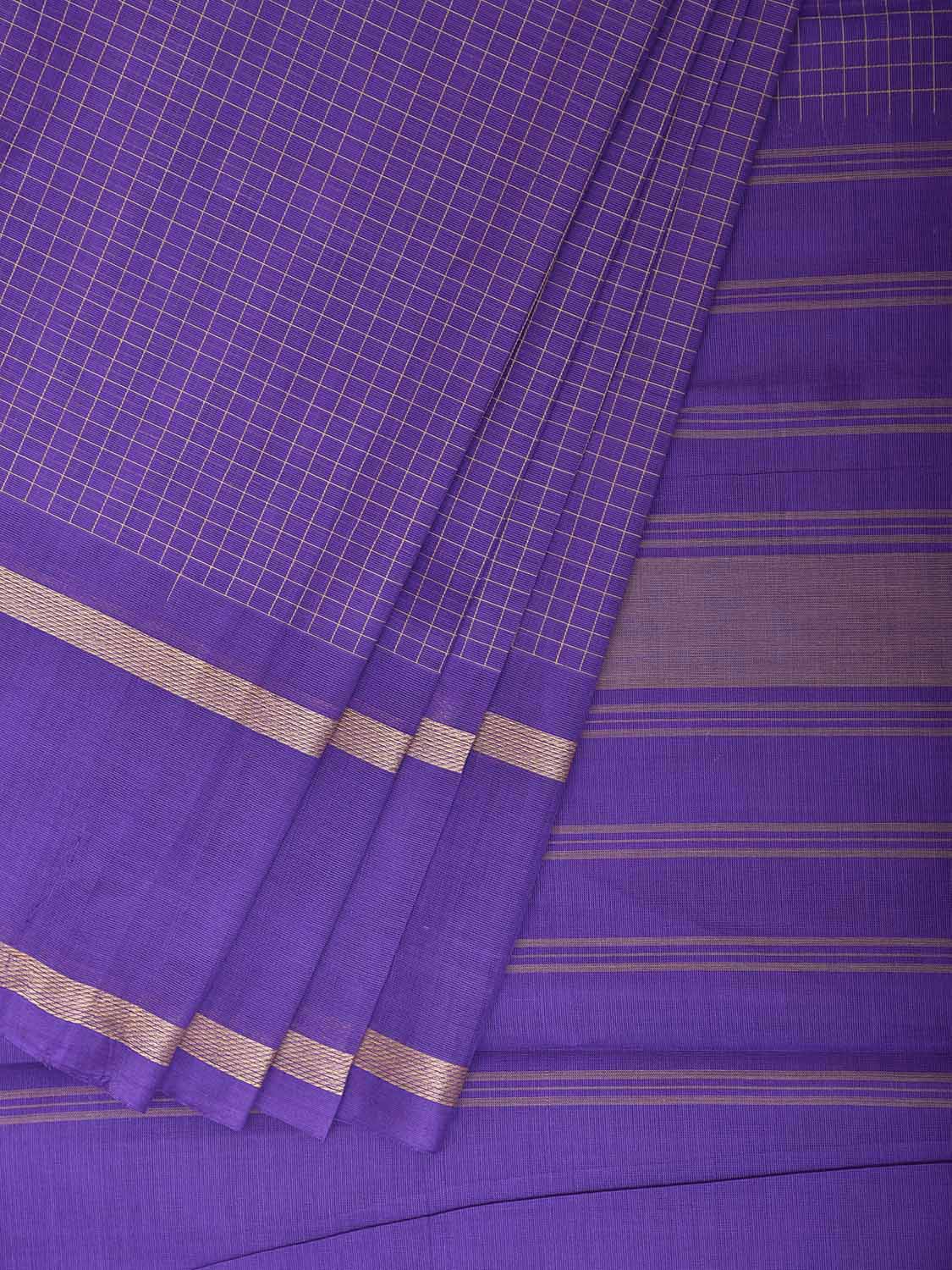 Lavender Venkatagiri Cotton Saree with Checks Design No Blouse. For fabric care we advise gentle handwash separately. This saree has no blouse.