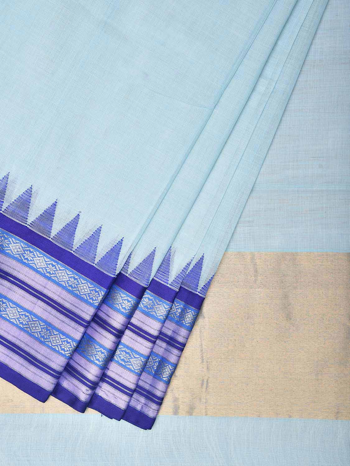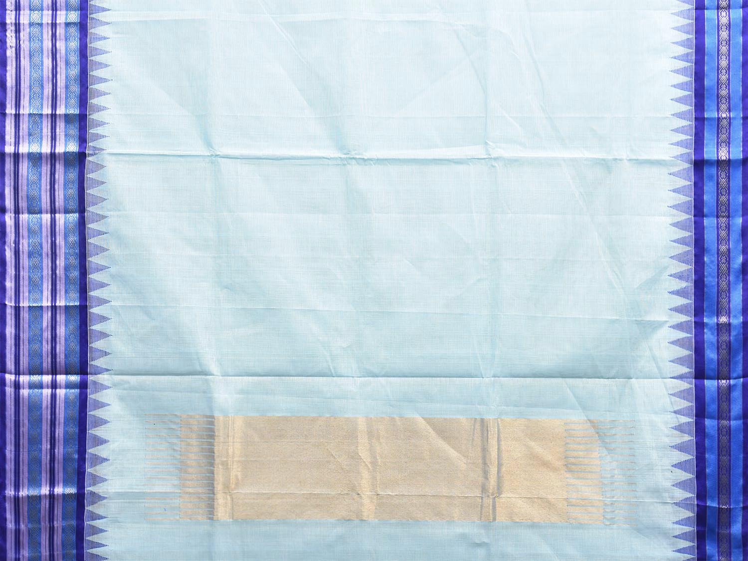 Light Blue and Blue Khadi Cotton Handloom Plain Saree with Kanchi Border Design. Khadi saree is primarily woven from cotton and may also include silk, or wool. It is a versatile fabric, cool in summer and warm in winter. For fabric care we advise dry clean.