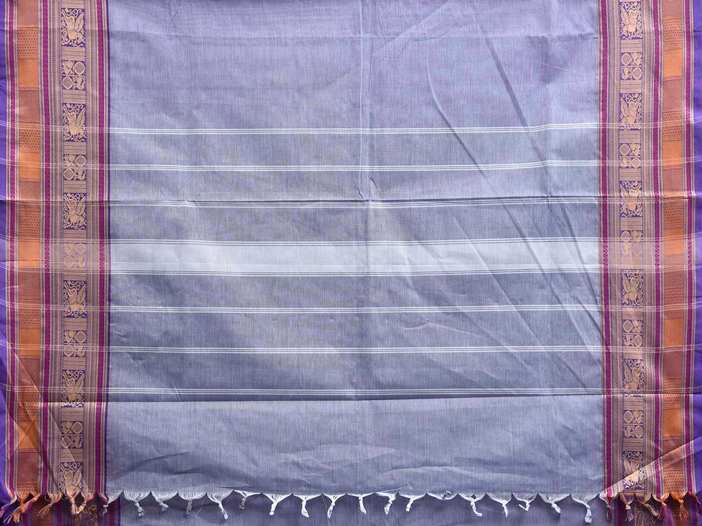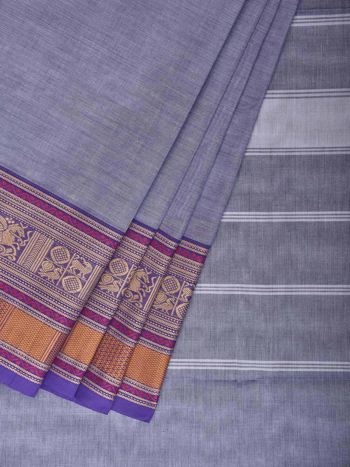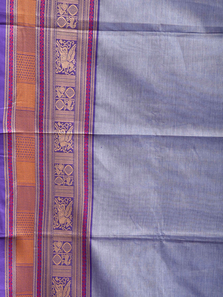 Light Blue Kanchipuram Cotton Plain Saree with Strips Pallu and Border Design. Traditional Simple South Indian Attire Saree for any Casual Occasions. As it’s a cotton saree we advice gentle handwash separately for fabric care. This saree has no blouse.