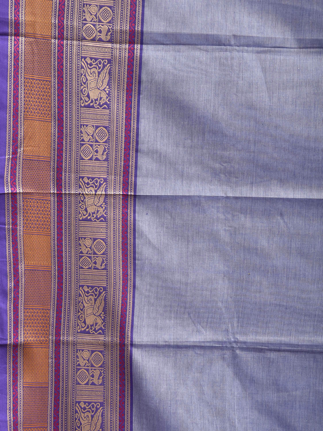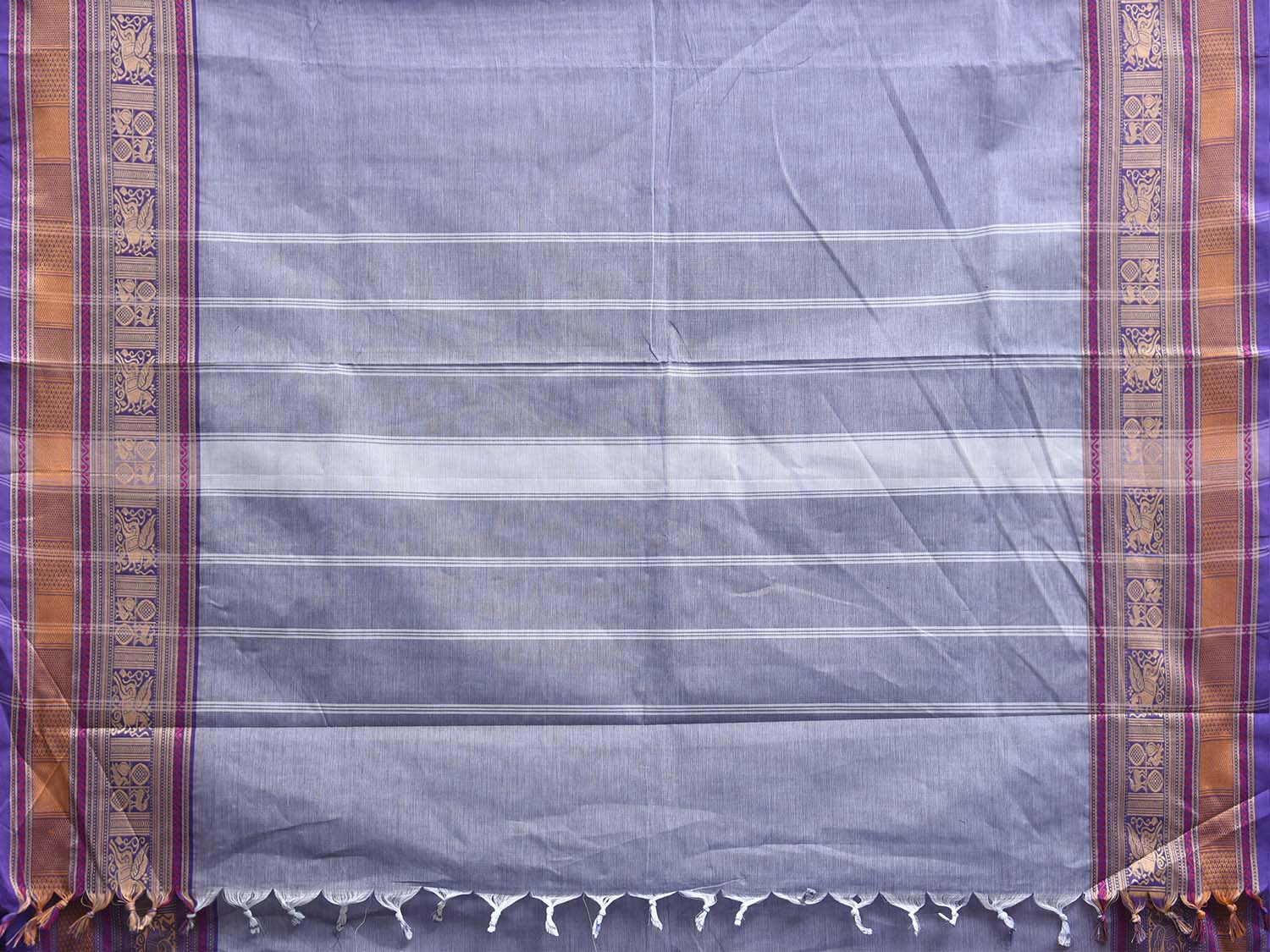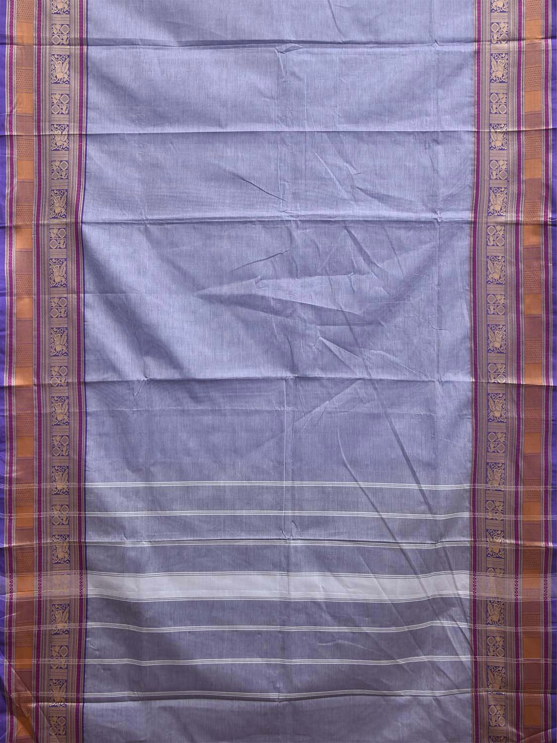 Light Blue Kanchipuram Cotton Plain Saree with Strips Pallu and Border Design. Traditional Simple South Indian Attire Saree for any Casual Occasions. As it’s a cotton saree we advice gentle handwash separately for fabric care. This saree has no blouse.