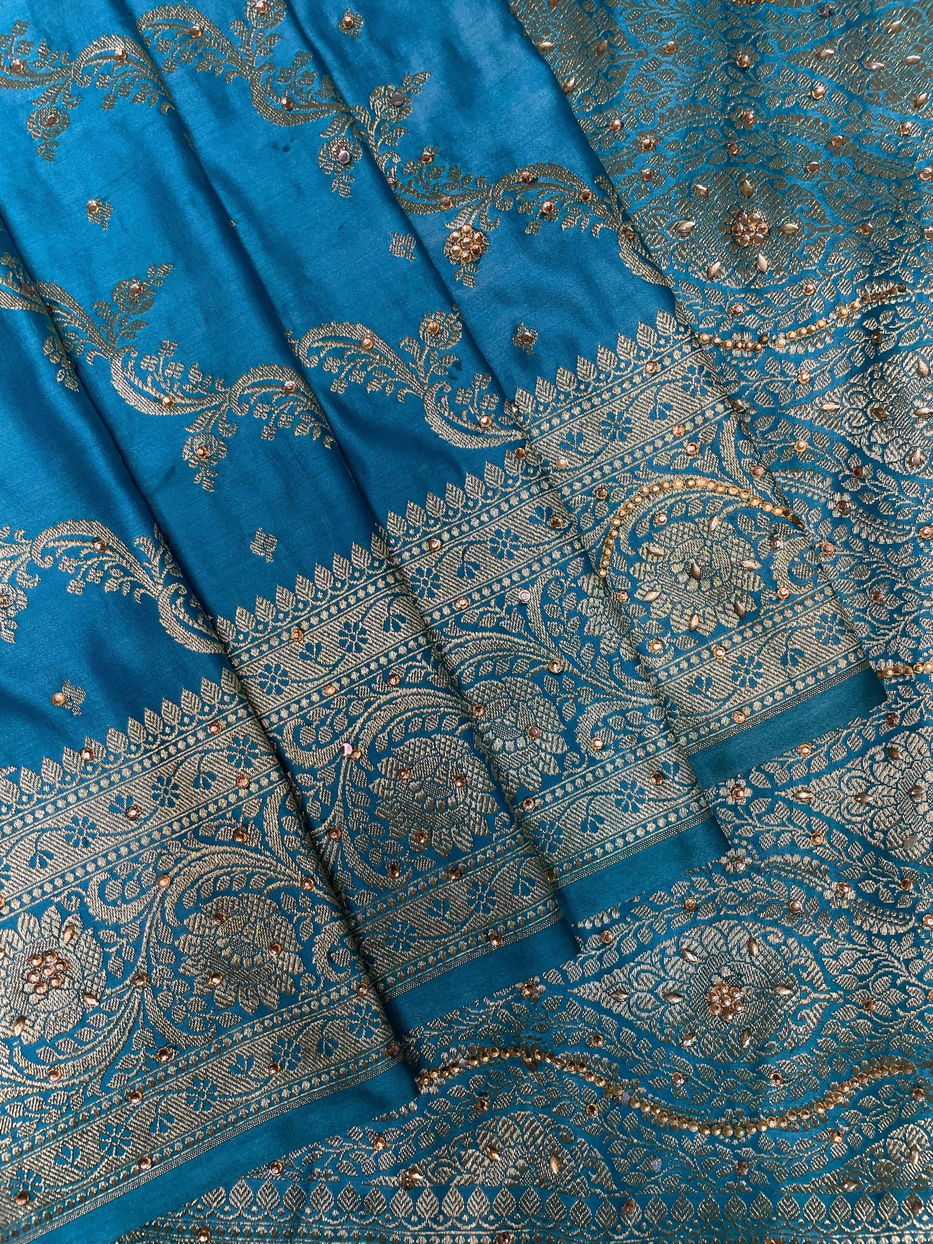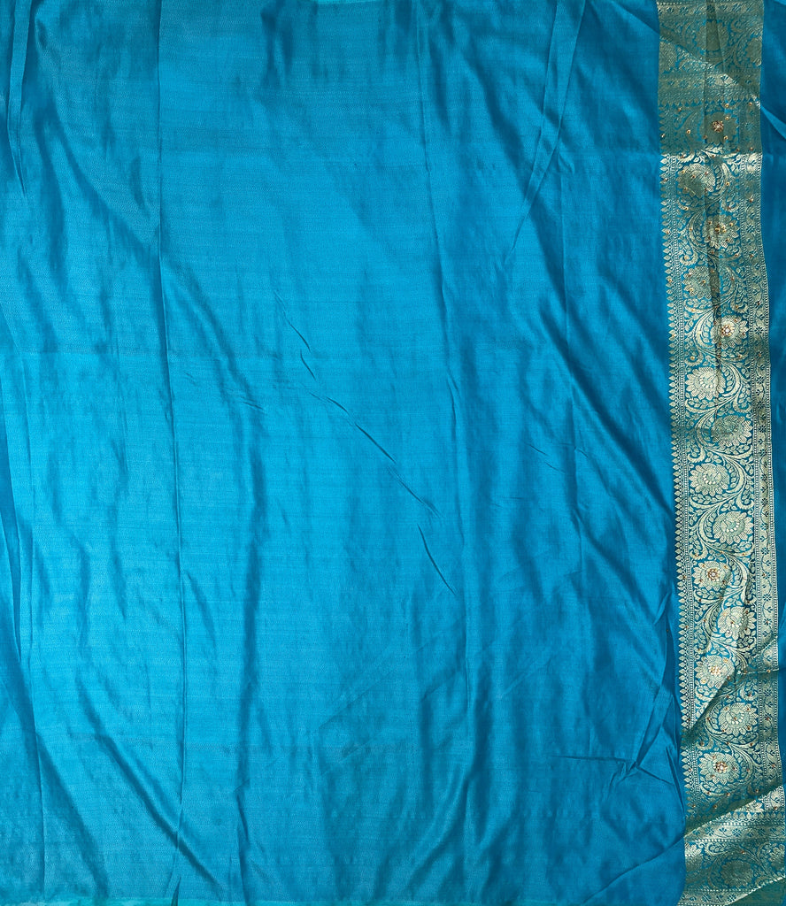 Light Blue Katan Banarasi Saree with Silver Zari Floral Weaving And Grand Pallu B0596ds