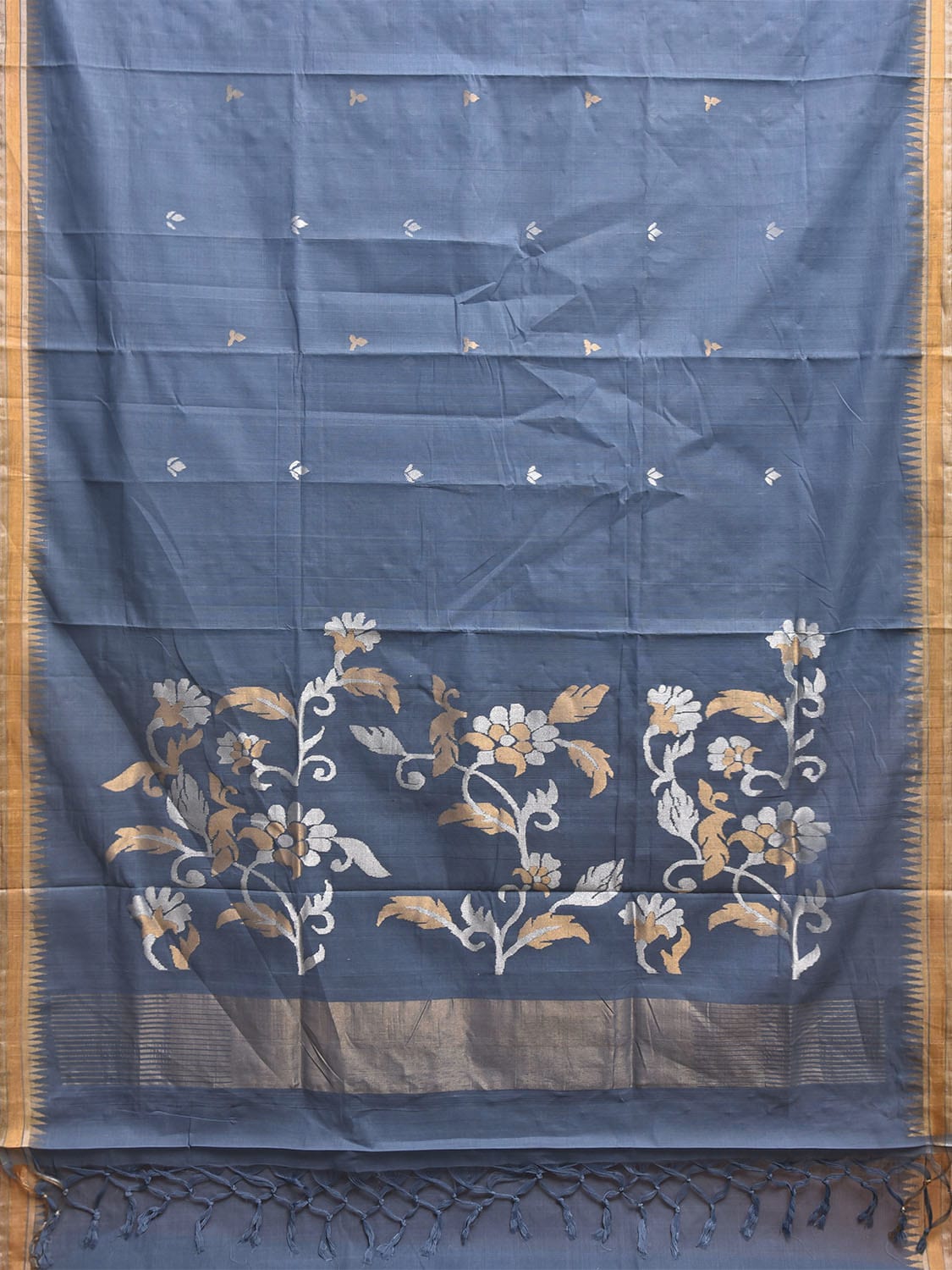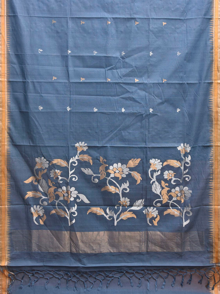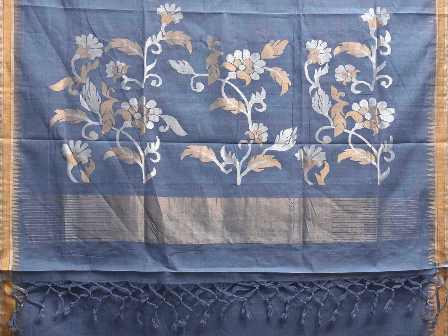 Light Blue Khadi Cotton Handloom Saree with Floral Pallu Design. Khadi saree is primarily woven from cotton and may also include silk, or wool. It is a versatile fabric, cool in summer and warm in winter. For fabric care we advise dry clean.