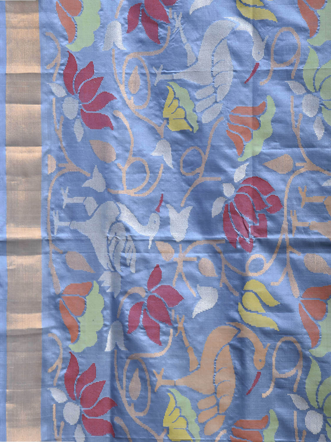 Light Blue Uppada Silk Handloom Saree with All Over Lotus and Birds Design u2470