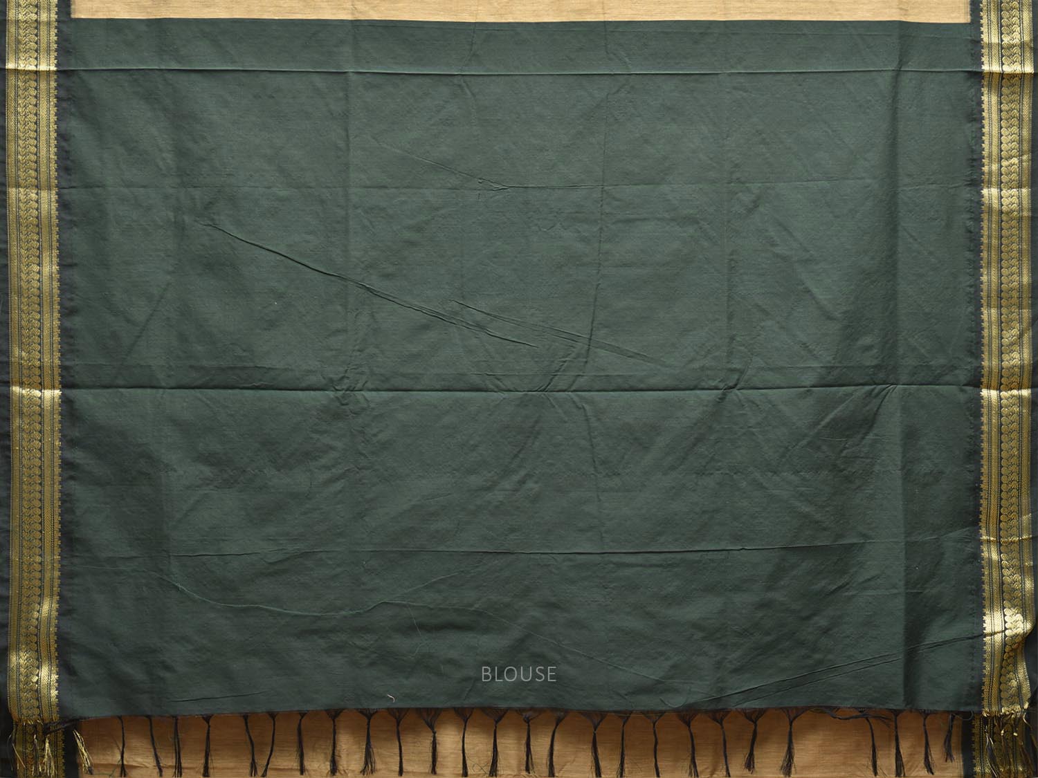 Light Fawn and Dark Green Gadwal Cotton Viscose Saree with Pallu and Border Design. Gadwal Sarees are known for their traditional design of border and pallu made of silk and body being either cotton or silk. They are known as Sico sarees for border and pallu being silk and body being cotton. We advice dry clean for fabric care.