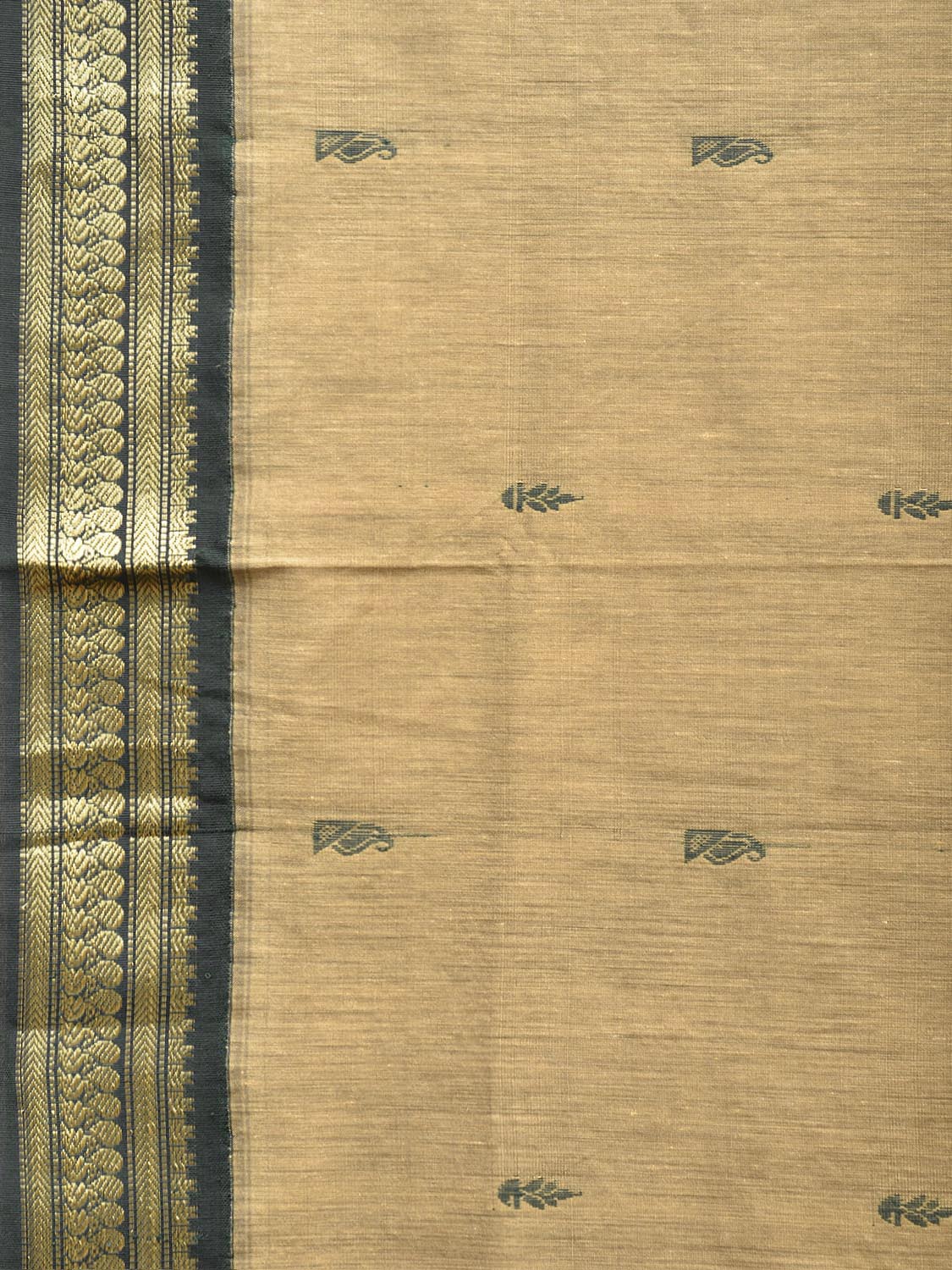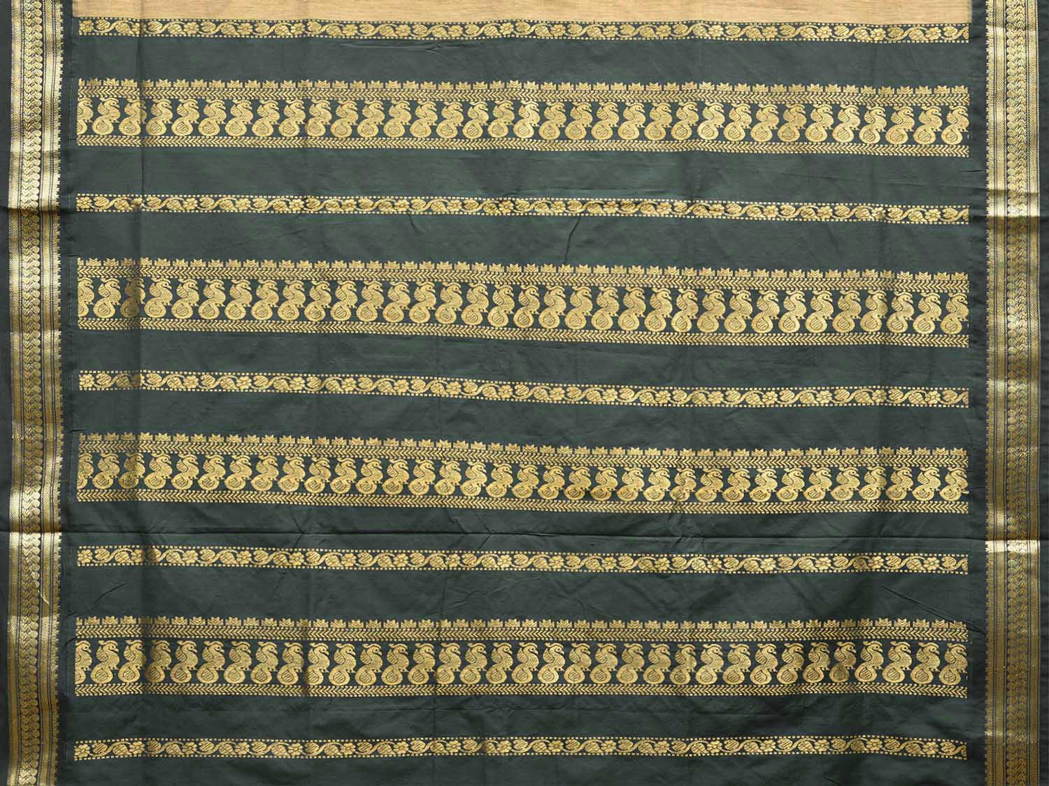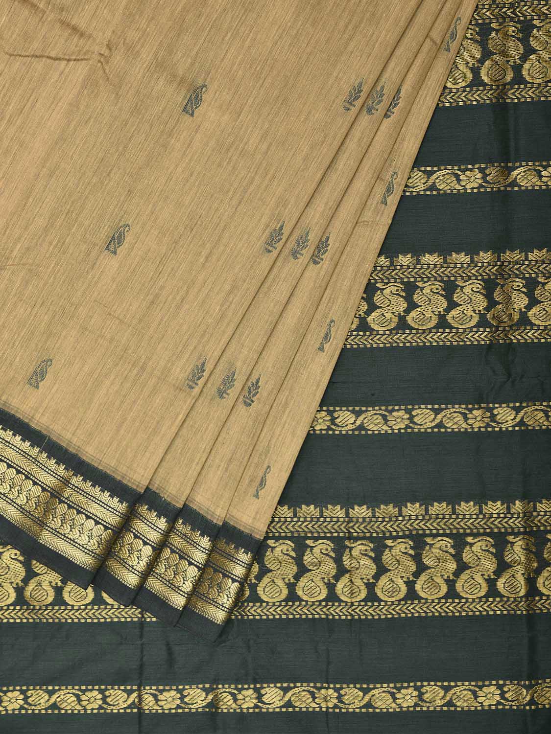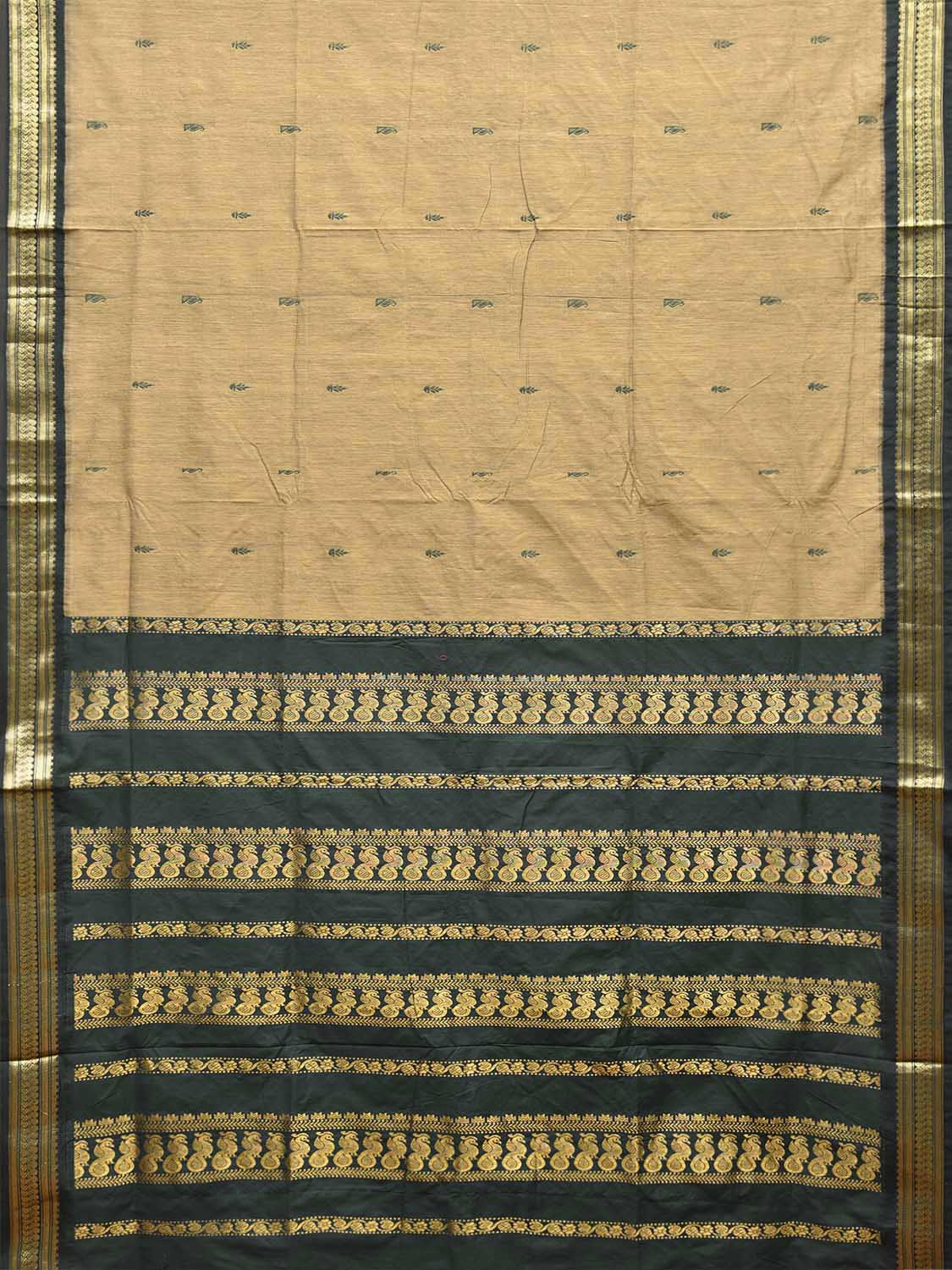 Light Fawn and Dark Green Gadwal Cotton Viscose Saree with Pallu and Border Design g0683