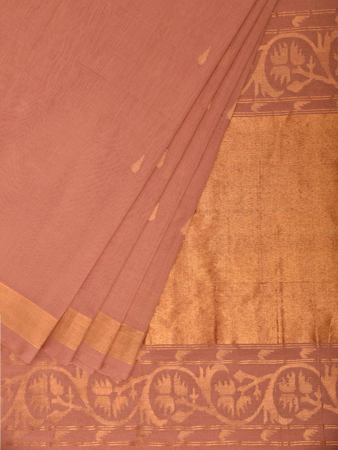 Light Fawn Uppada Cotton Handloom Saree with Aashavali Pallu Design.