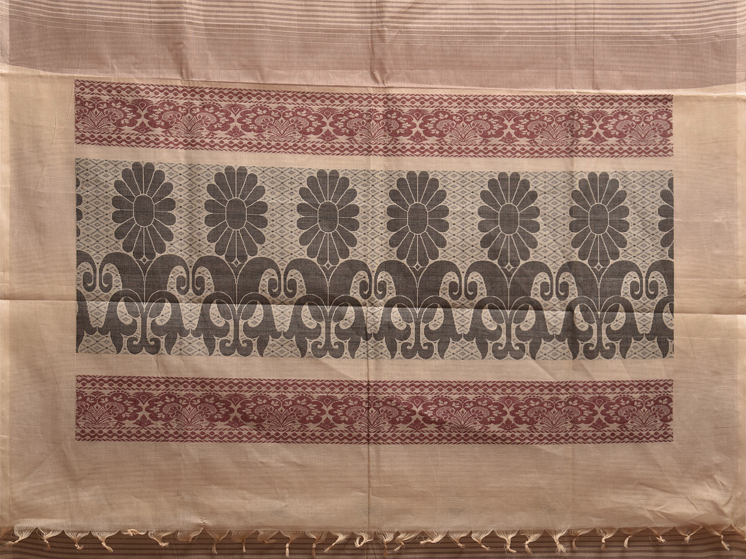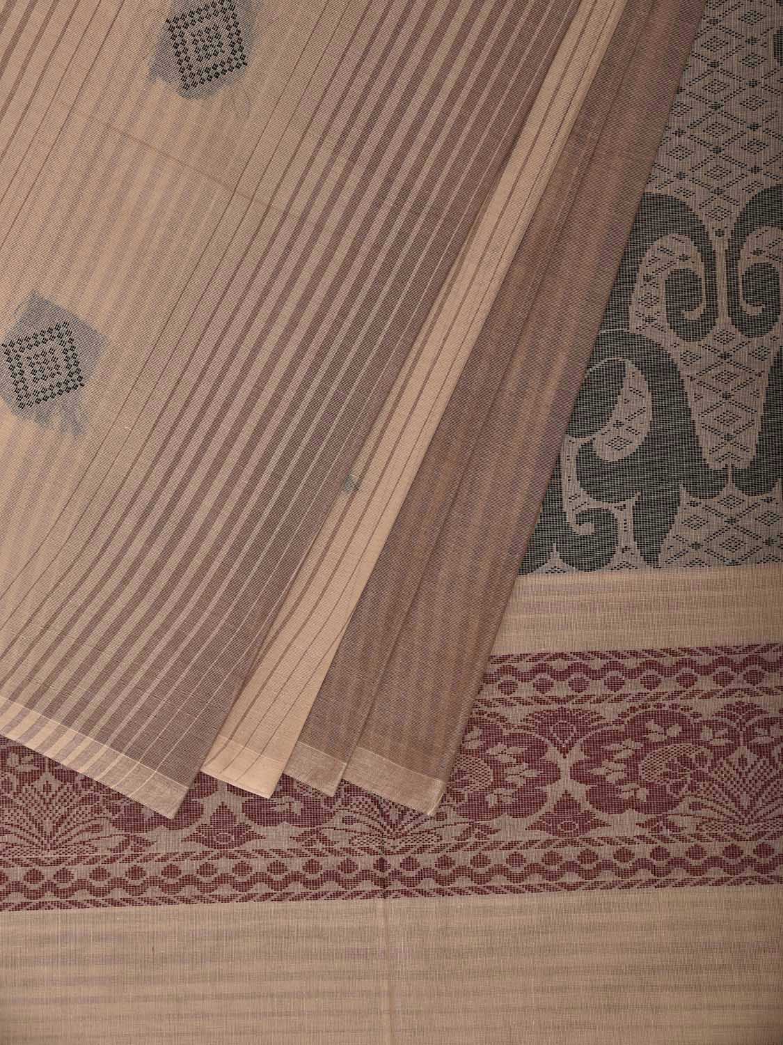 Light Fawn Venkatagiri Cotton Saree with Small Buta and Floral Pallu Design. Venkatagiri sarees are known for very fine cotton hand woven cotton saree. They are light weight and are traditional saree made in Andhra Pradesh. For fabric care we advice gentle handwash separately.