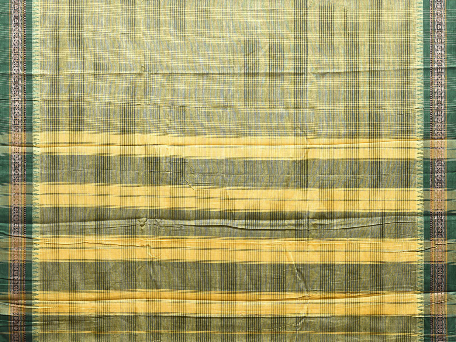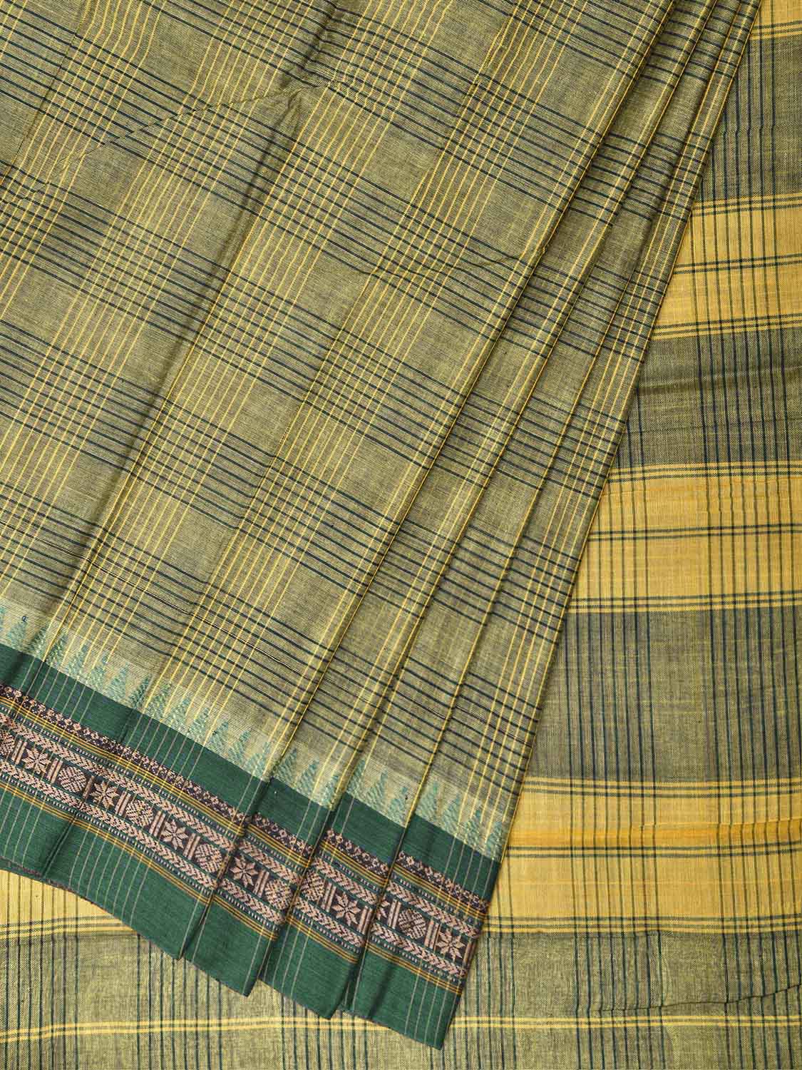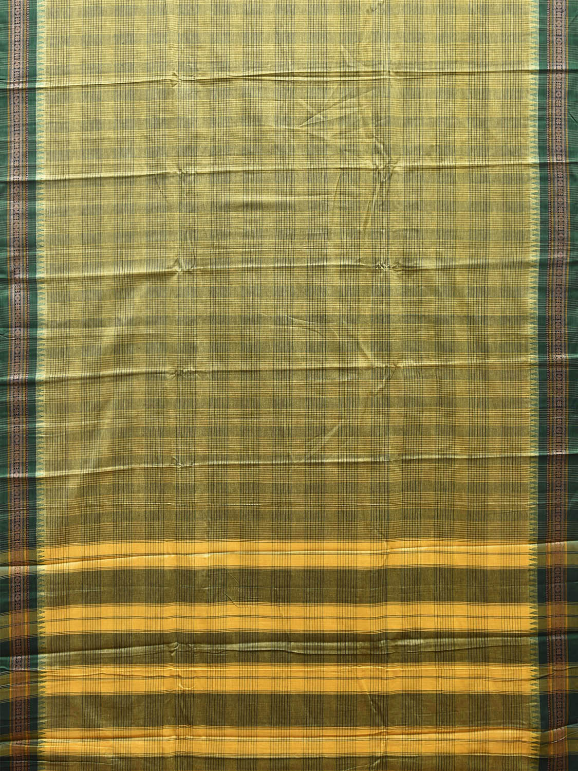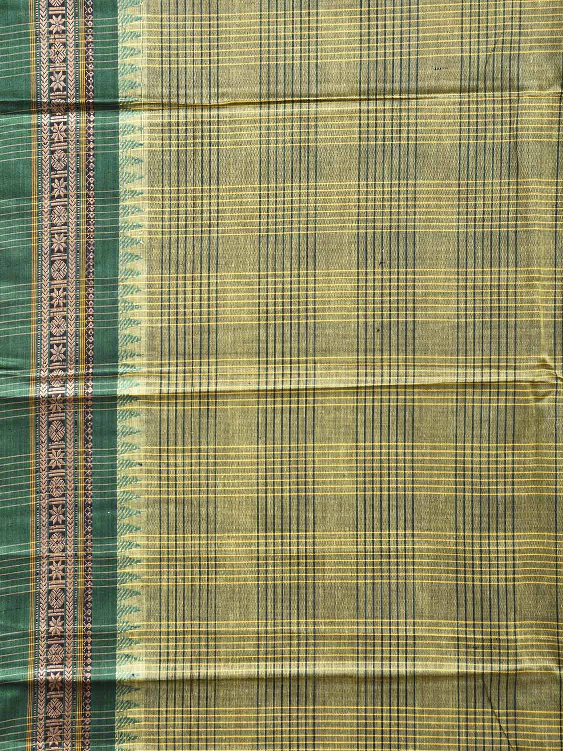 Light Green and Green Narayanpet Cotton Saree with Double Checks Design No Blouse. This saree has no blouse.
