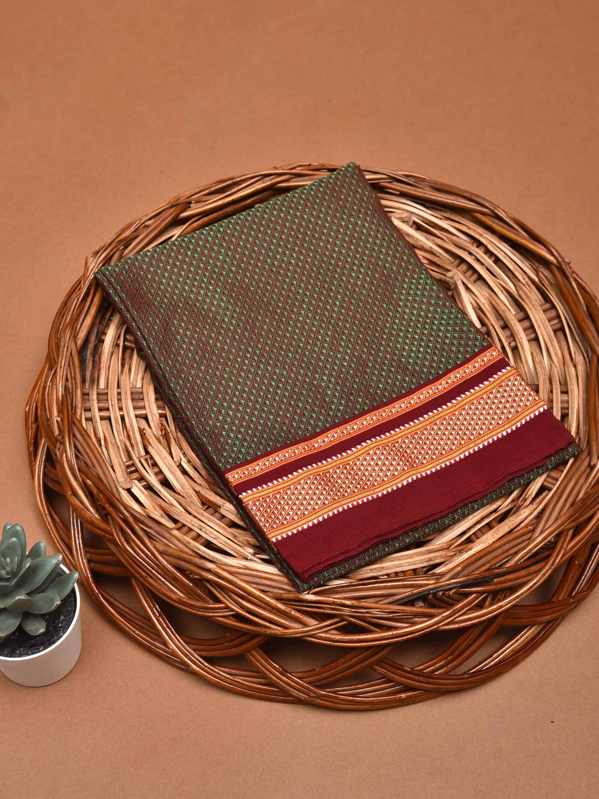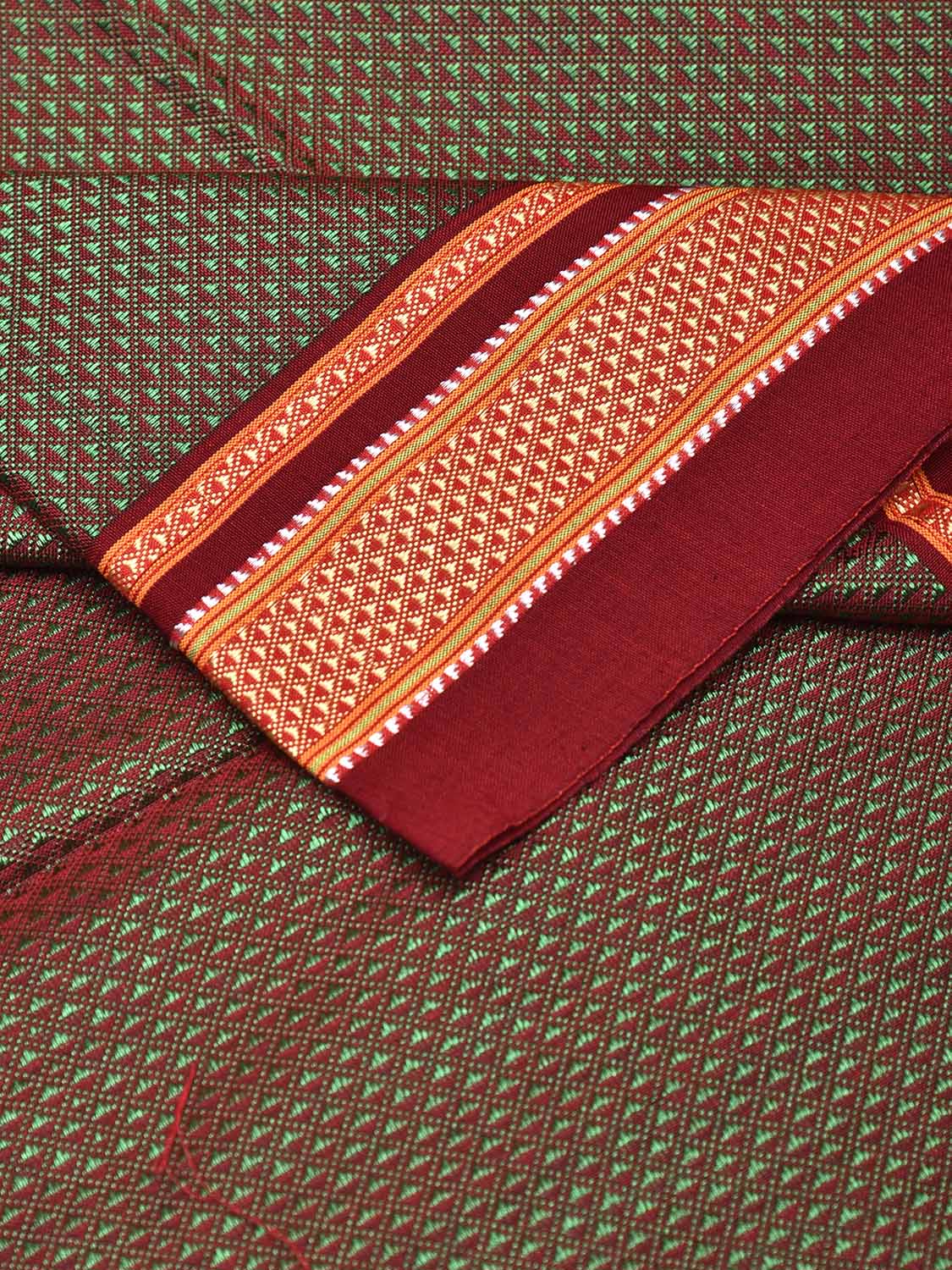Light Green and Maroon Jacquard Viscose Blouse with Contrast Border Design Length 1mt Width 31 Inches. Beautiful Pattern Blouse Fabric and Easy to Match to Any Suitable Saree. We Advise Gentle Handwash for Fabric Care.