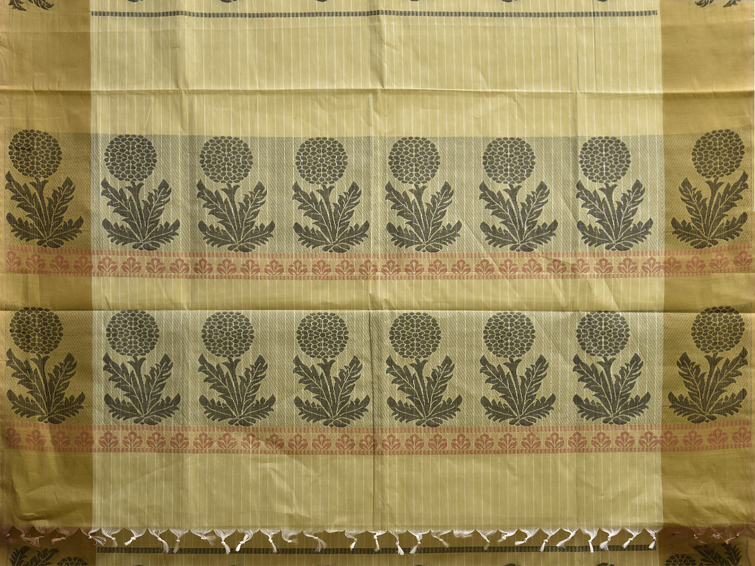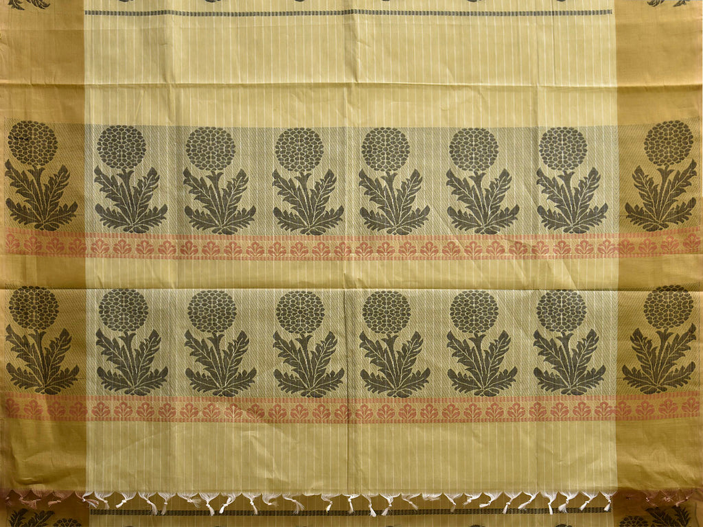 Light Green and Olive Venkatagiri Cotton Saree with Floral Buta and Pallu Design. Venkatagiri sarees are known for very fine cotton hand woven cotton saree. They are light weight and are traditional saree made in Andhra Pradesh. For fabric care we advice gentle handwash separately.