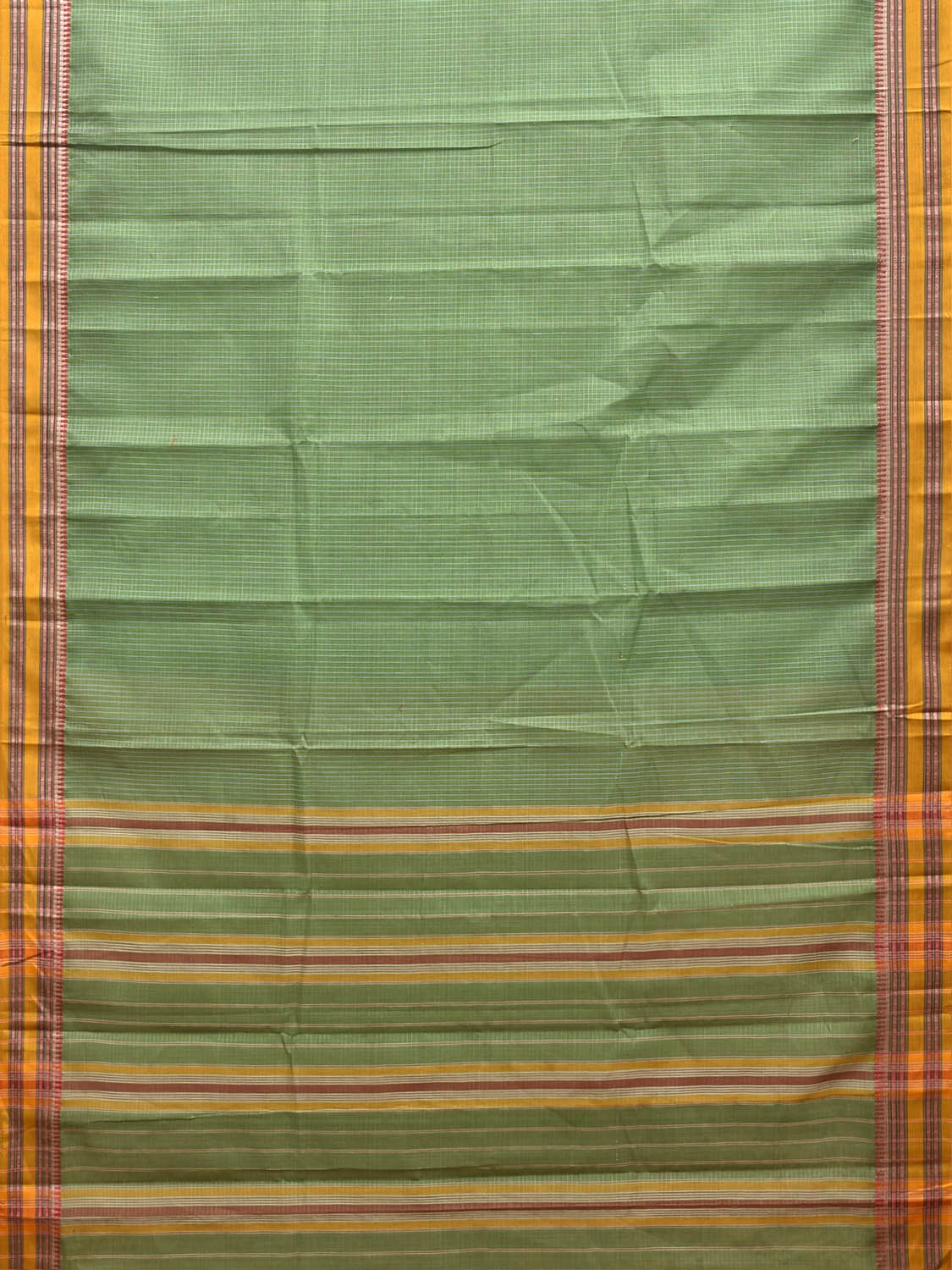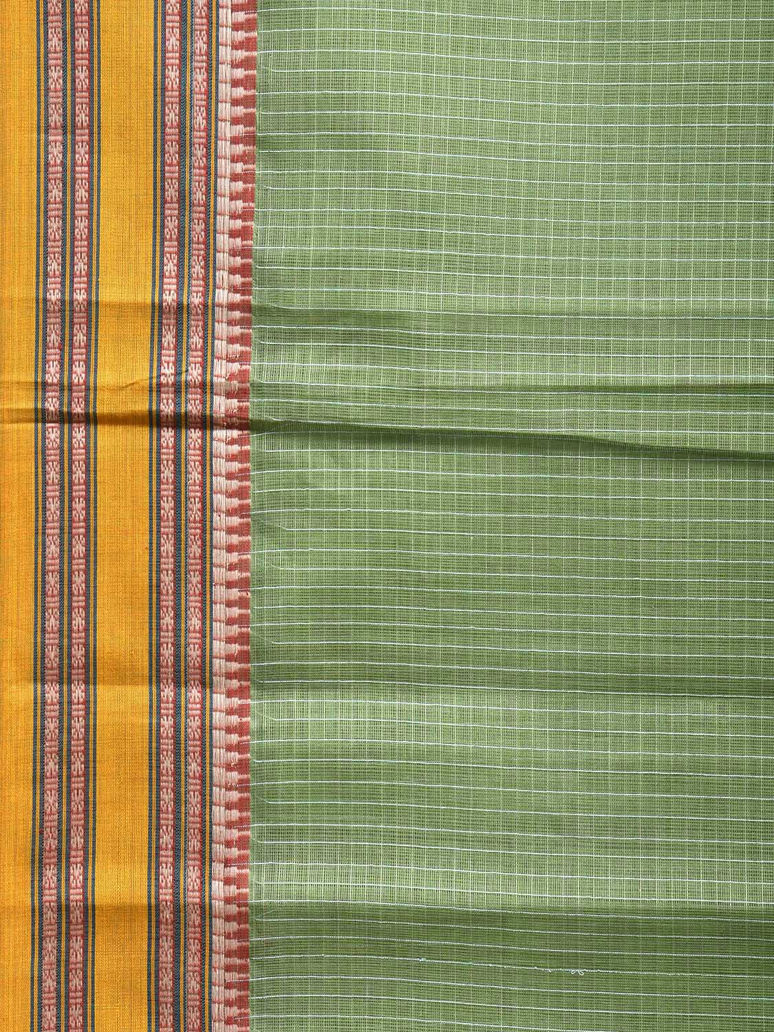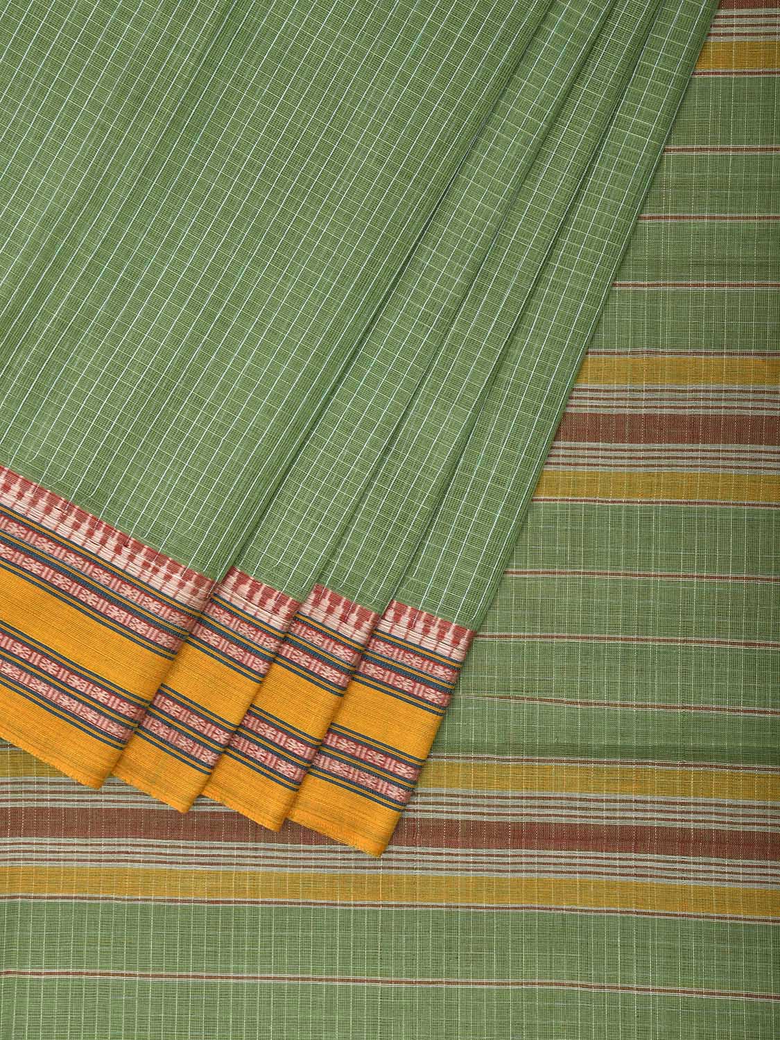 Light Green and Yellow Narayanpet Cotton Saree with Checks Design No Blouse. This Saree has no Blouse.