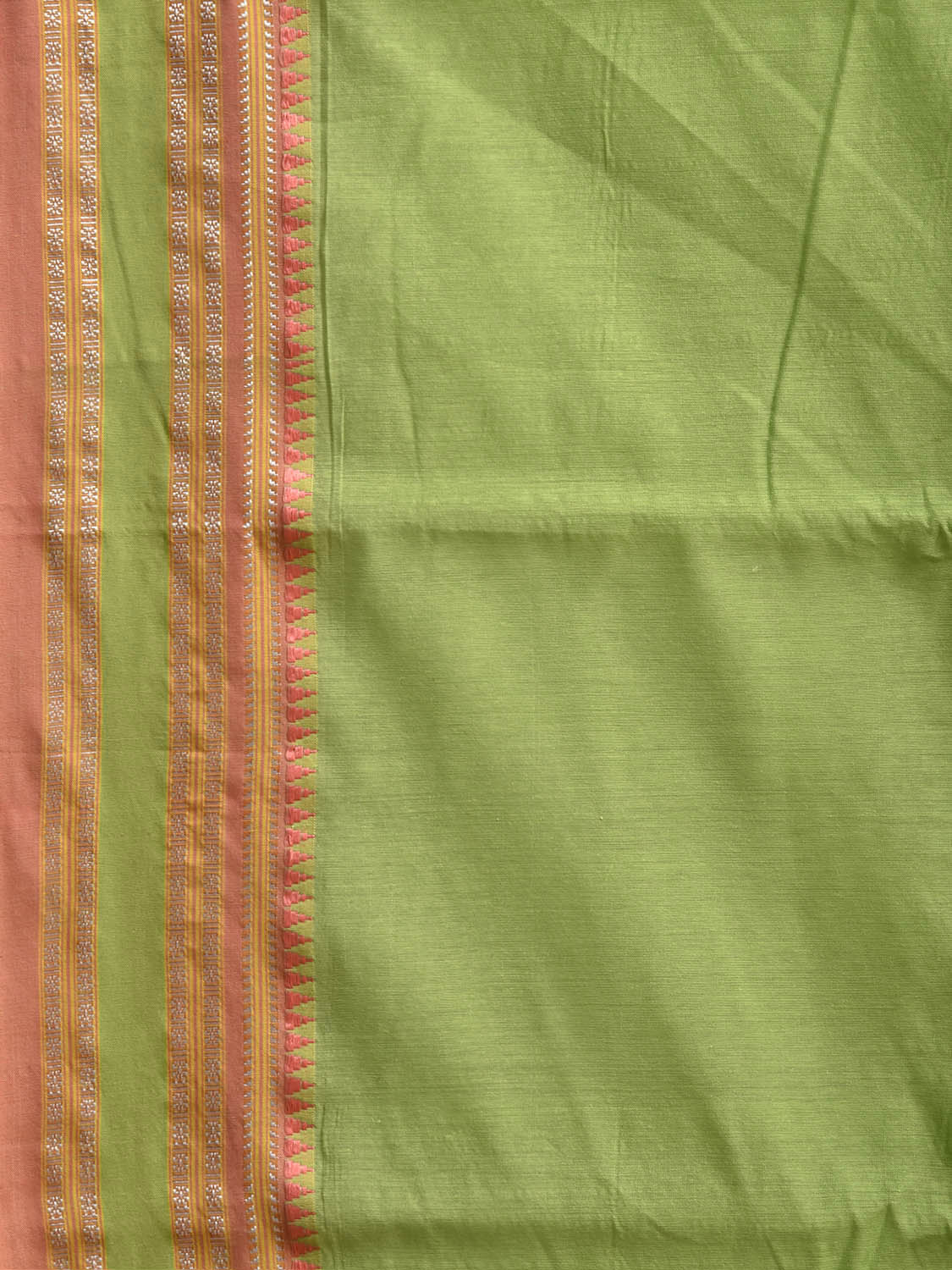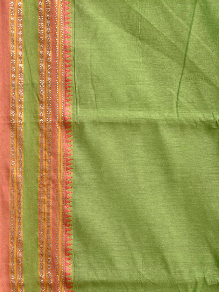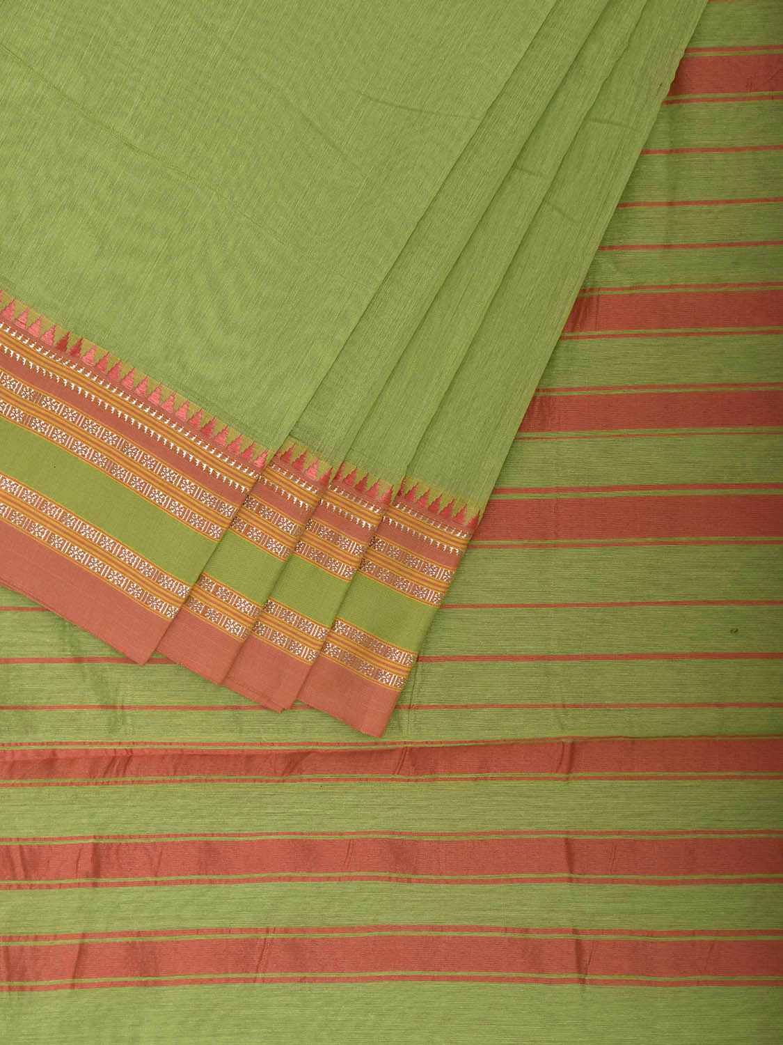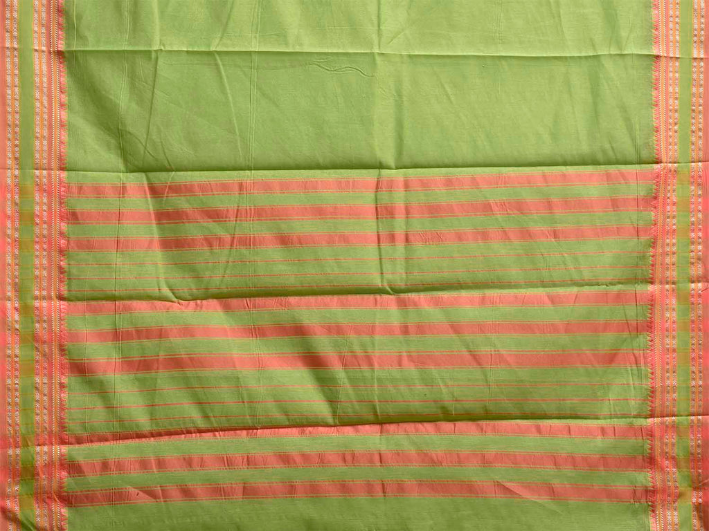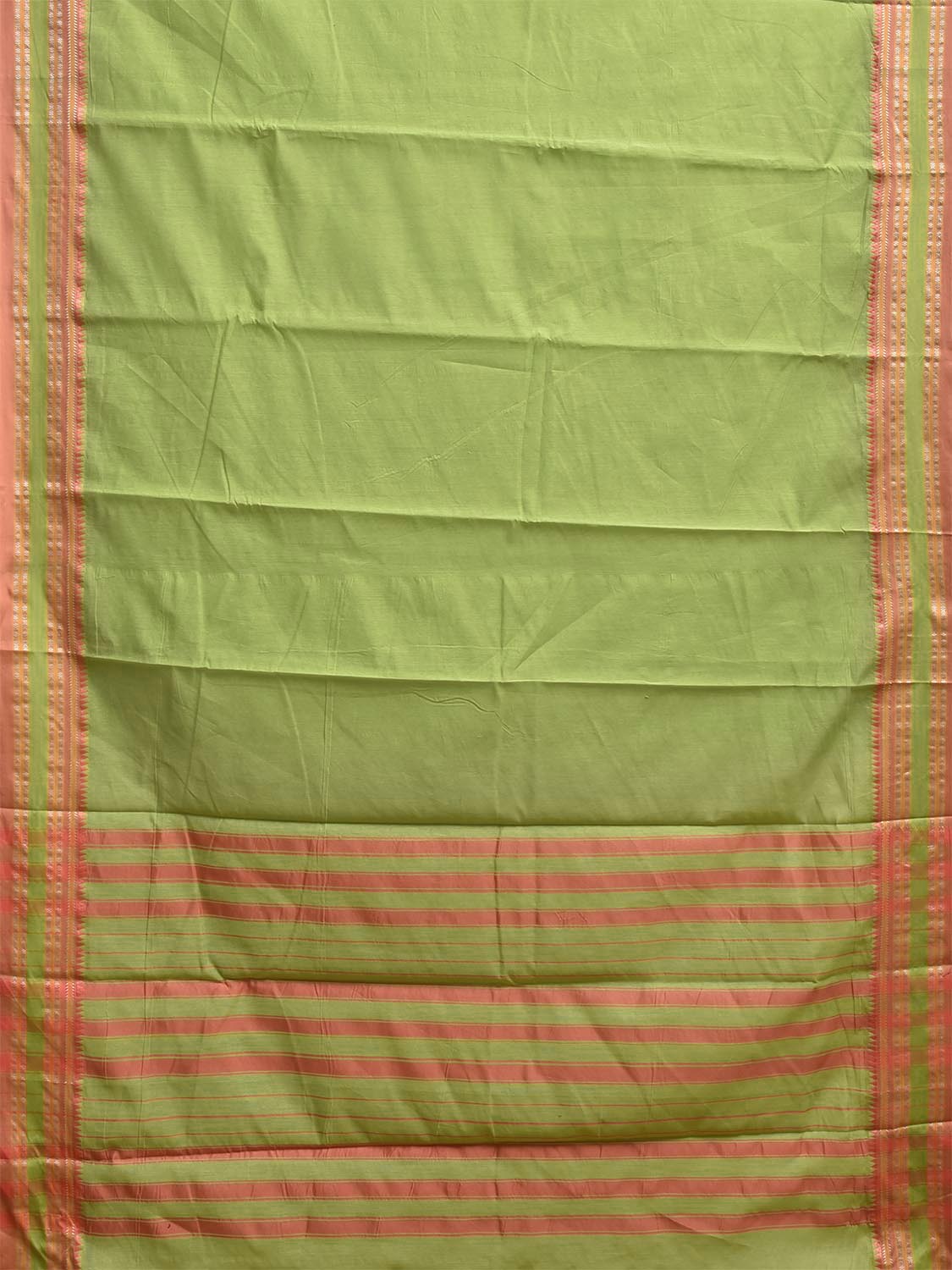 Light Green Bamboo Cotton Plain Saree with Strips Pallu Design No Blouse. This is a blend of bamboo and cotton fibers, they have characteristics of both bamboo and cotton combined into one fabric. We Advise Gentle Handwash for Fabric Care. This saree has no blouse.