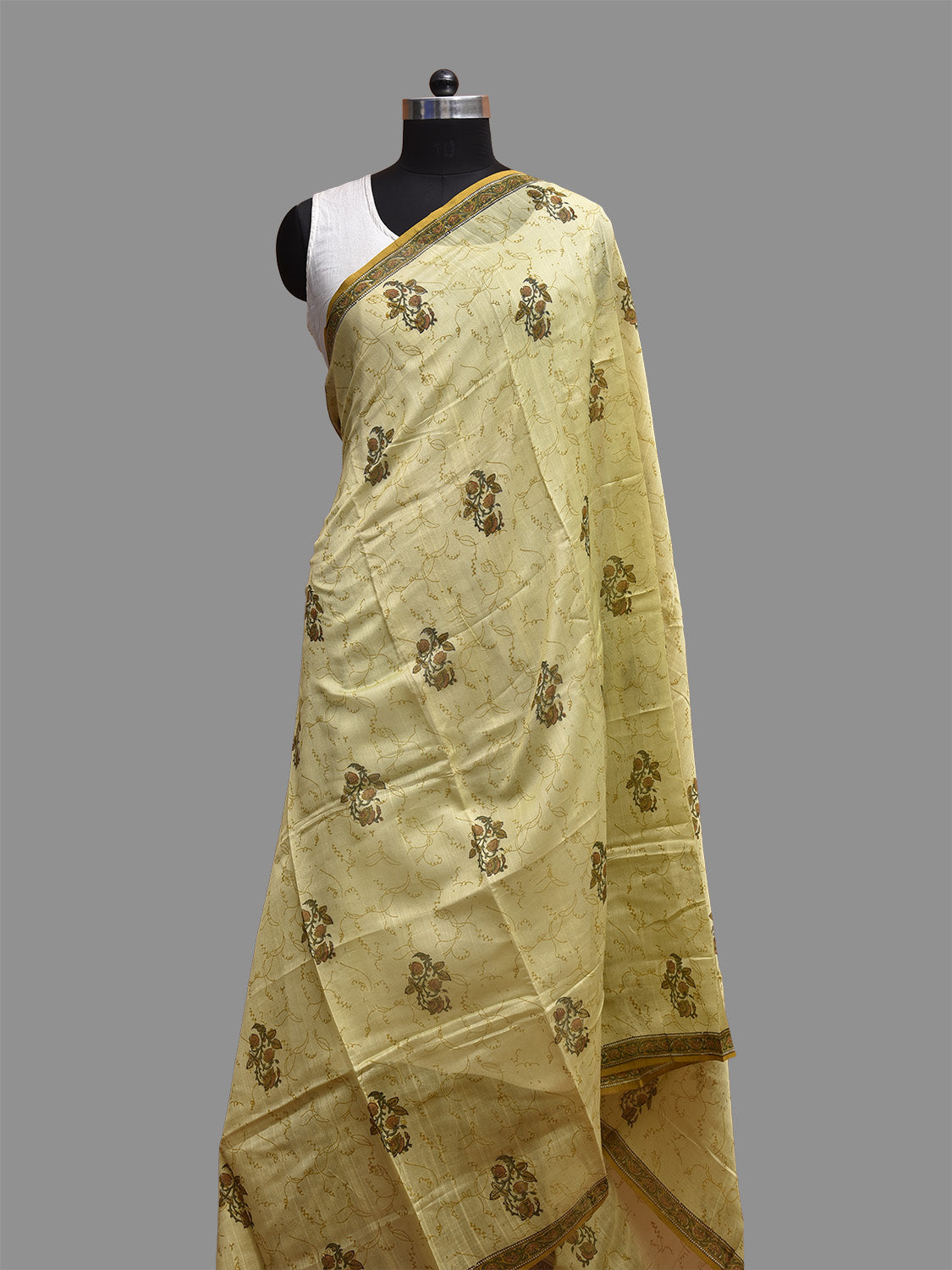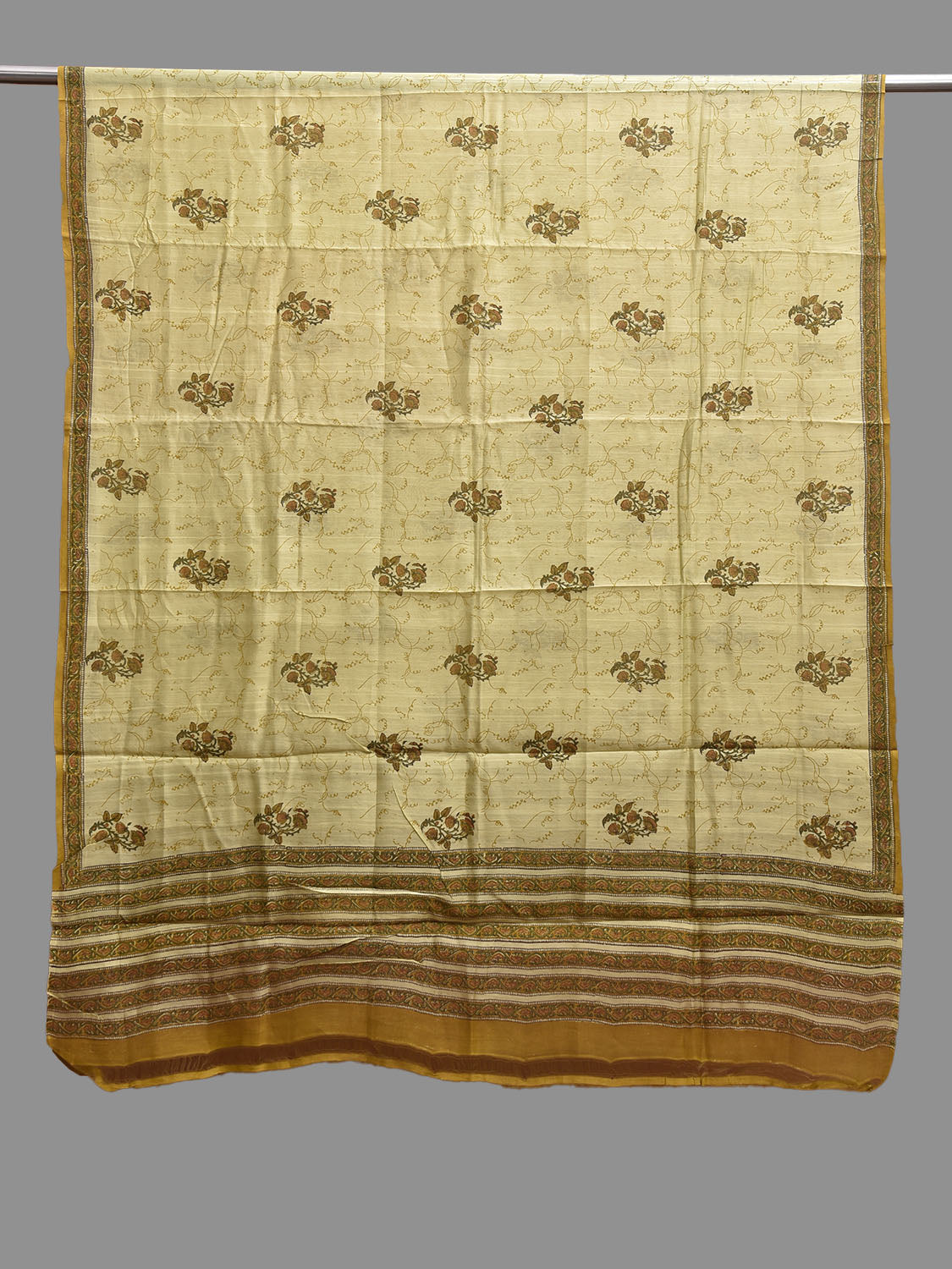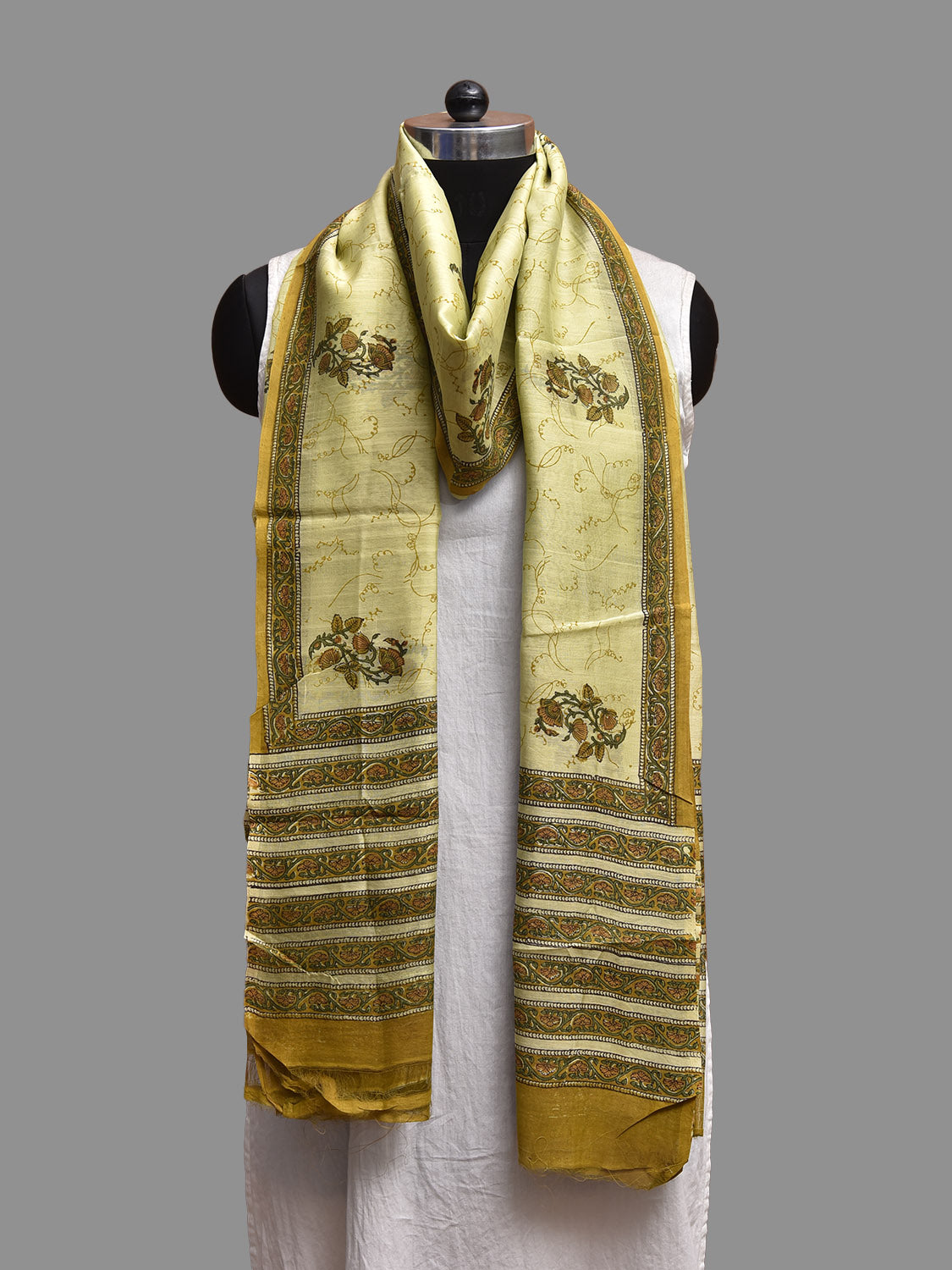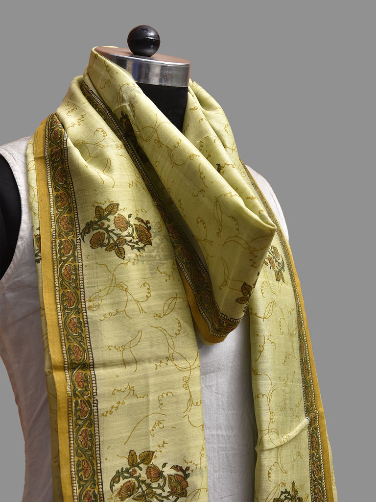 Light Green Block Print Cotton Silk Dupatta with Natural Dyes Floral Design