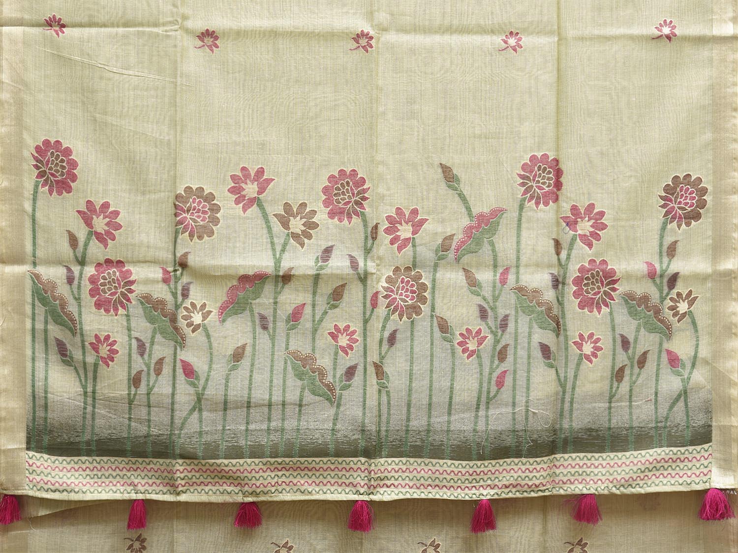 Light Green Dhakai Jamdani Cotton Viscose Saree with Floral Pallu Design. These are some of the traditional Dhakai Jamdani designs, these sarees have geometric designs and sometimes floral or combination of both. We advice gentle handwash separately for fabric care.