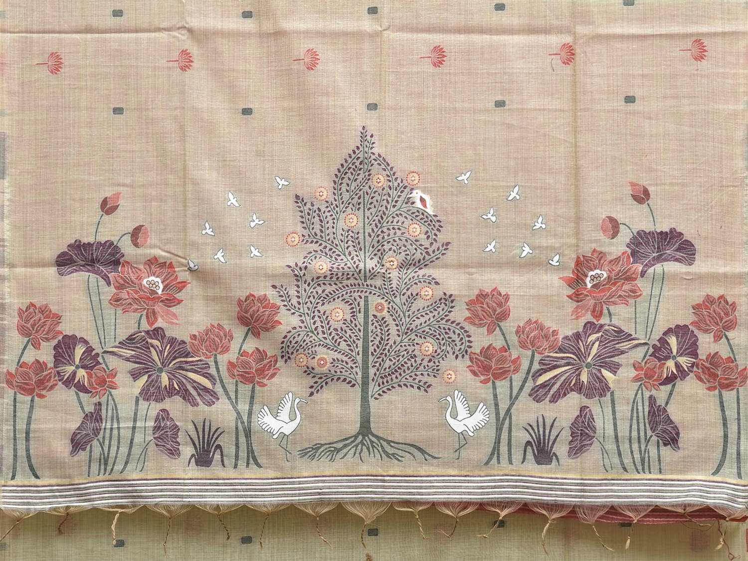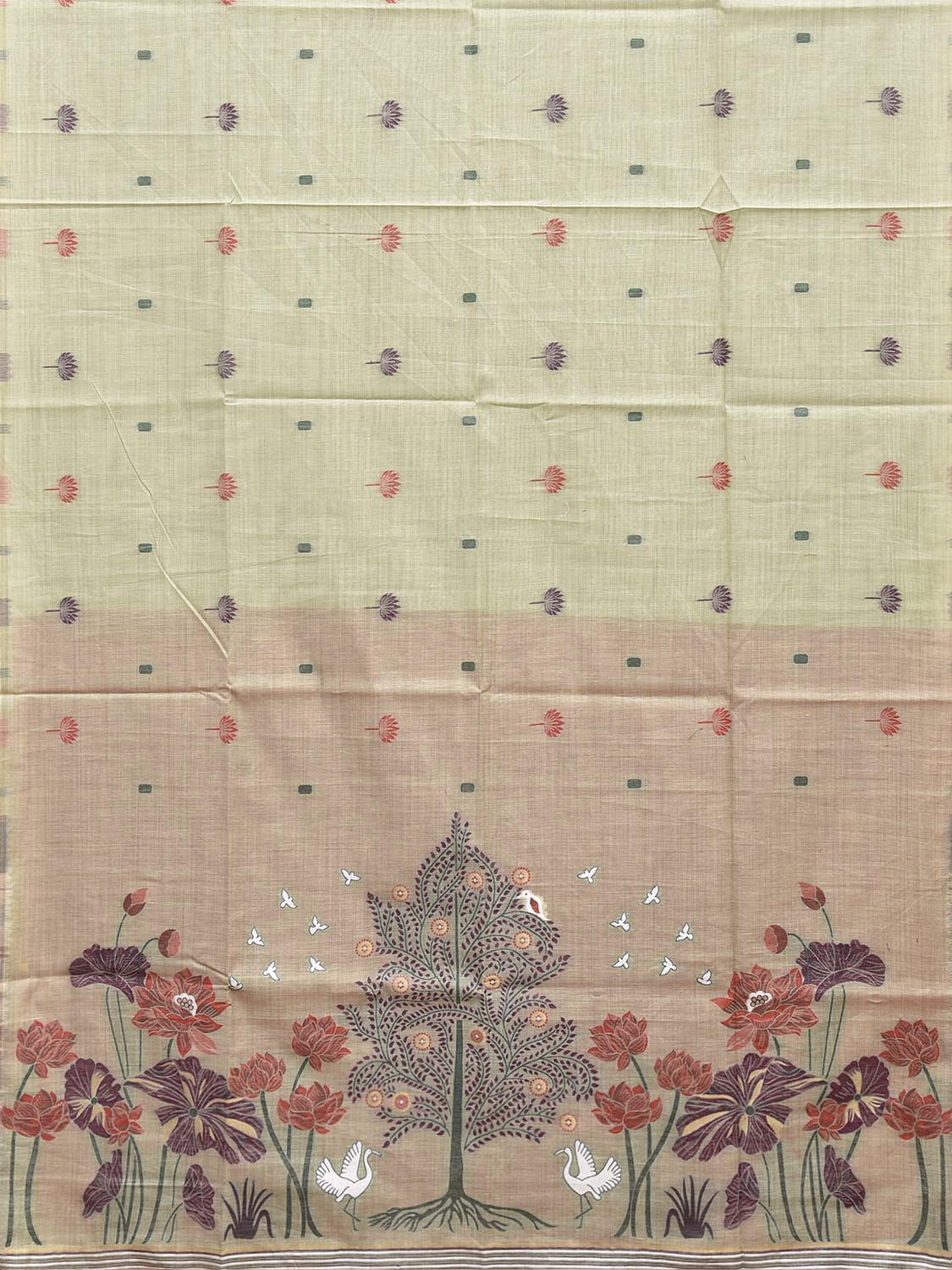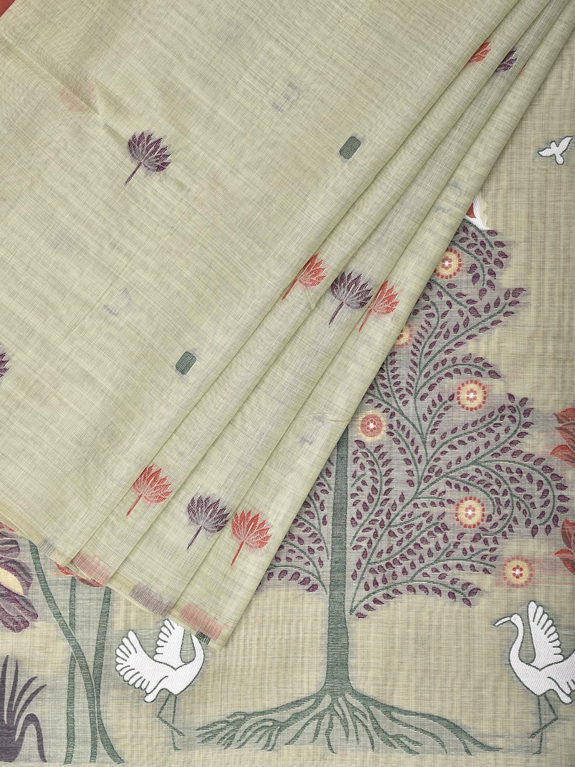 Light Green Dhakai Jamdani Cotton Viscose Saree with Floral Pallu Design. These are some of the traditional Dhakai Jamdani designs, these sarees have geometric designs and sometimes floral or combination of both. We advice gentle handwash separately for fabric care.