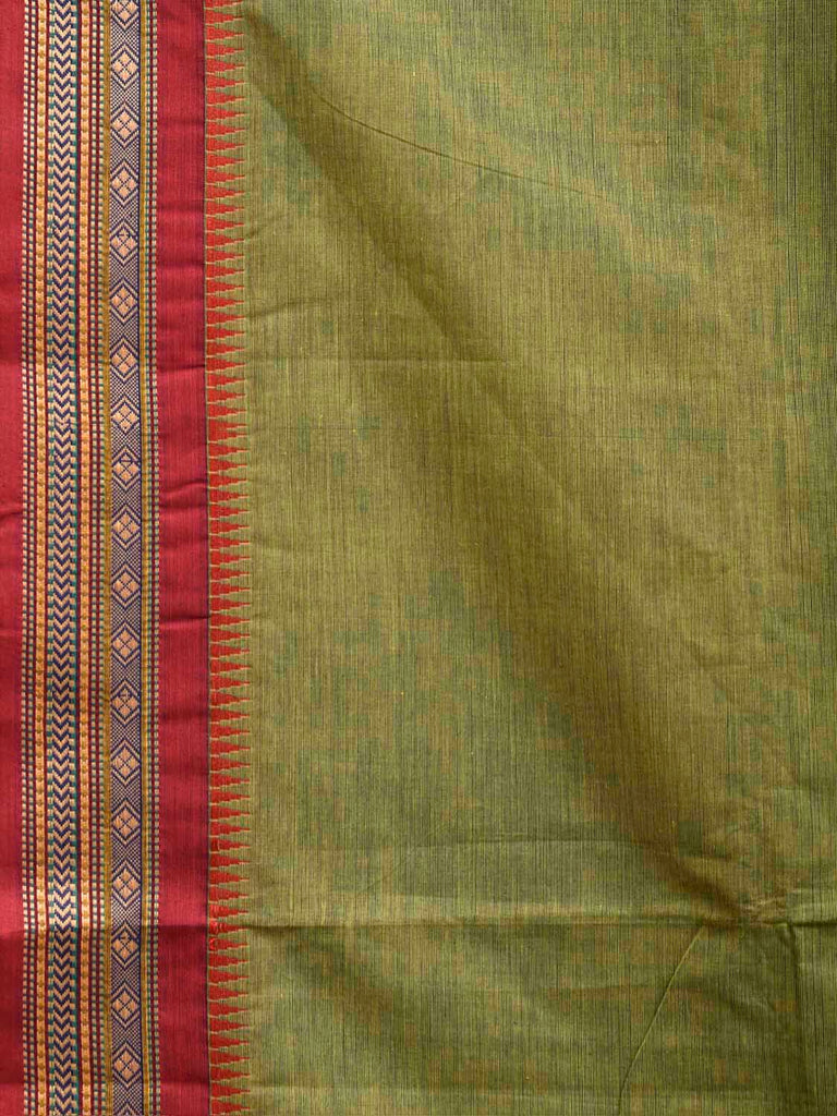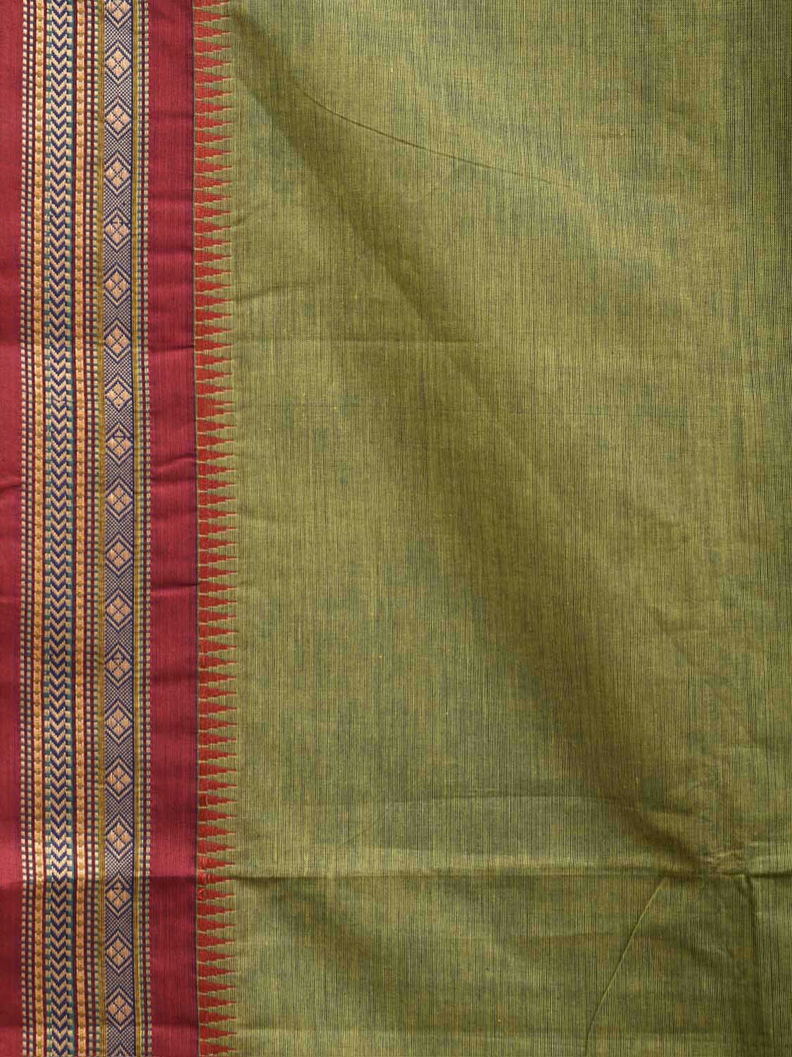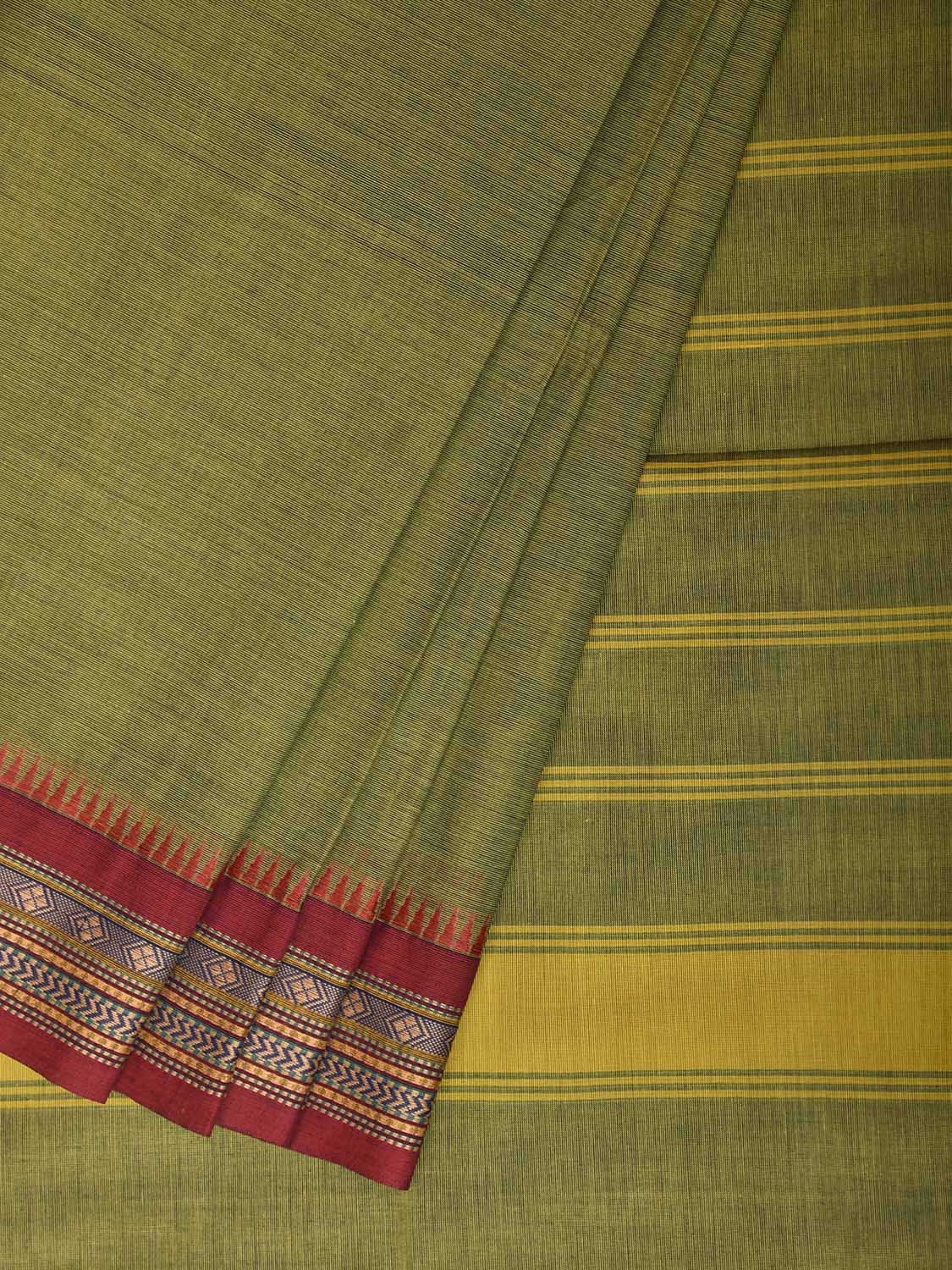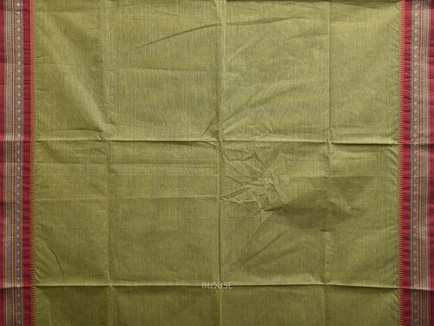 Light Green Kanchipuram Cotton Plain Saree with Strips Pallu Design No Blouse. This saree has no blouse.