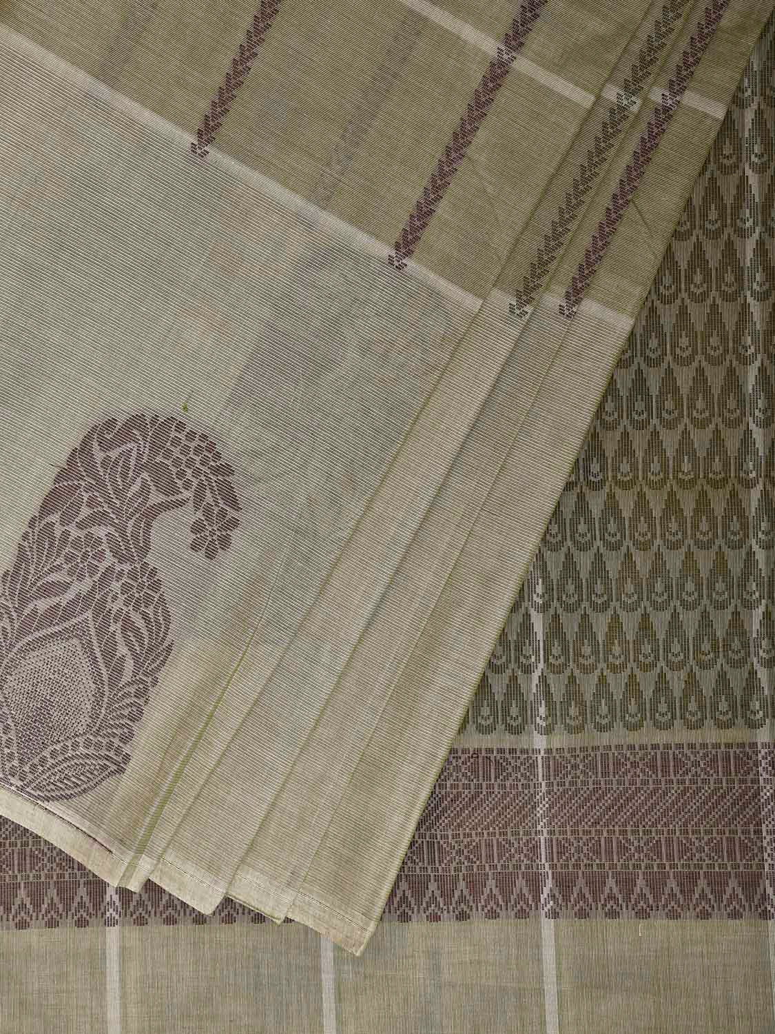 Light Green Venkatagiri Cotton Saree with One Side Mango Border Design. Venkatagiri sarees are known for very fine cotton hand woven cotton saree. They are light weight and are traditional saree made in Andhra Pradesh. For fabric care we advice gentle handwash separately.