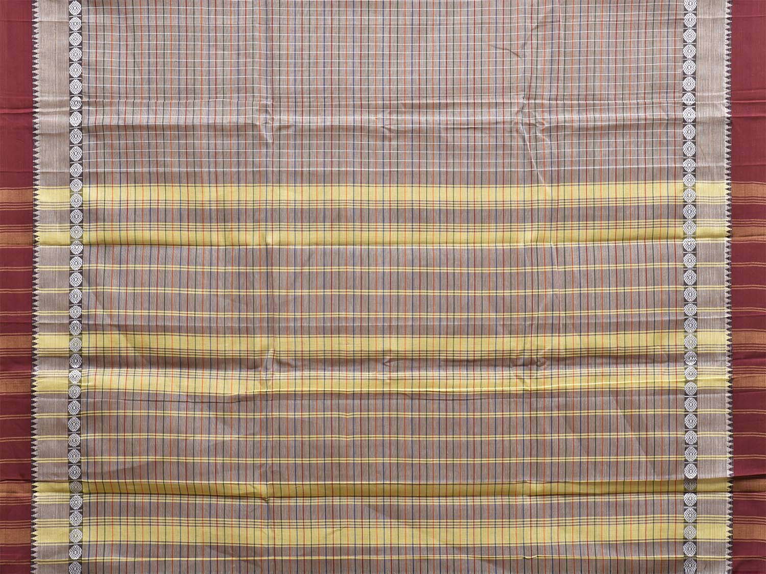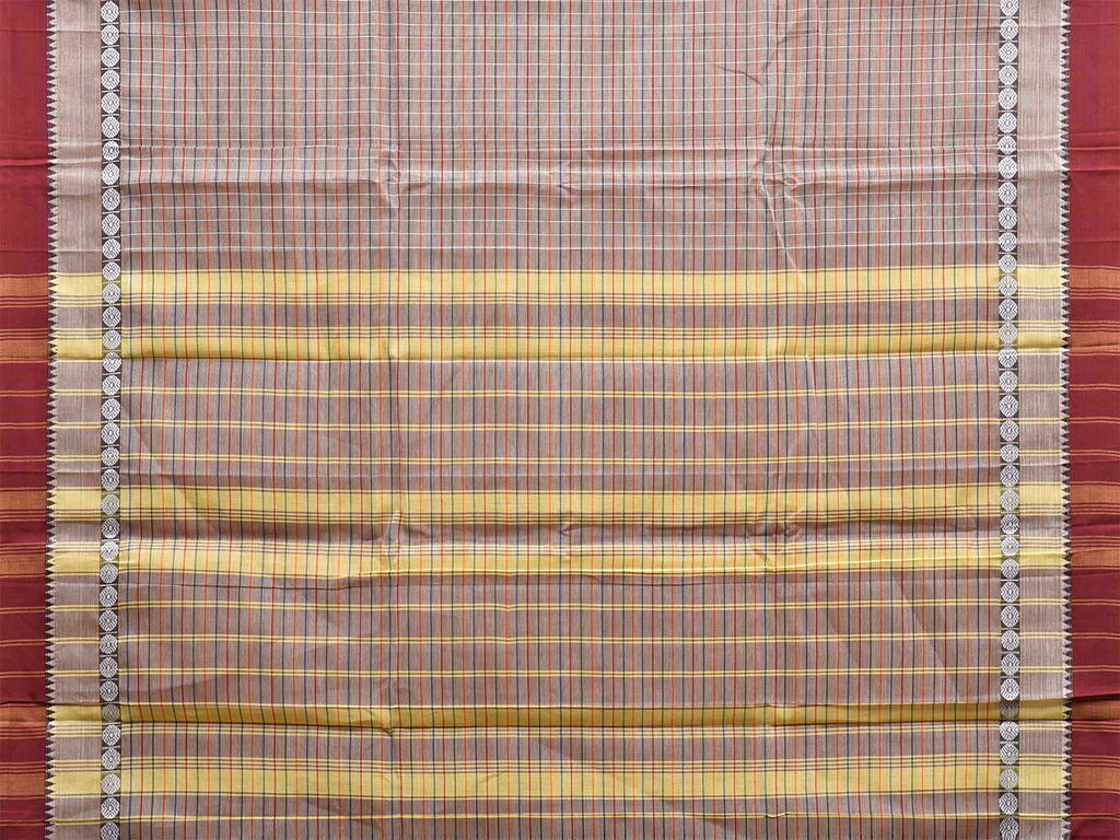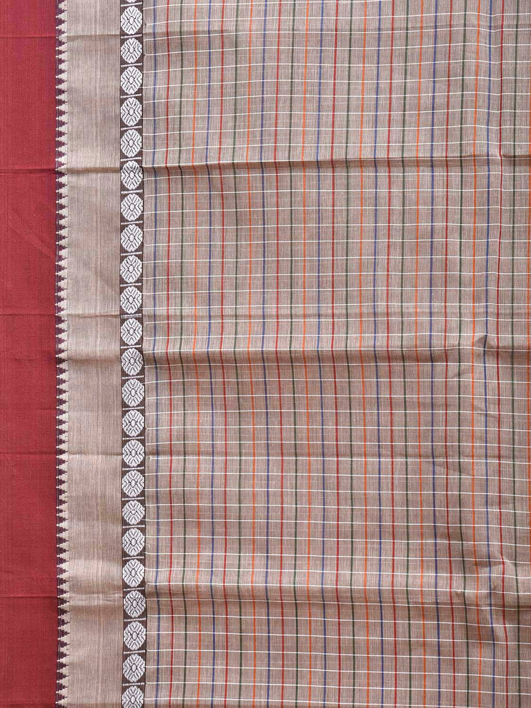 Light Grey and Maroon Narayanpet Cotton Saree with Checks Design No Blouse. This saree has no blouse.