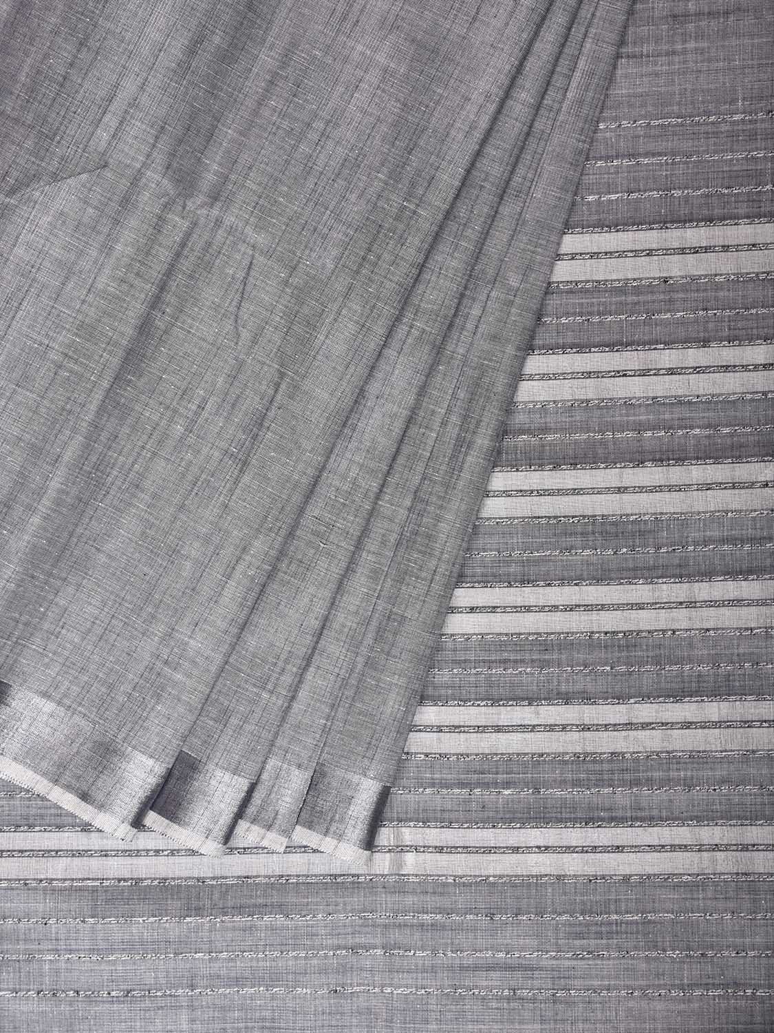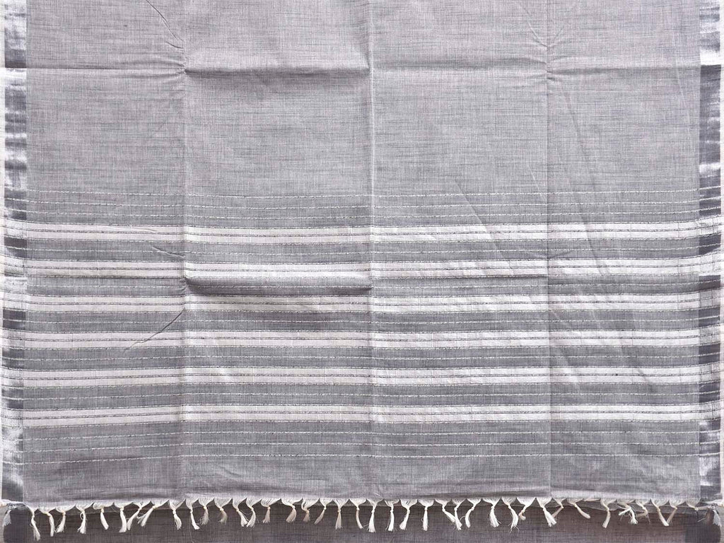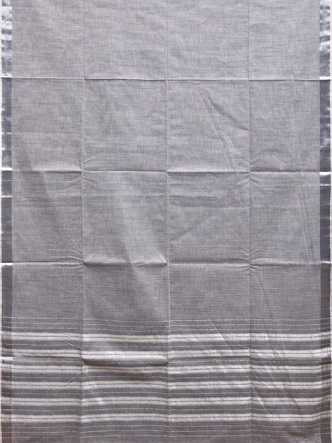 Light Grey and White Venkatagiri Plain Cotton Saree with Strips Pallu Design. Venkatagiri sarees are known for very fine cotton hand woven cotton saree. They are light weight and are traditional saree made in Andhra Pradesh. For fabric care we advice gentle handwash separately.