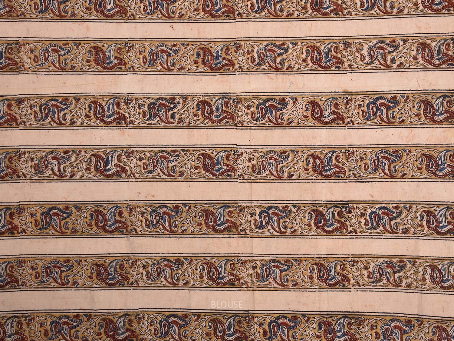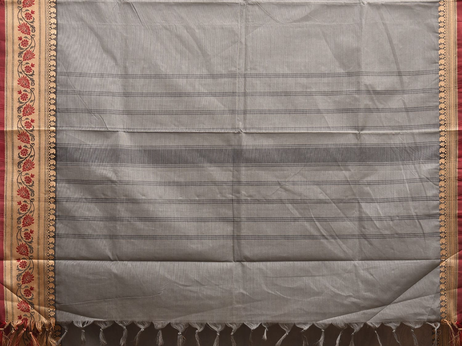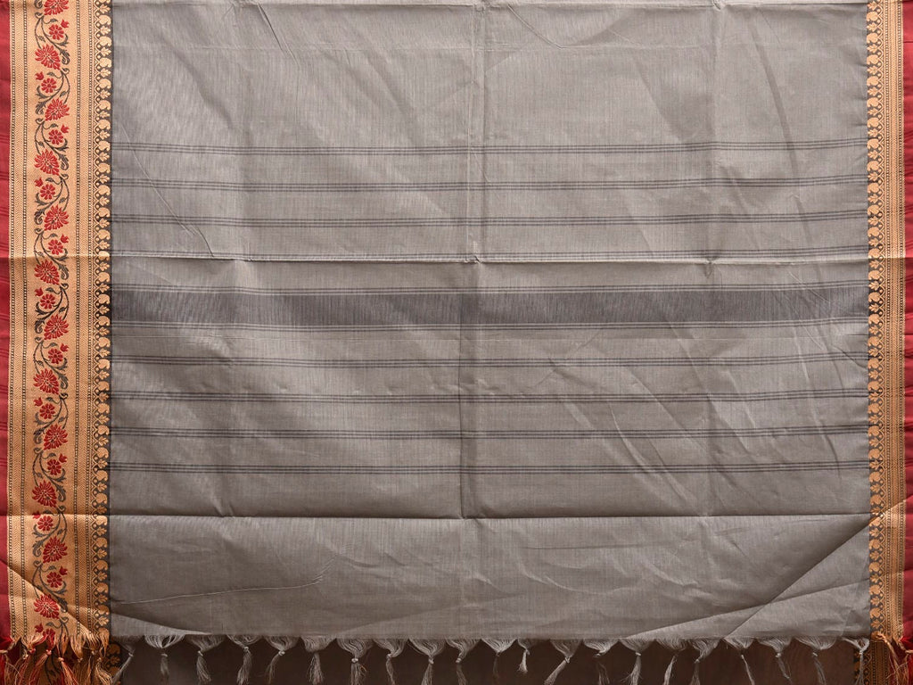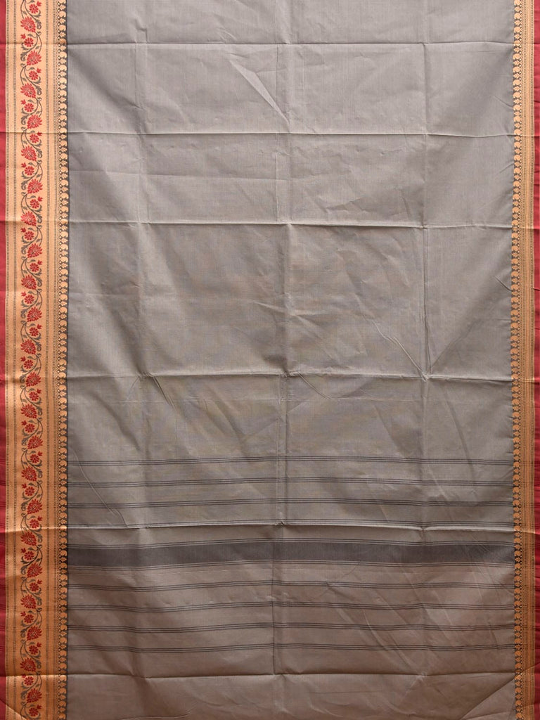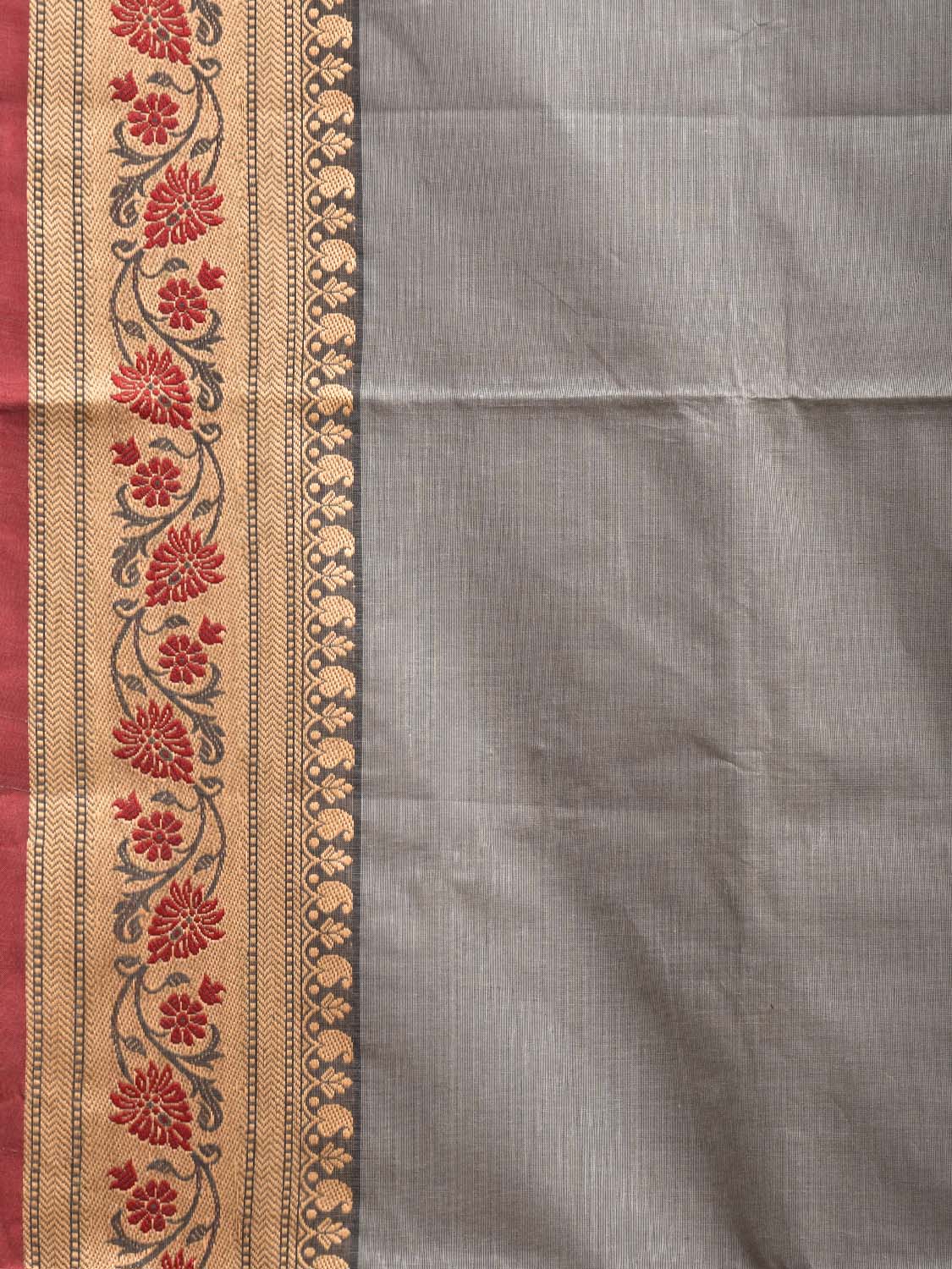 Light Grey Kanchipuram Cotton Plain Saree with Floral Border Design and Kalamkari Blouse. Traditional Simple South Indian Attire Saree for any Casual Occasions. As it’s a cotton saree we advice gentle handwash separately for fabric care.