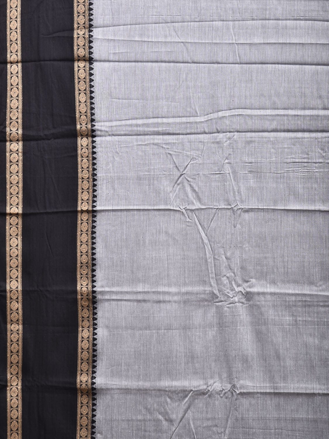 Light Grey Kanchipuram Cotton Plain Saree with Strips Pallu and Ganga-Jamuna Border Design No Blouse k0893