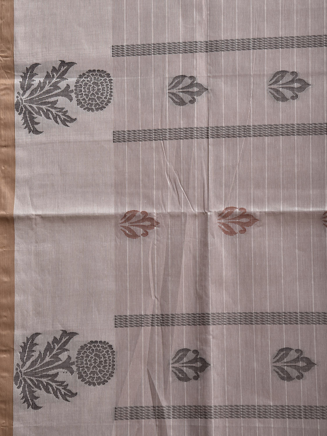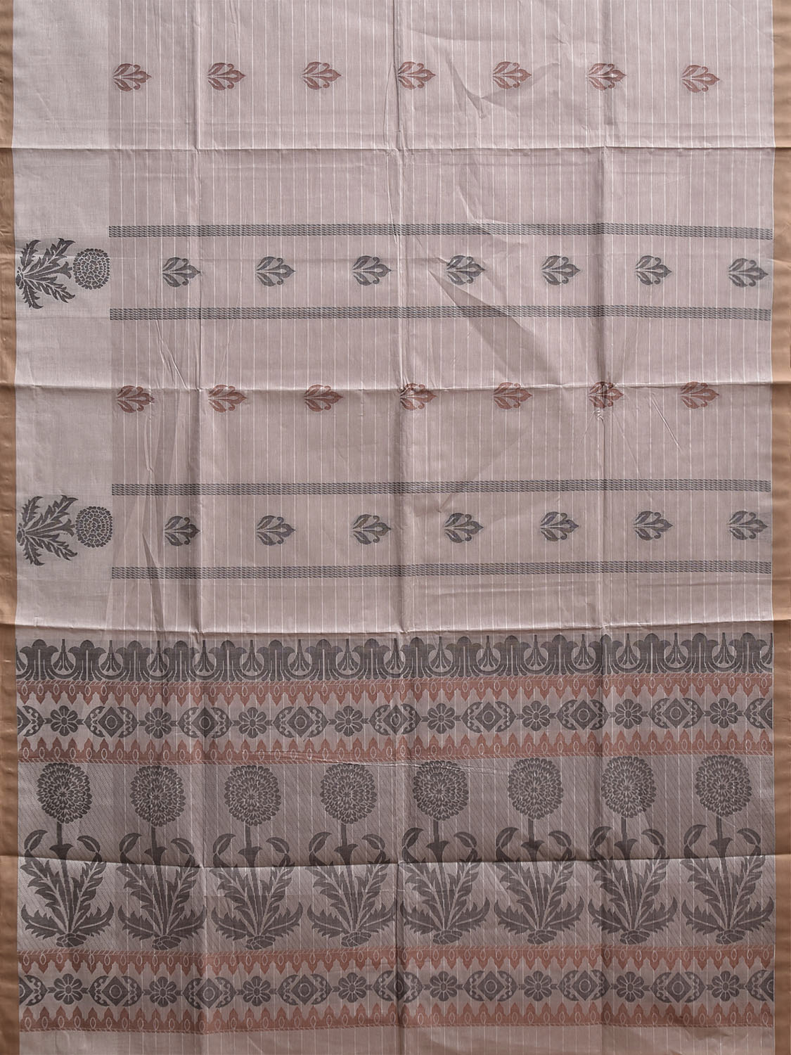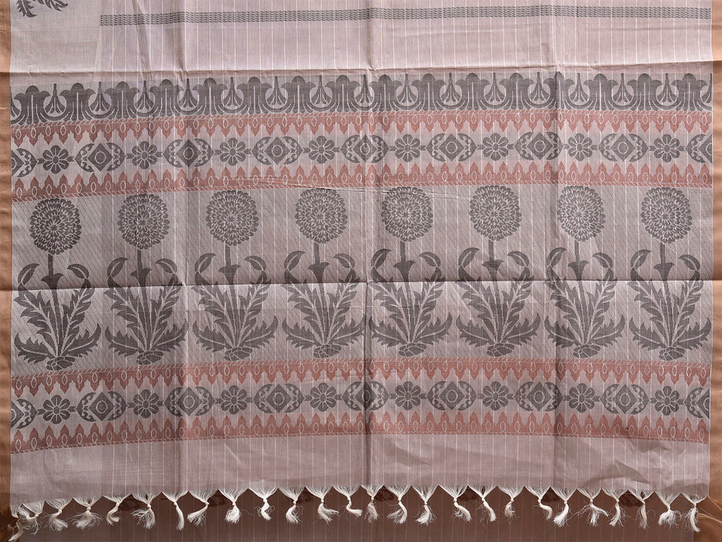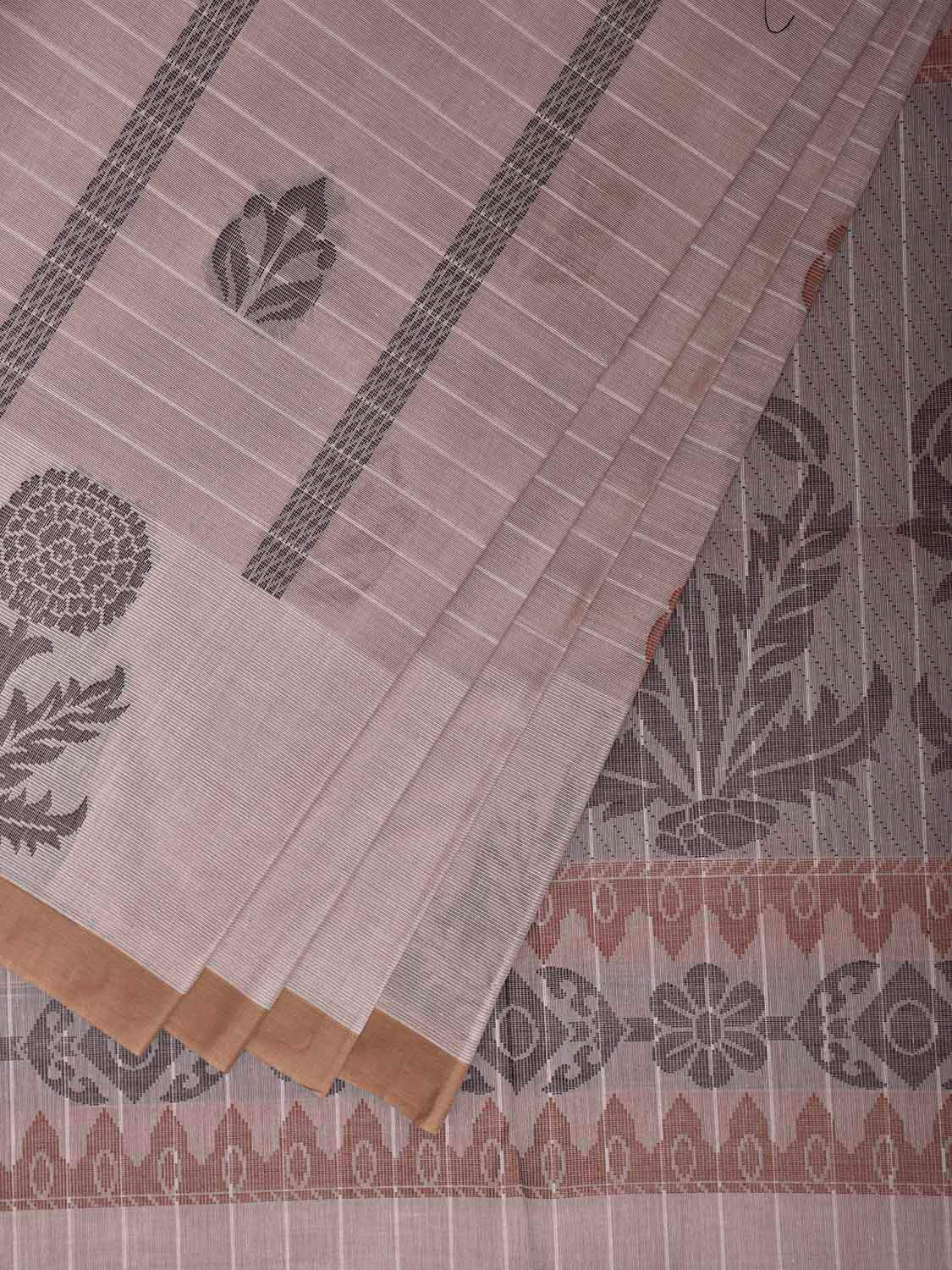 Light Khaki Venkatagiri Cotton Saree with Floral Buta and Pallu Design. Venkatagiri sarees are known for very fine cotton hand woven cotton saree. They are light weight and are traditional saree made in Andhra Pradesh. For fabric care we advice gentle handwash separately.