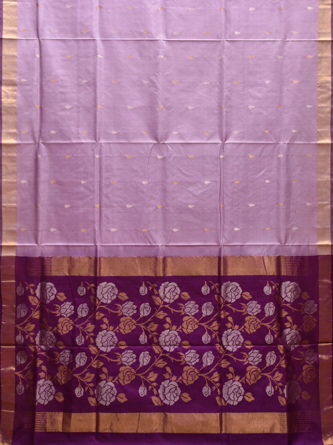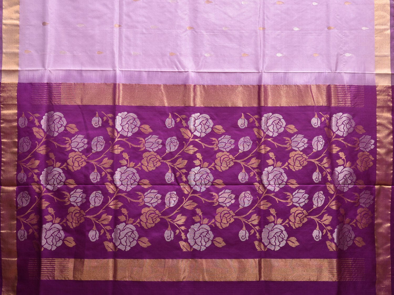 Light Lavender and Purple Uppada Silk Handloom Saree with Contrast Floral Pallu Design. Uppada sarees are known for light weight sarees with jamdani weaving technique. With so many traditional designs it is considered for the very special occasion wear. We advice dry clean for fabric care.